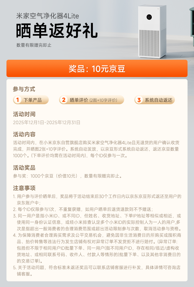 米家小米空气净化器4lite 除甲醛除菌除异味 空气伴侣 除PM2.5 AC-M17-SC
