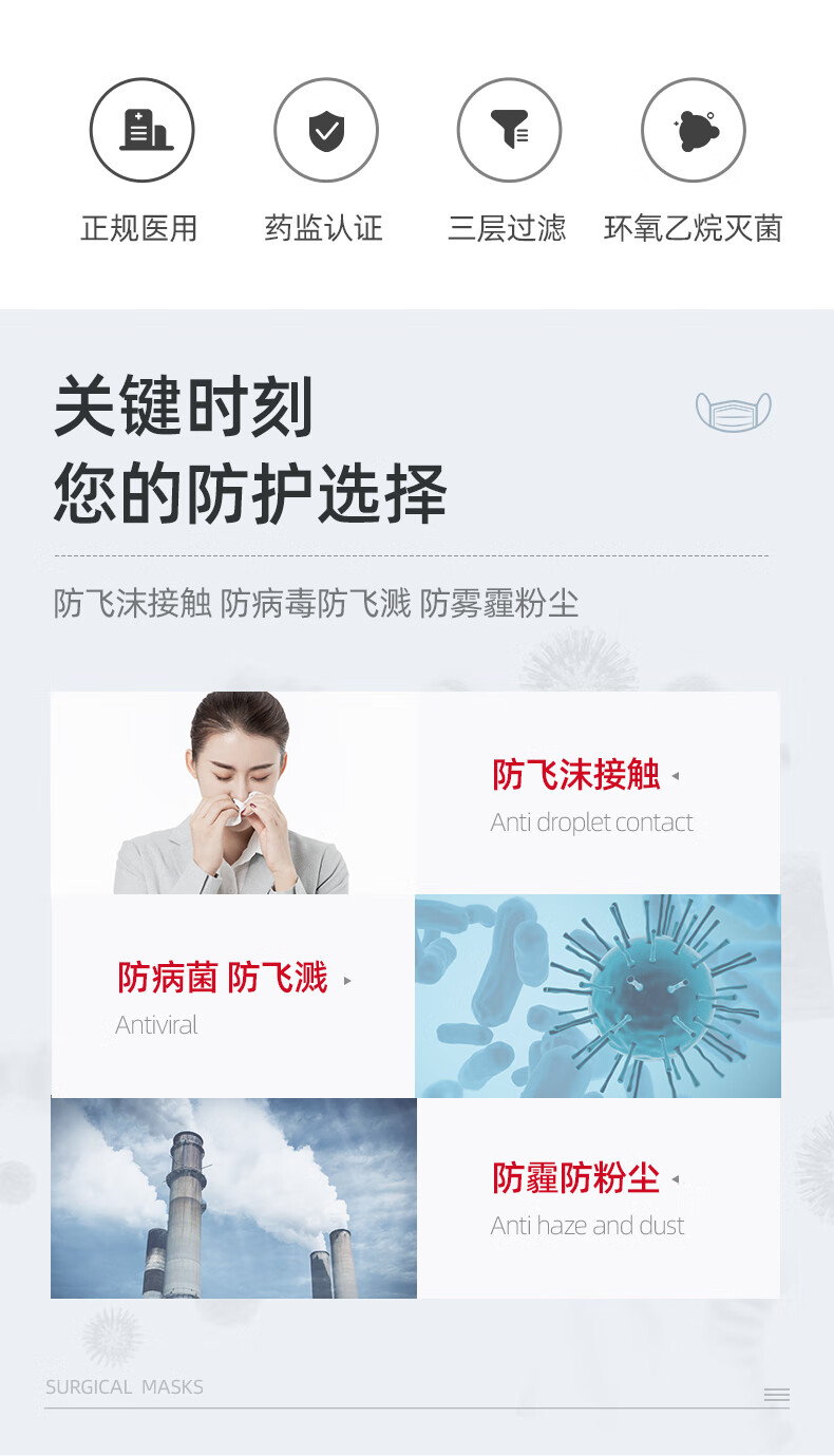 一次性医用外科口罩灭菌级挂耳式三层防护轻薄款透气防沙尘雾霾 成人外科口罩【10只】10只/袋