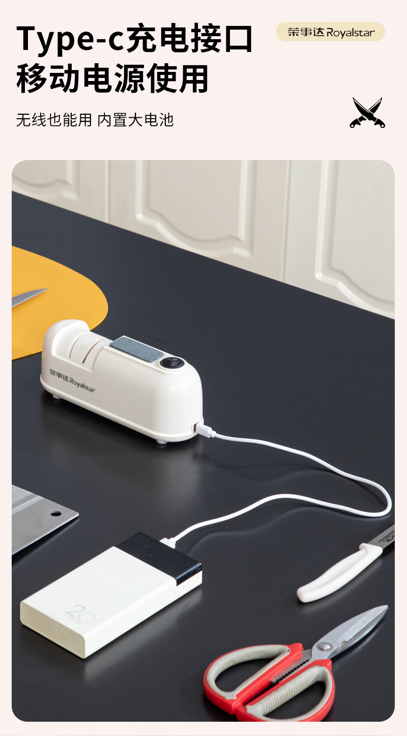 荣事达电动磨刀器家用户外便携式电动磨刀神器厨房磨刀神器磨刀机 旗舰升级大容量电池旗舰升级大容量电池