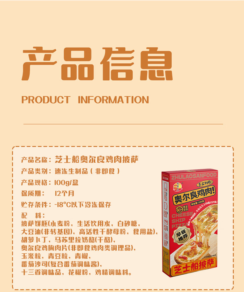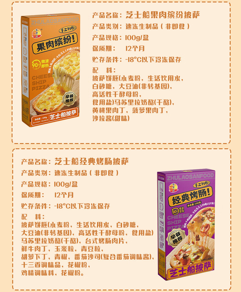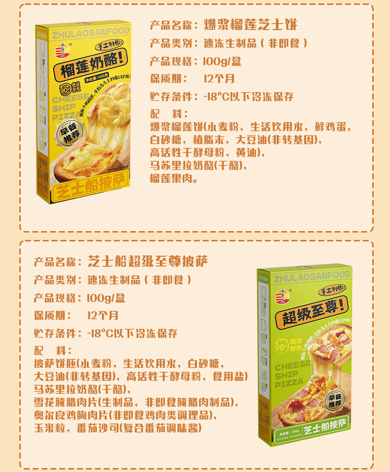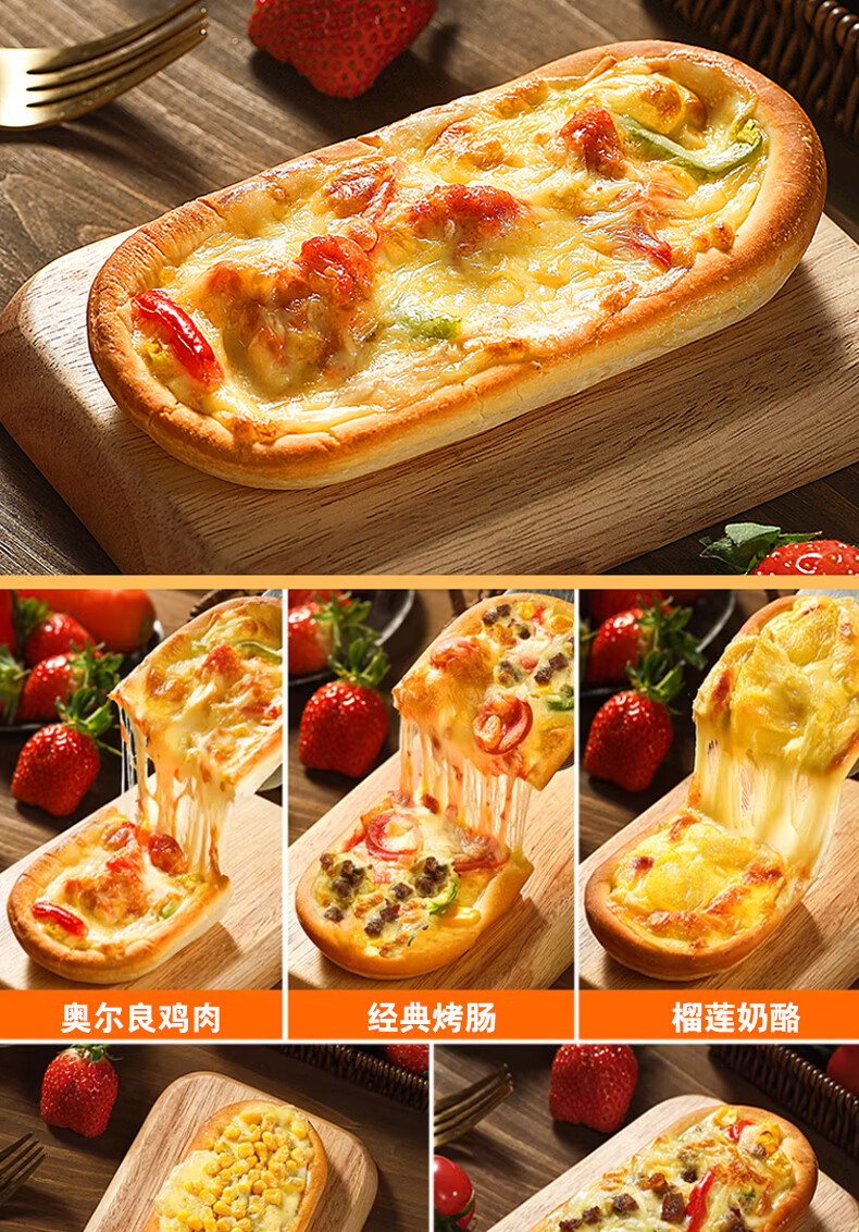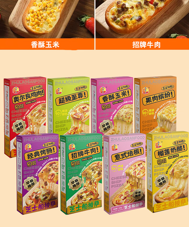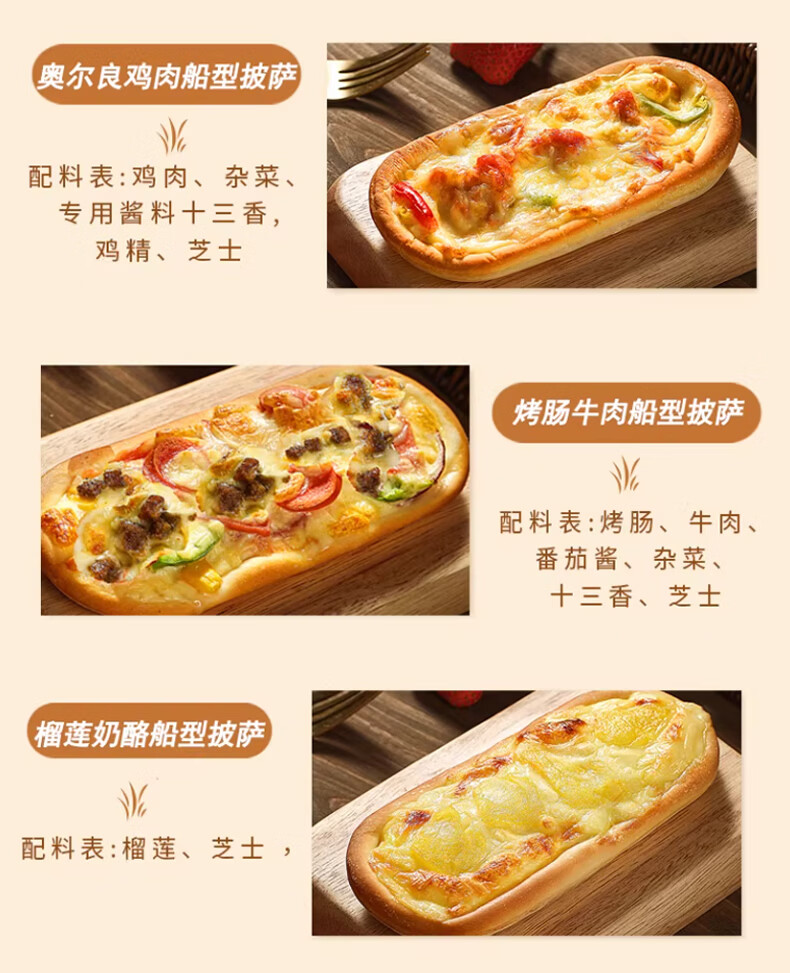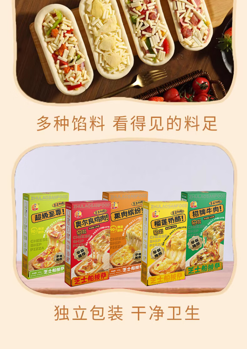 朱老三儿童早餐榴莲奶酪芝士船披萨加热即食半成品速食培根芝士披萨船 意式风味【意式培根】芝士船披萨 x3盒