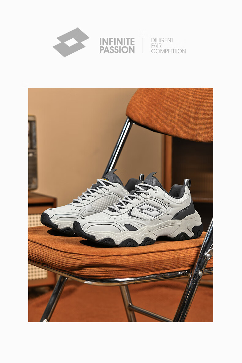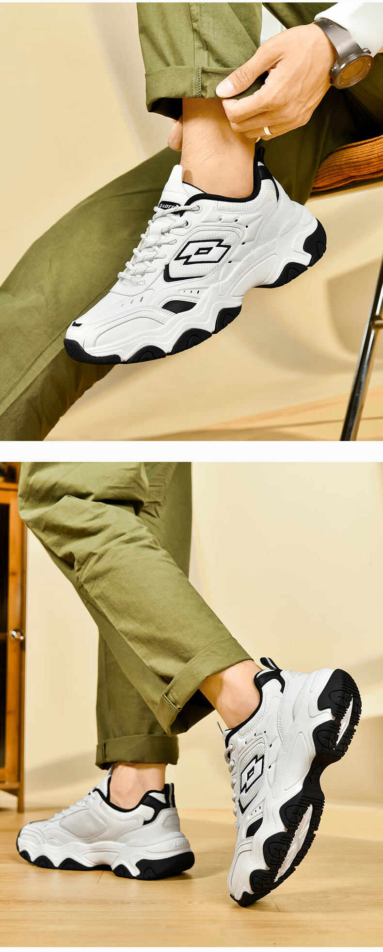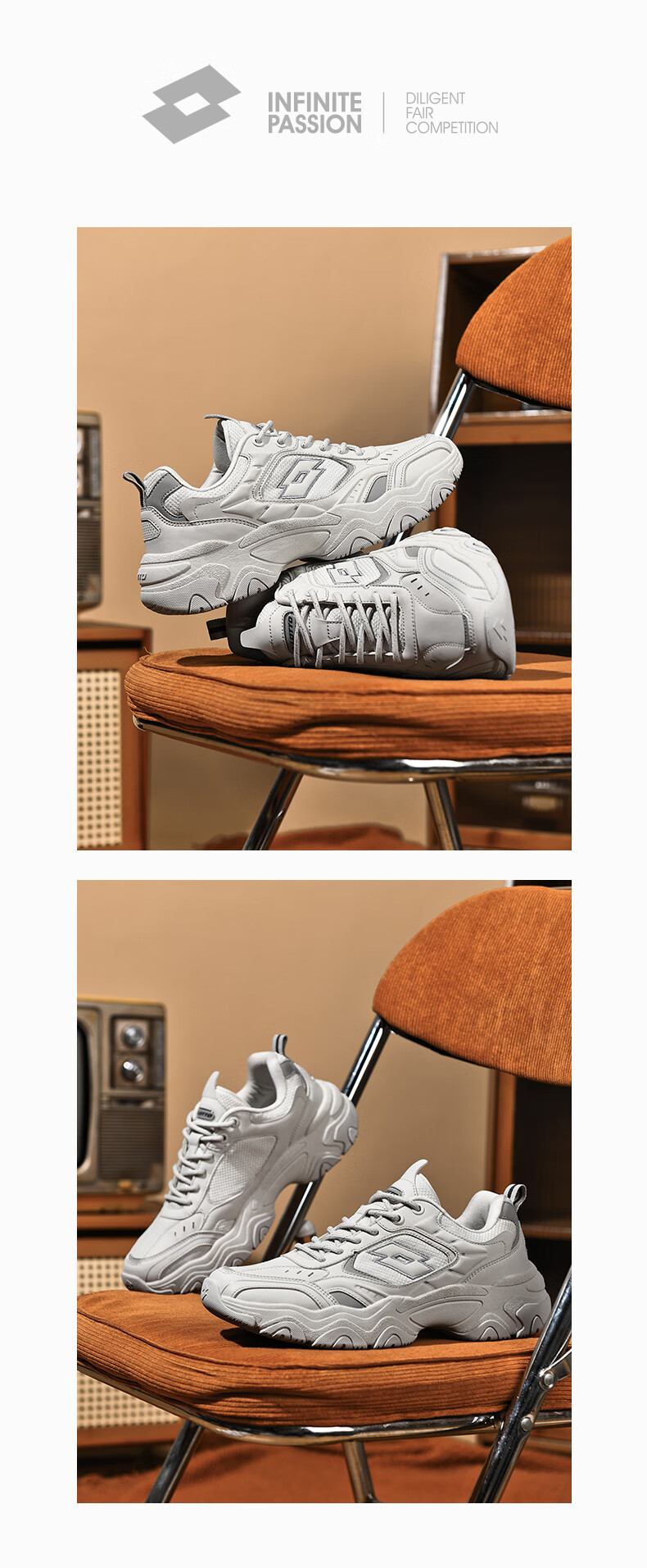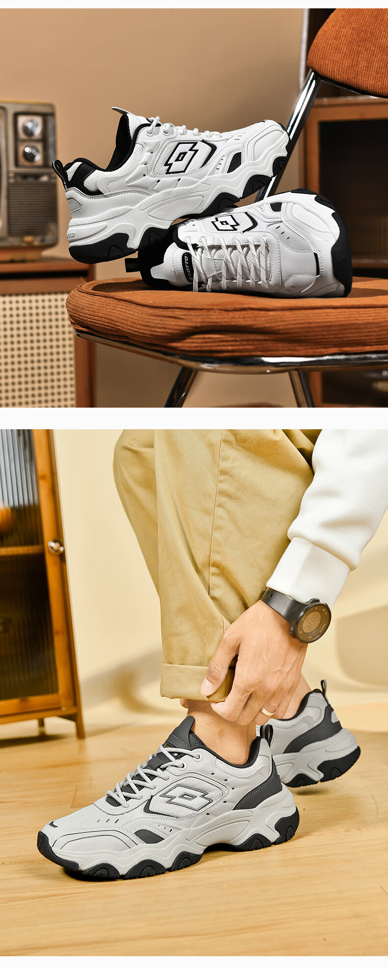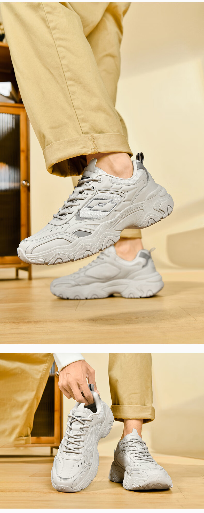乐途(LOTTO)老爹鞋休闲鞋复古潮流男鞋春季舒适缓震百搭运动鞋革面鞋子旅游鞋 深米色(男款) 42