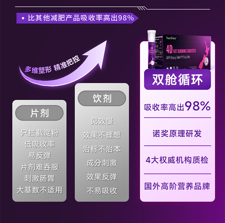 NutriFairy纽菲澜新西兰4D双舱饮减肥瘦肚子燃脂肪强效快速瘦身塑身大肚子 2盒【两周初见效】