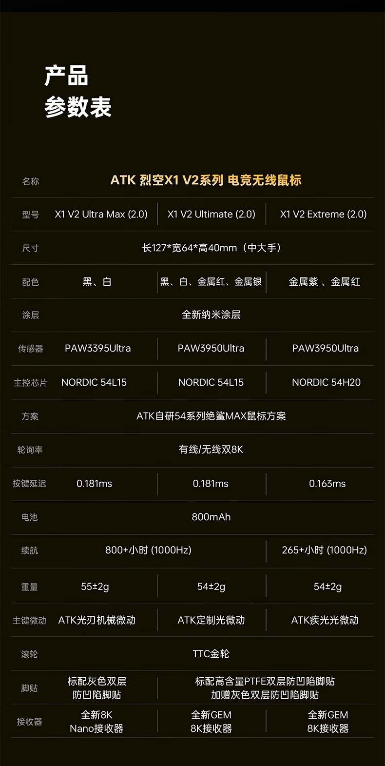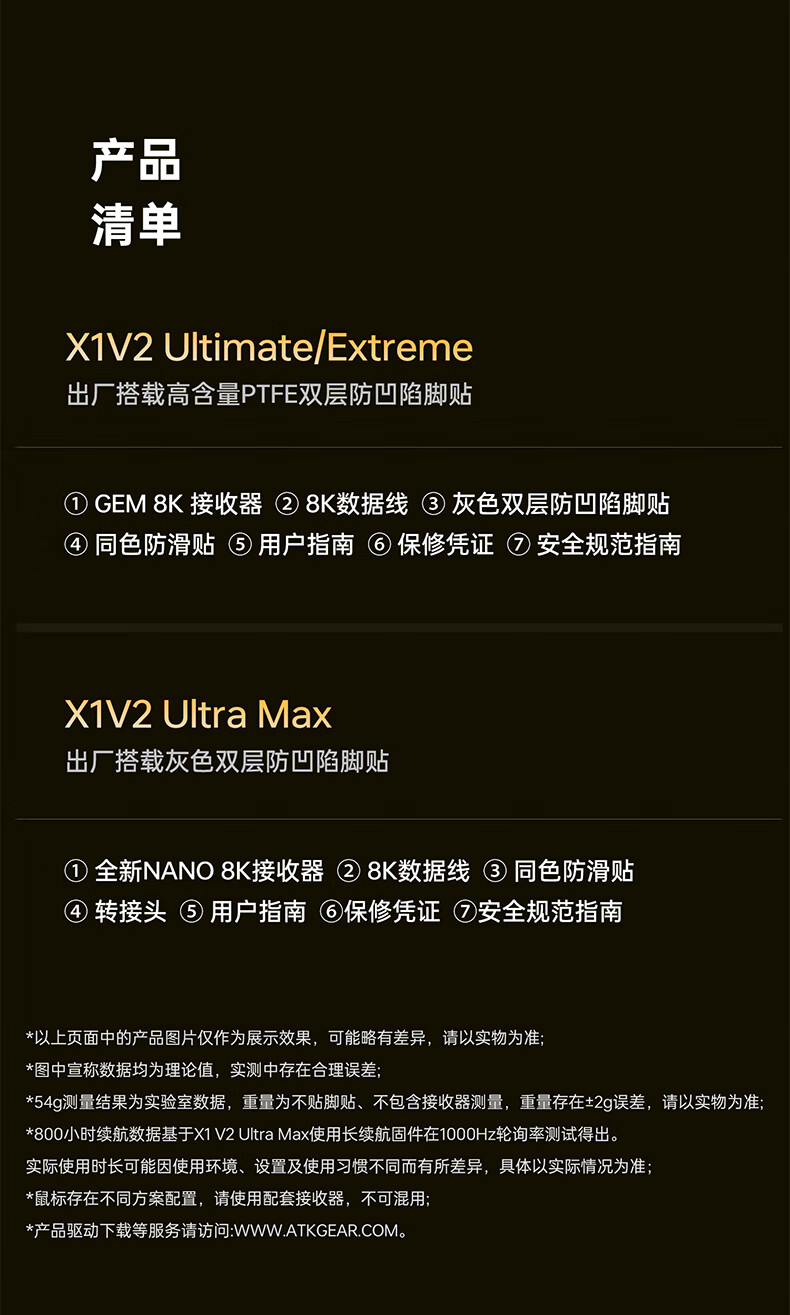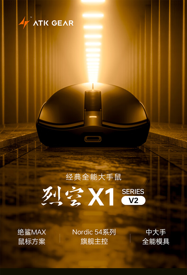 ATK烈空X1V2无线鼠标 三模电竞鼠标轻量化人体工学电竞办公游戏鼠标 X1V2 ULTRAMAX 2.0黑色