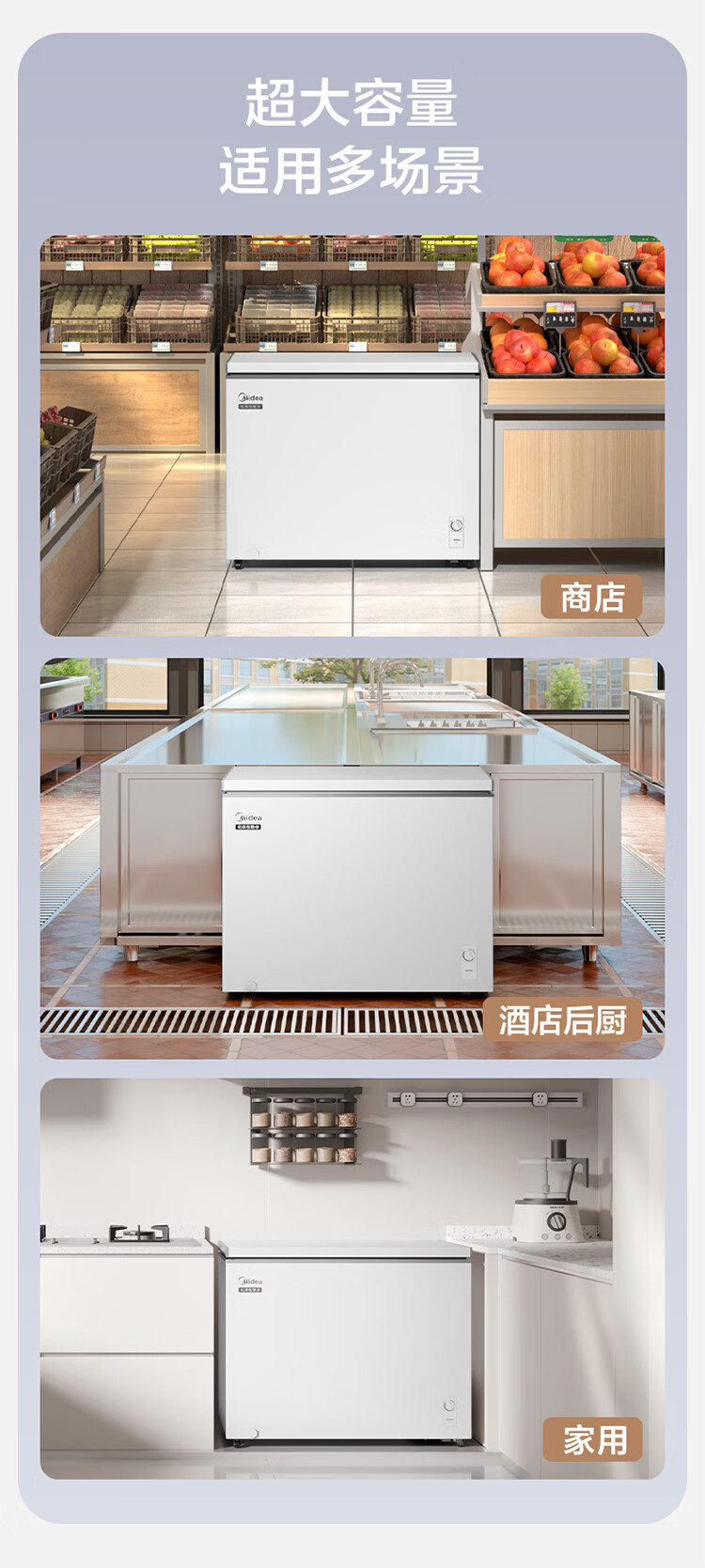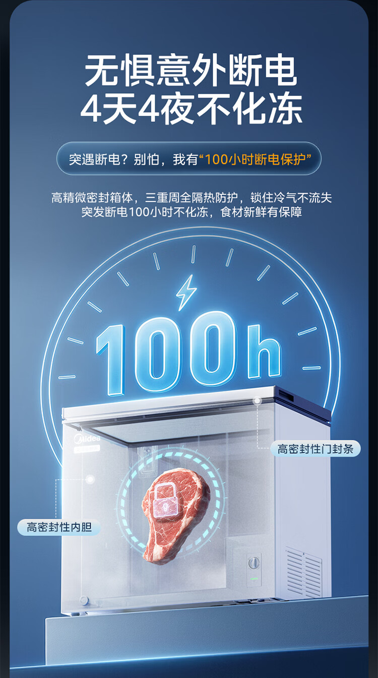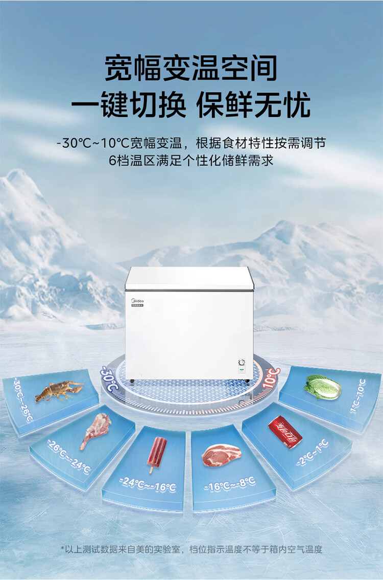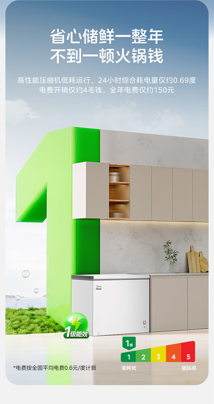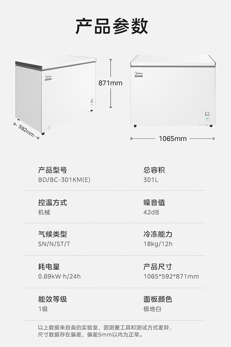 美的(Midea)301L单温家用商用卧式大容量冰柜低霜PCM内胆冷藏冷冻柜两用一级能效冰箱冷柜 PCM内胆|减霜80%|超低能耗|白 301L