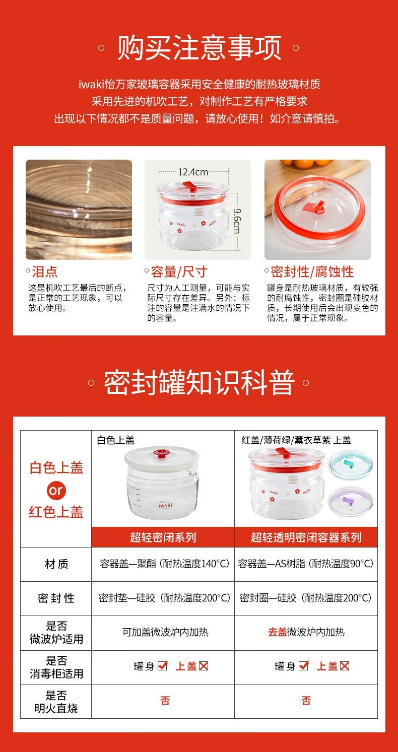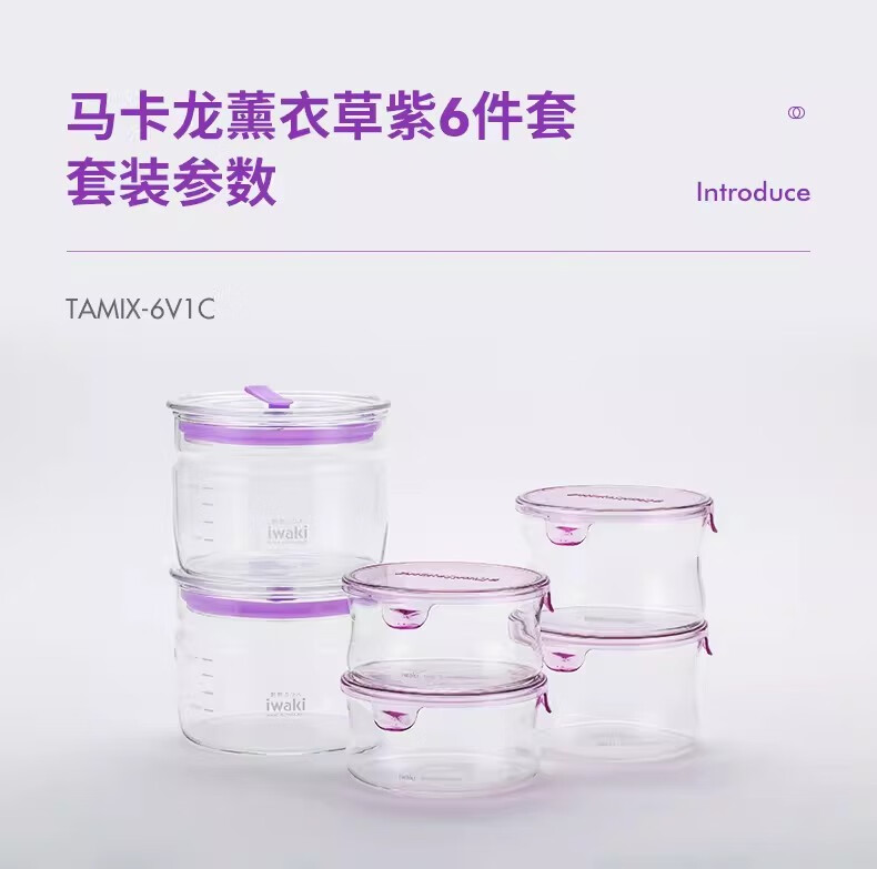 怡万家(iwaki)饭盒可微波炉加热保鲜盒密封罐冰箱收纳盒玻璃饭盒学生上班族餐盒 【小蛮腰带密封罐】6件套 2.84L