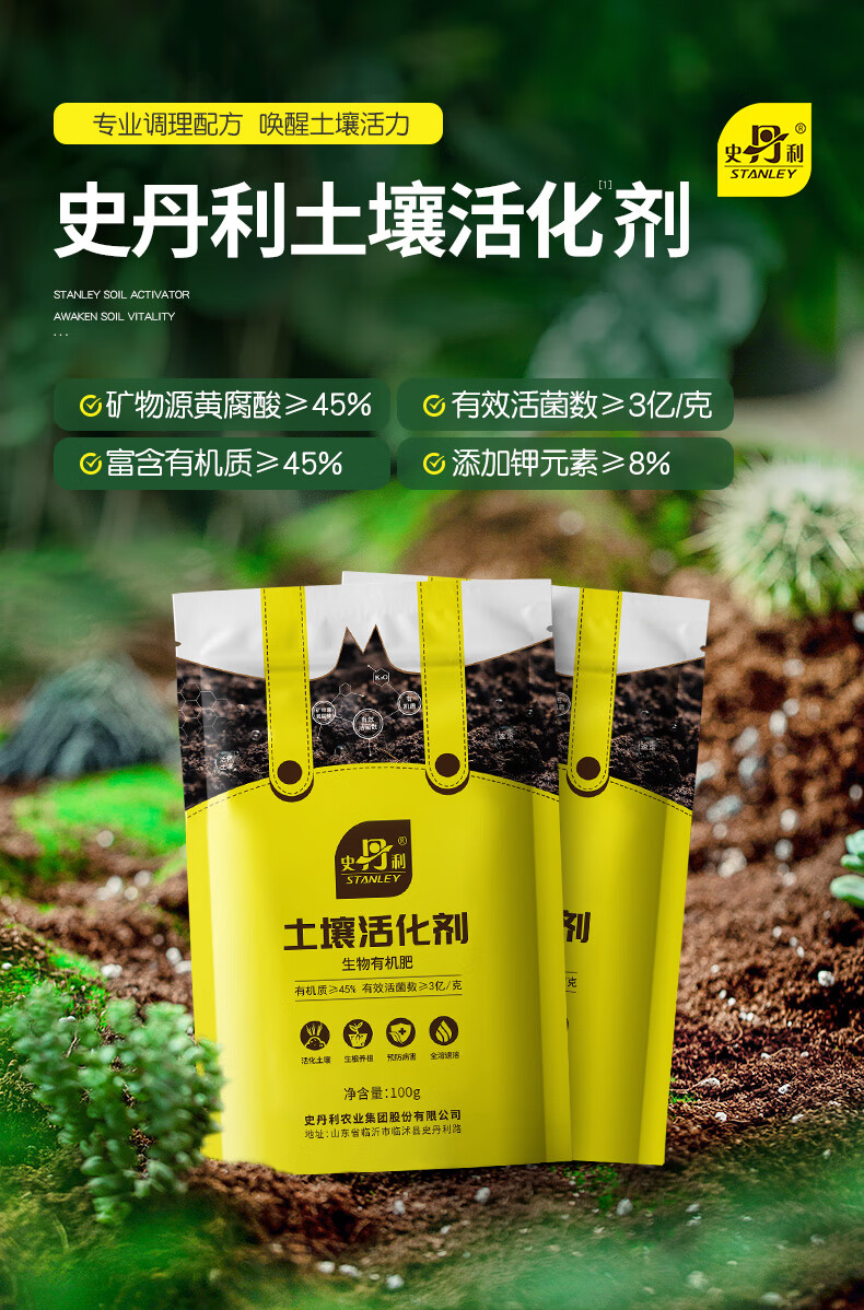 史丹利土壤活化剂宝矿源黄腐酸钾微生物菌剂黑水肥料松土剂改良剂100g