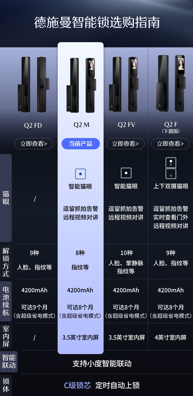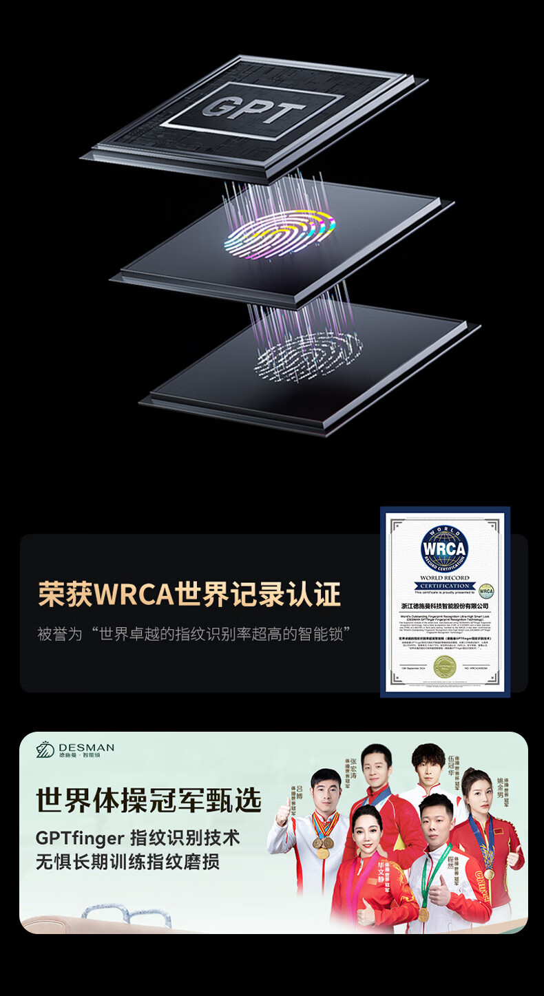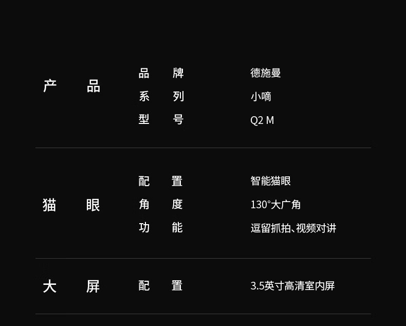 德施曼(DESMAN)智能门锁可视猫眼大屏全自动GPT指纹识别小嘀 Q2M