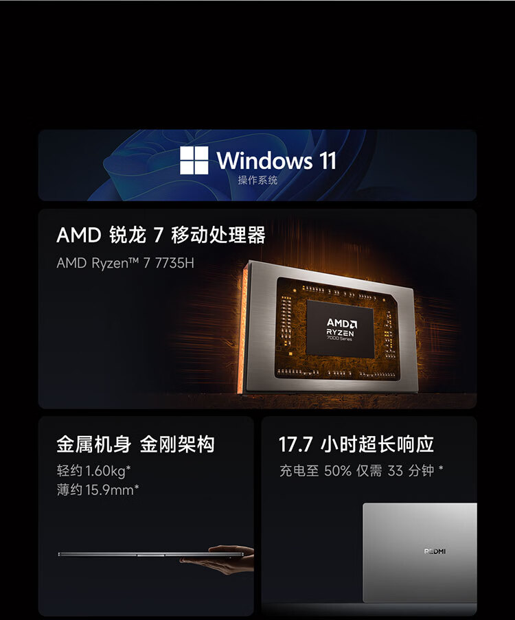 小米【直播间领300券】笔记本电脑 红米REDMI Book 16 锐龙版 2025 R7-7735H高性能轻薄本 16+512G