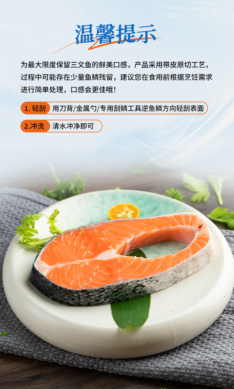 美加佳智利高蛋白三文鱼排(大西洋鲑)净重420g 2-3块 筒切单块真空装