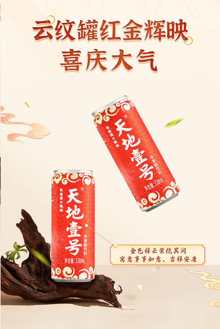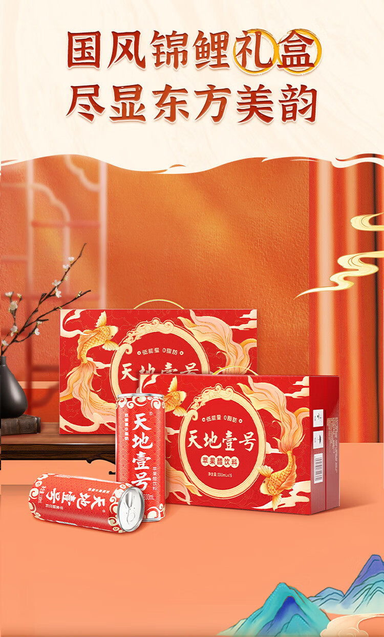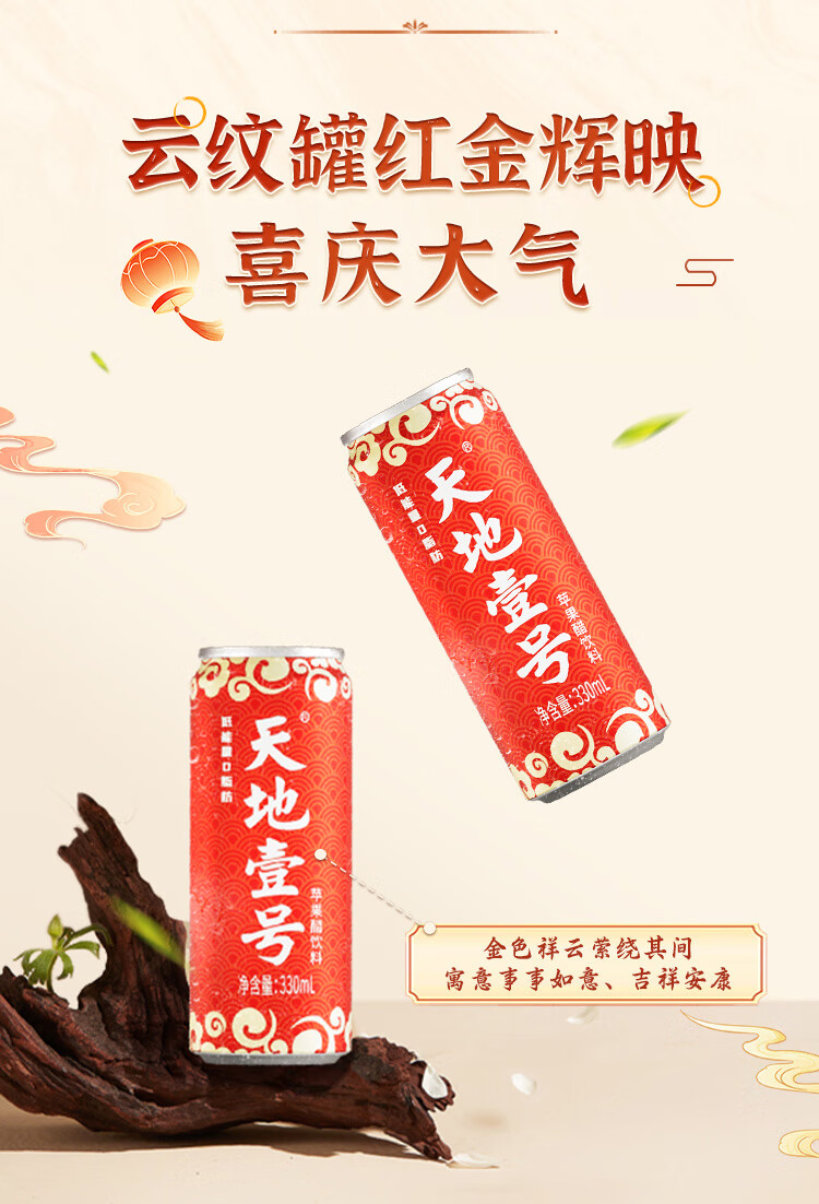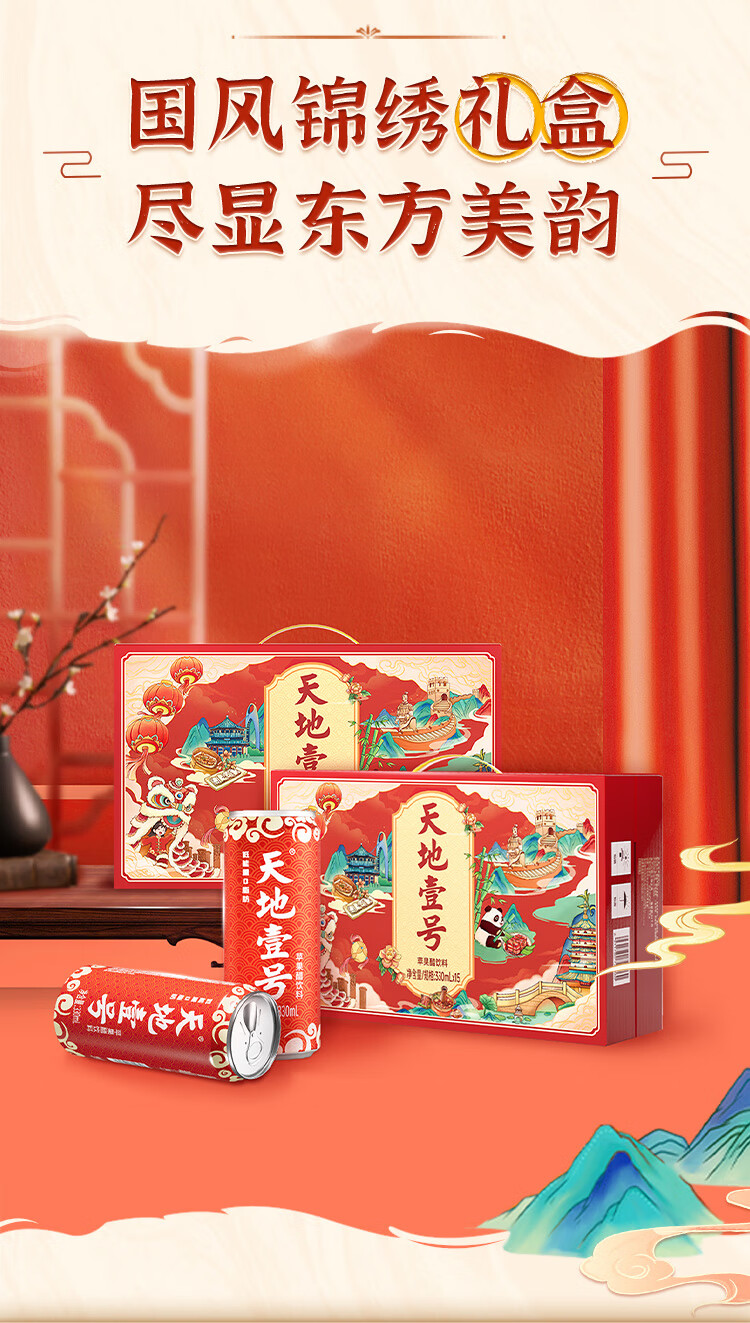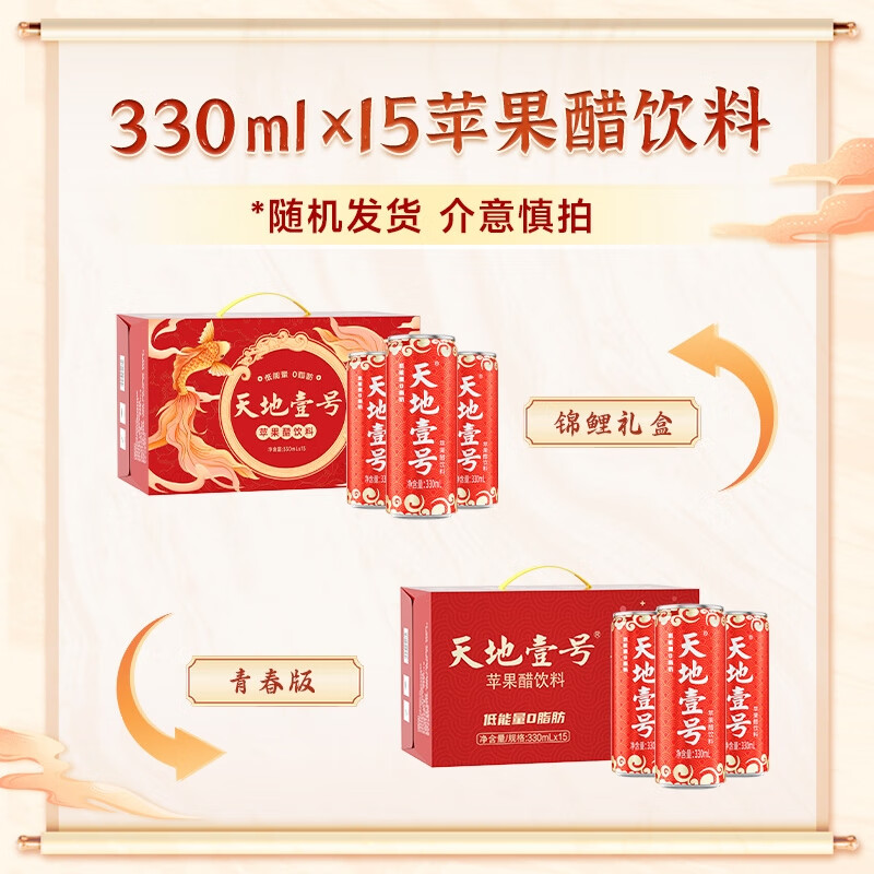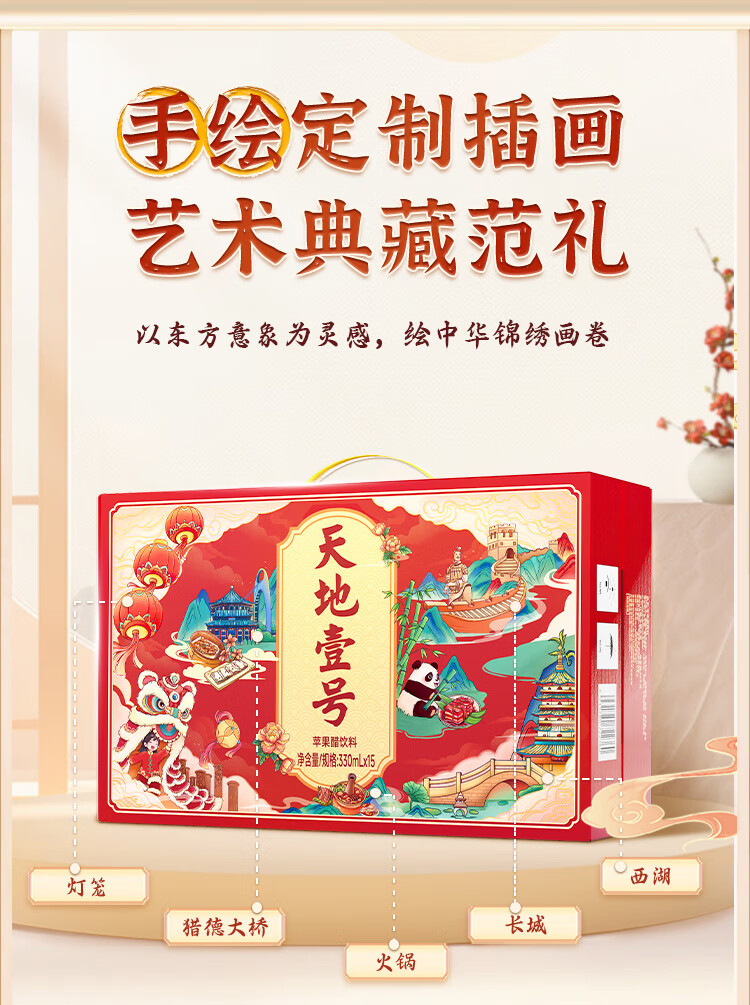天地壹号苹果醋饮料解腻解辣喜庆礼盒过节送礼新年礼盒15罐整箱B 插画版330ml*15罐*1箱