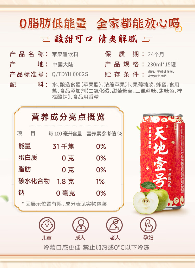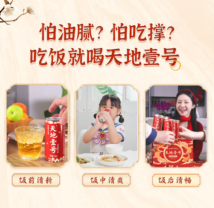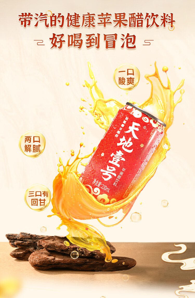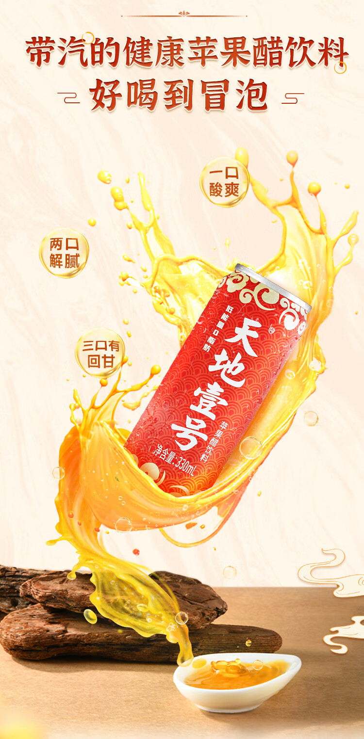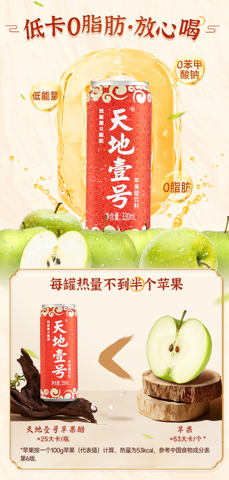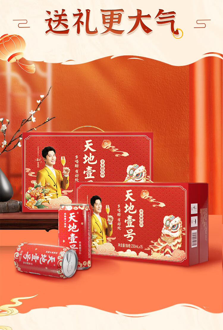 天地壹号苹果醋饮料解腻解辣喜庆礼盒过节送礼新年礼盒15罐整箱B 插画版330ml*15罐*1箱