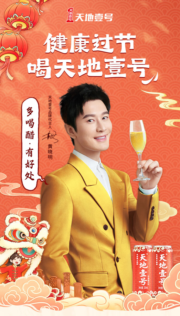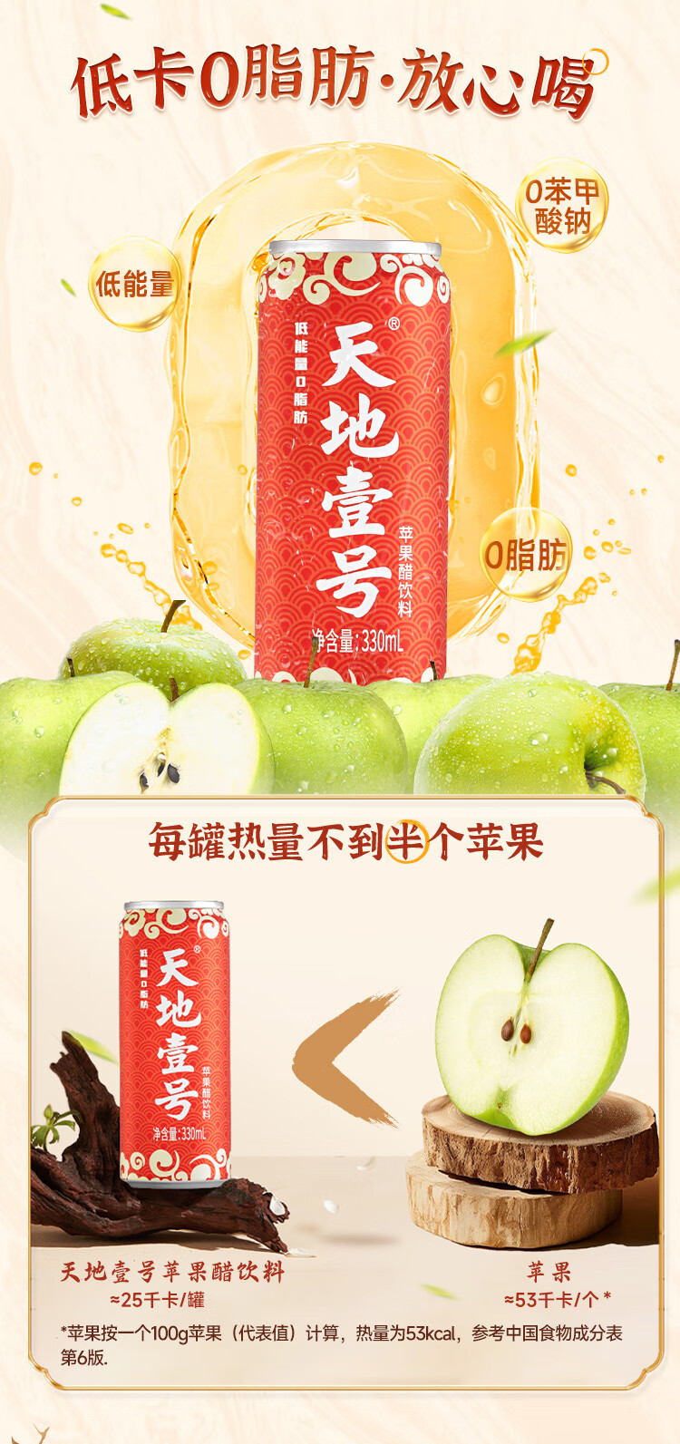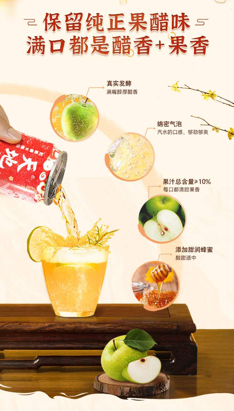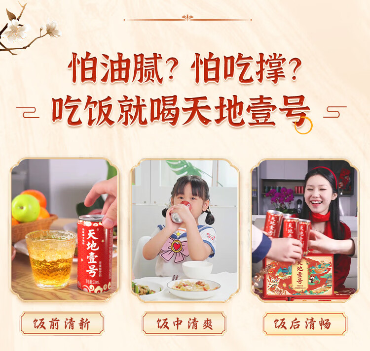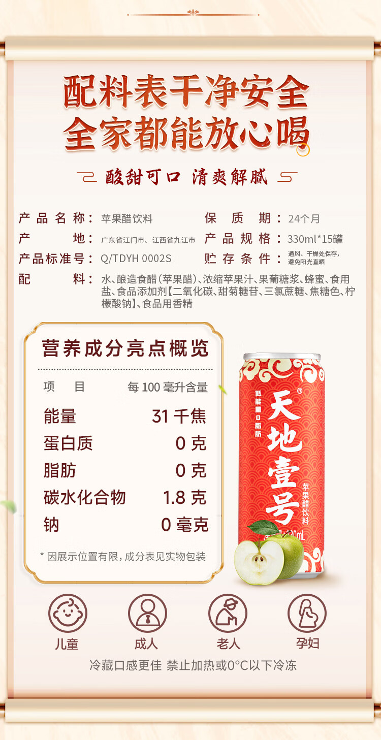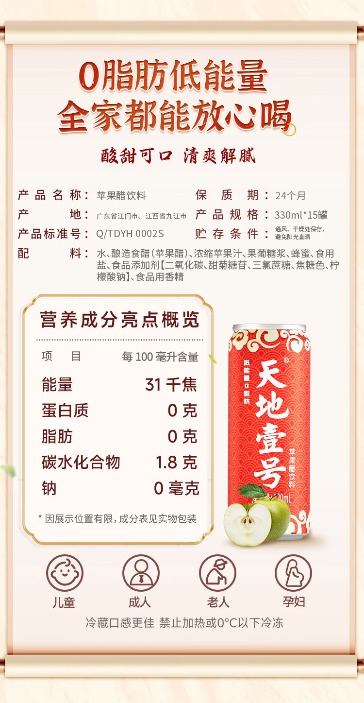 天地壹号苹果醋饮料解腻解辣喜庆礼盒过节送礼新年礼盒15罐整箱B 插画版330ml*15罐*1箱