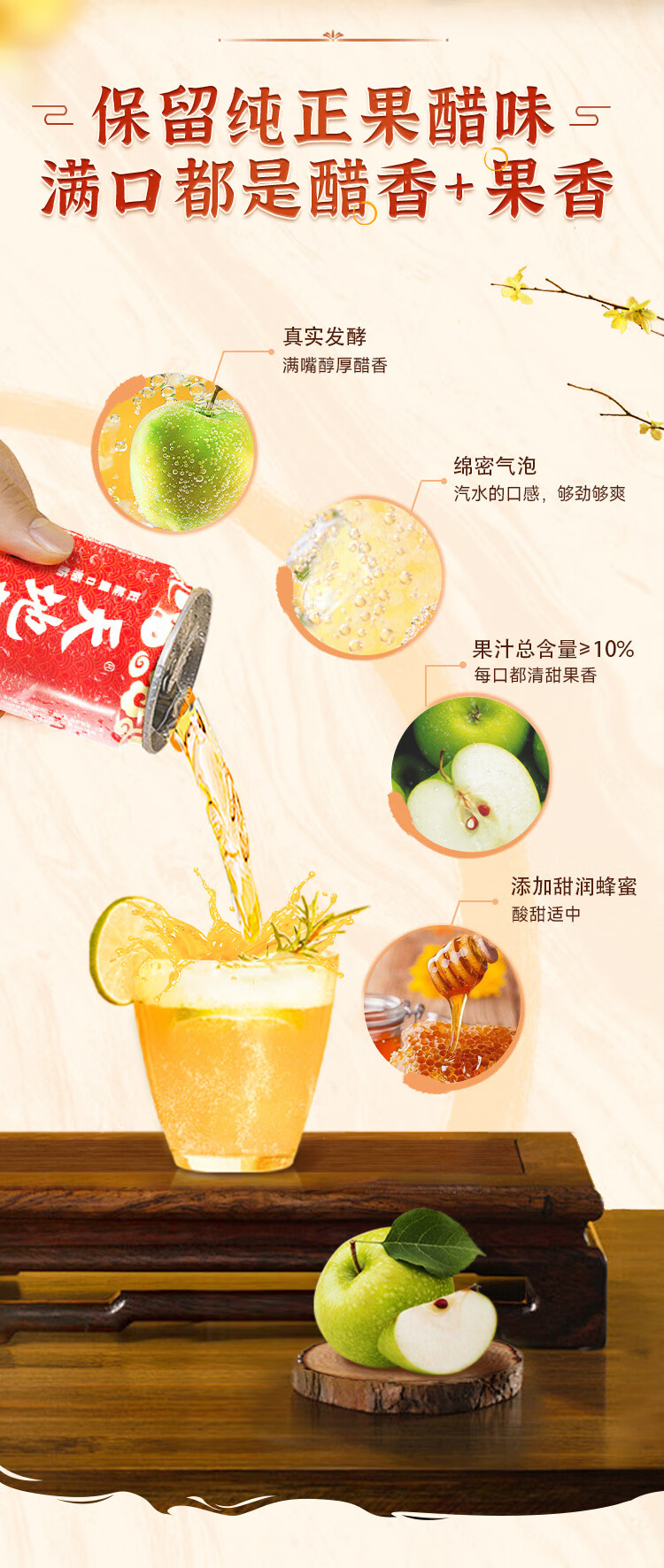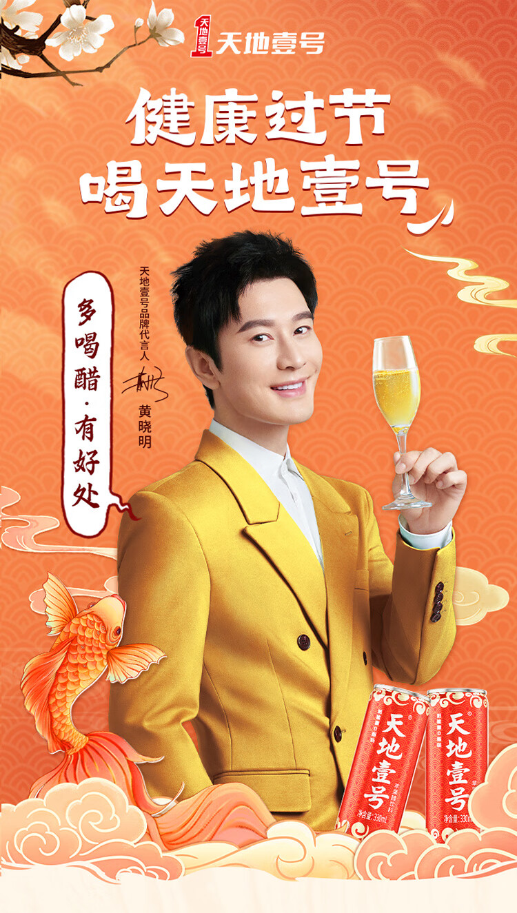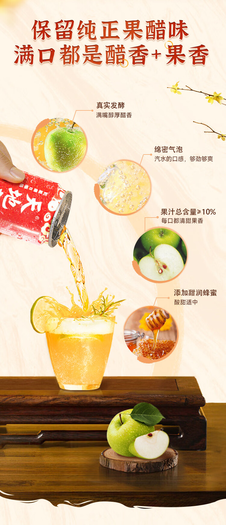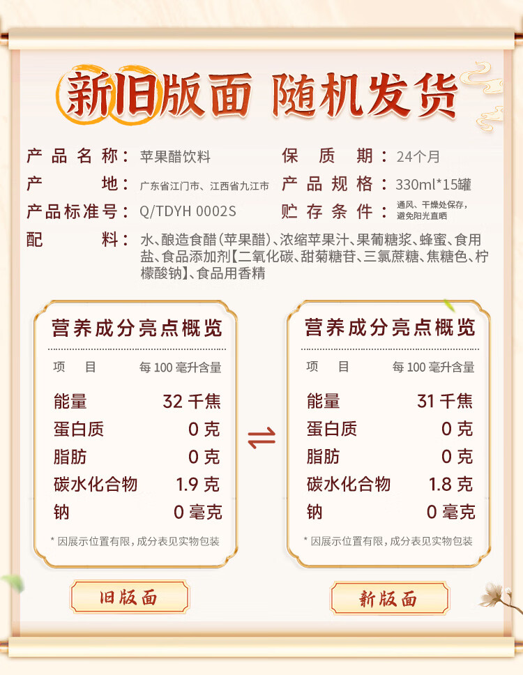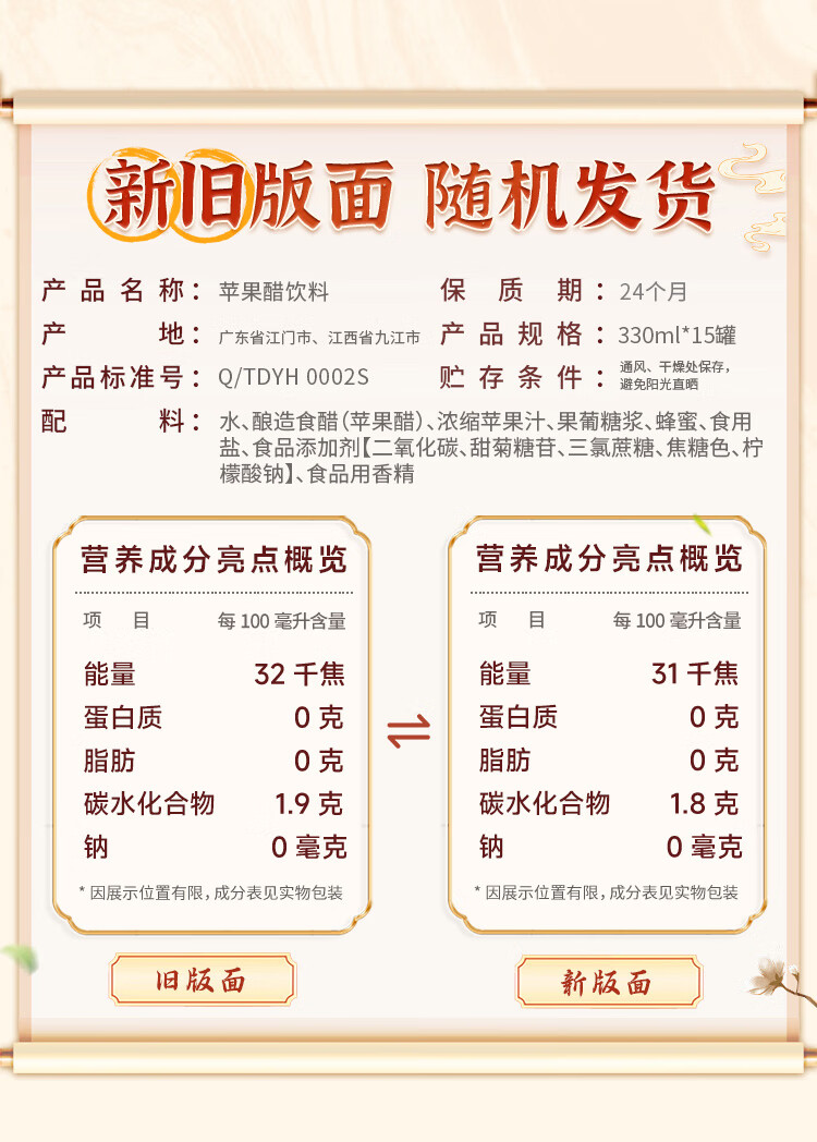 天地壹号苹果醋饮料解腻解辣喜庆礼盒过节送礼新年礼盒15罐整箱B 插画版330ml*15罐*1箱