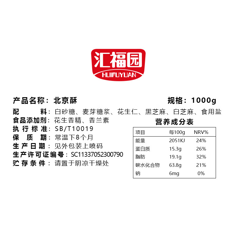 汇福园 老北京酥糖 1000g 花生酥心糖巧特产散装喜糖结婚新休闲零食