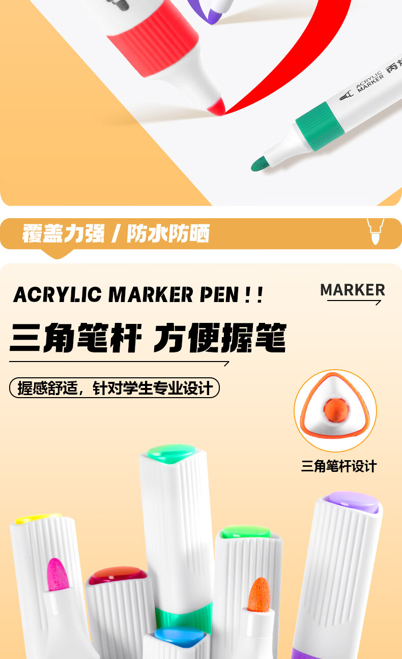 得力(deli)丙烯马克笔不透色可叠色儿童小学生美术专用初中生防水无毒可水洗幼儿园专用水彩笔画画笔 【加量100%正握姿三角杆】24色