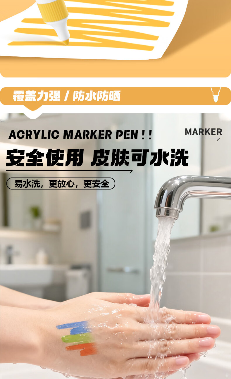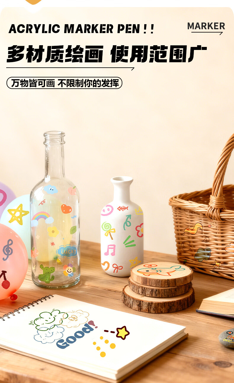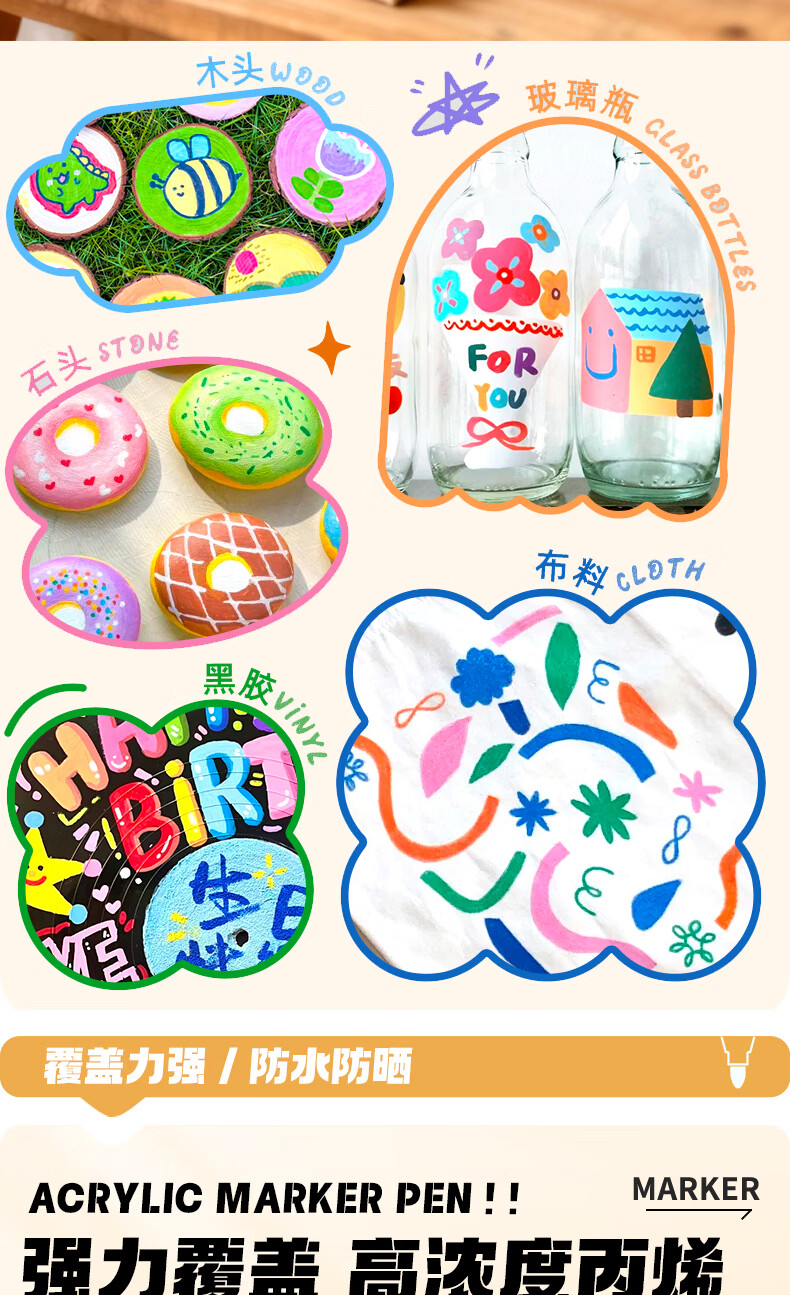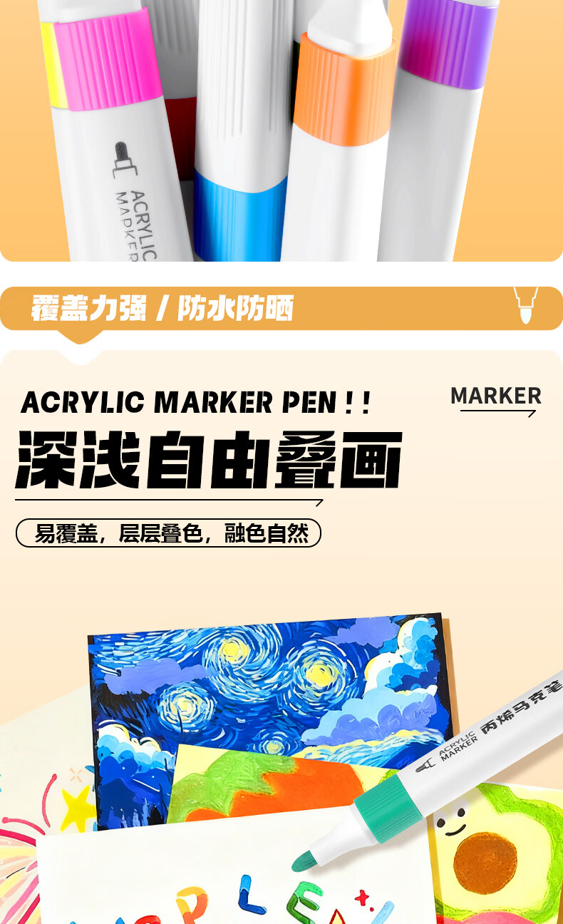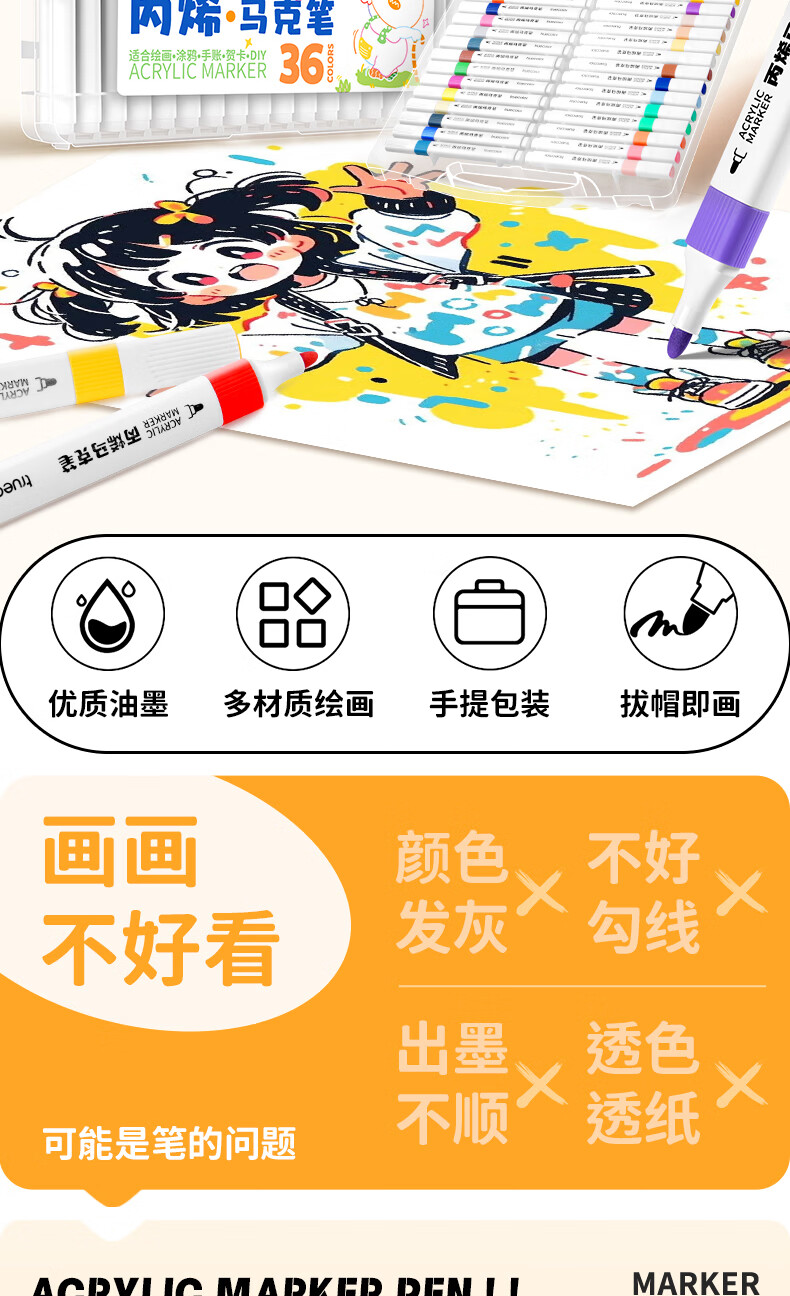 得力(deli)丙烯马克笔小学生专用不透色可叠色美术丙烯笔儿童幼儿园无毒可水洗画笔软绘幼儿园水彩笔 36色【防水手提袋】可写姓名/畅享创作
