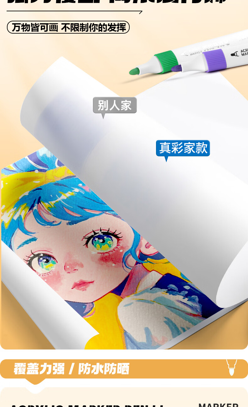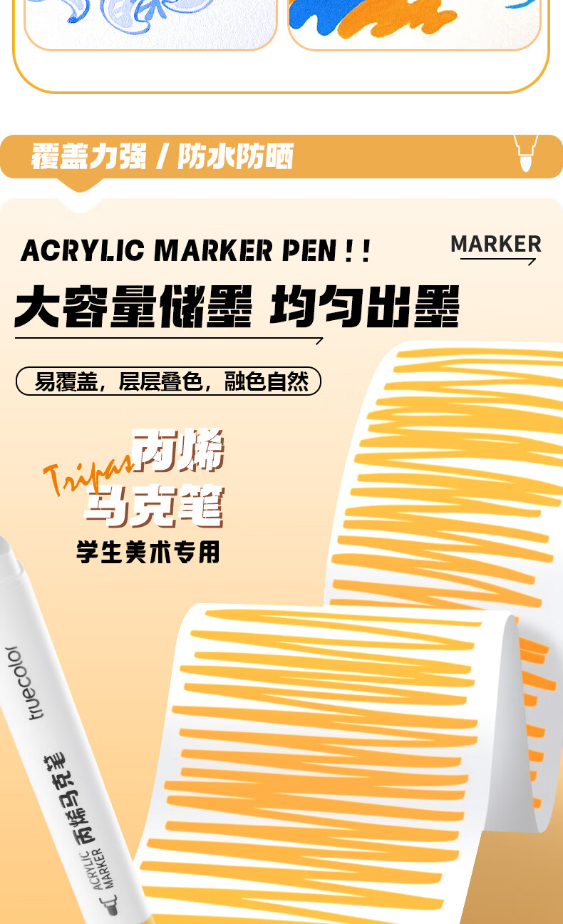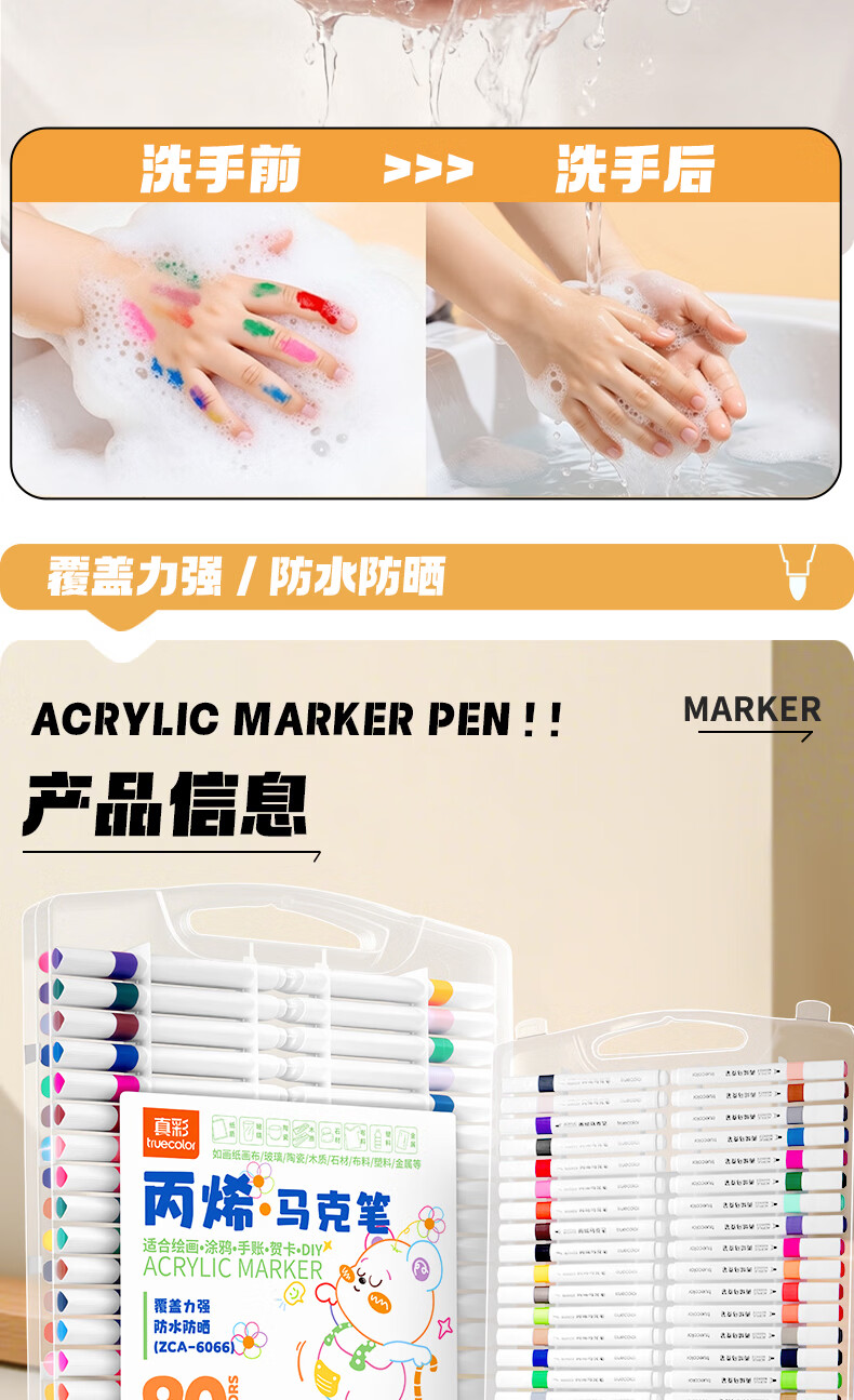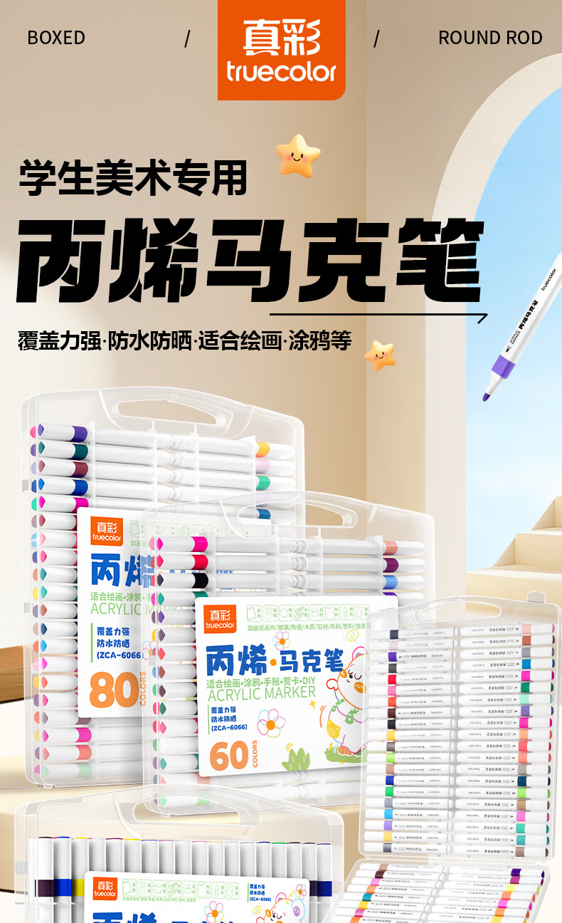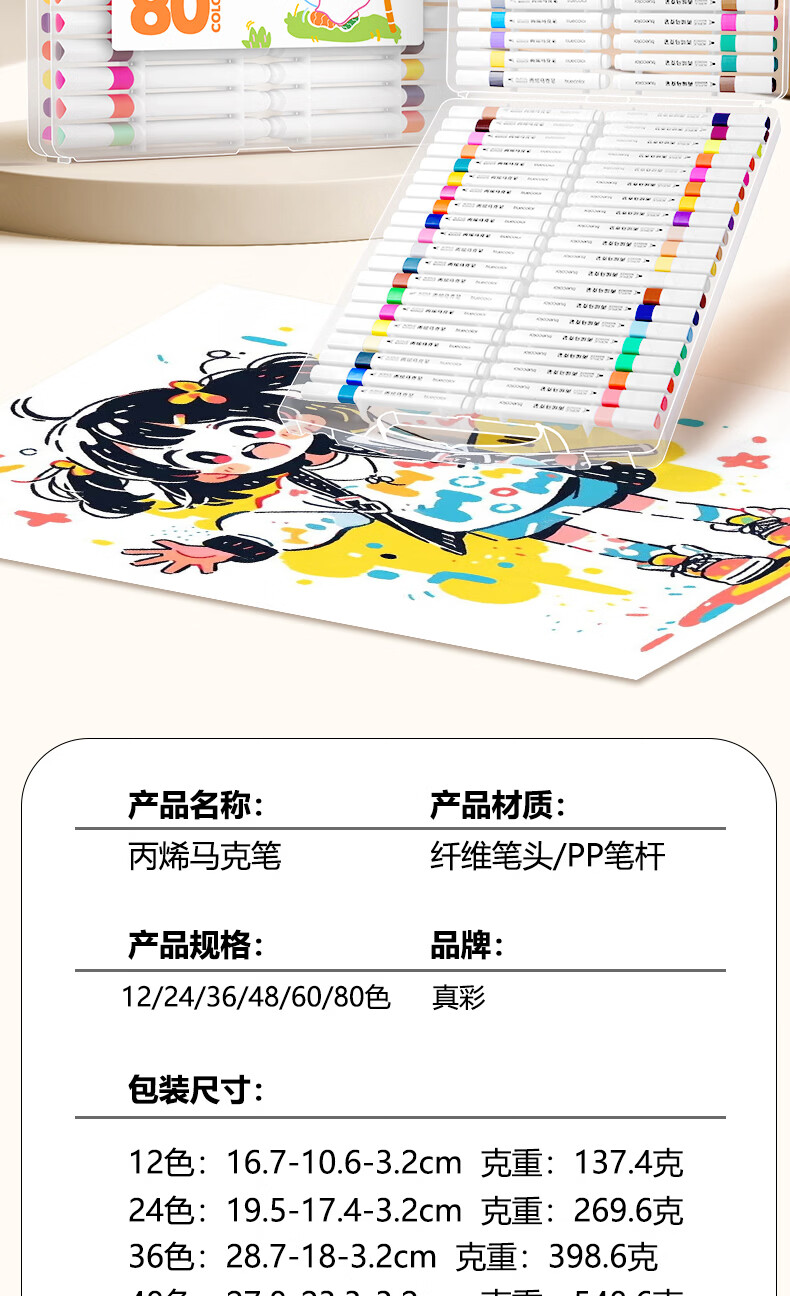 真彩(TRUECOLOR)真彩80色三角杆丙烯马克笔学生用diy绘画笔幼儿小学画画笔儿童涂鸦彩色笔可叠色不透纸安全无异味 【三角杆】丙烯马克笔-80色