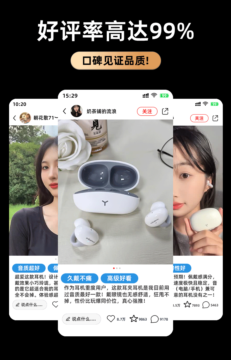 鑫羽音【甄选直发】蓝牙耳机夹耳式骨传导2025新款无线运动不入耳跑步挂 黑色【HiFi环绕音+持久续航】 【手机通用】蓝牙5.4-单耳