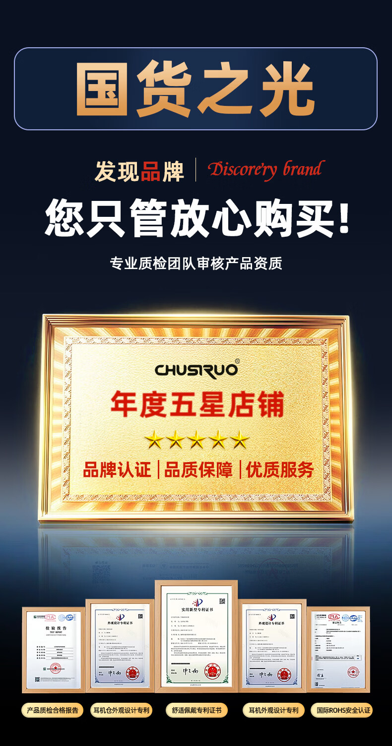CHUSIRUO【柏林之声丨全景音效】2025新款无线蓝牙耳机耳夹式不入耳通话降噪超长续航音乐耳机适配苹果 冠军版-曜夜黑