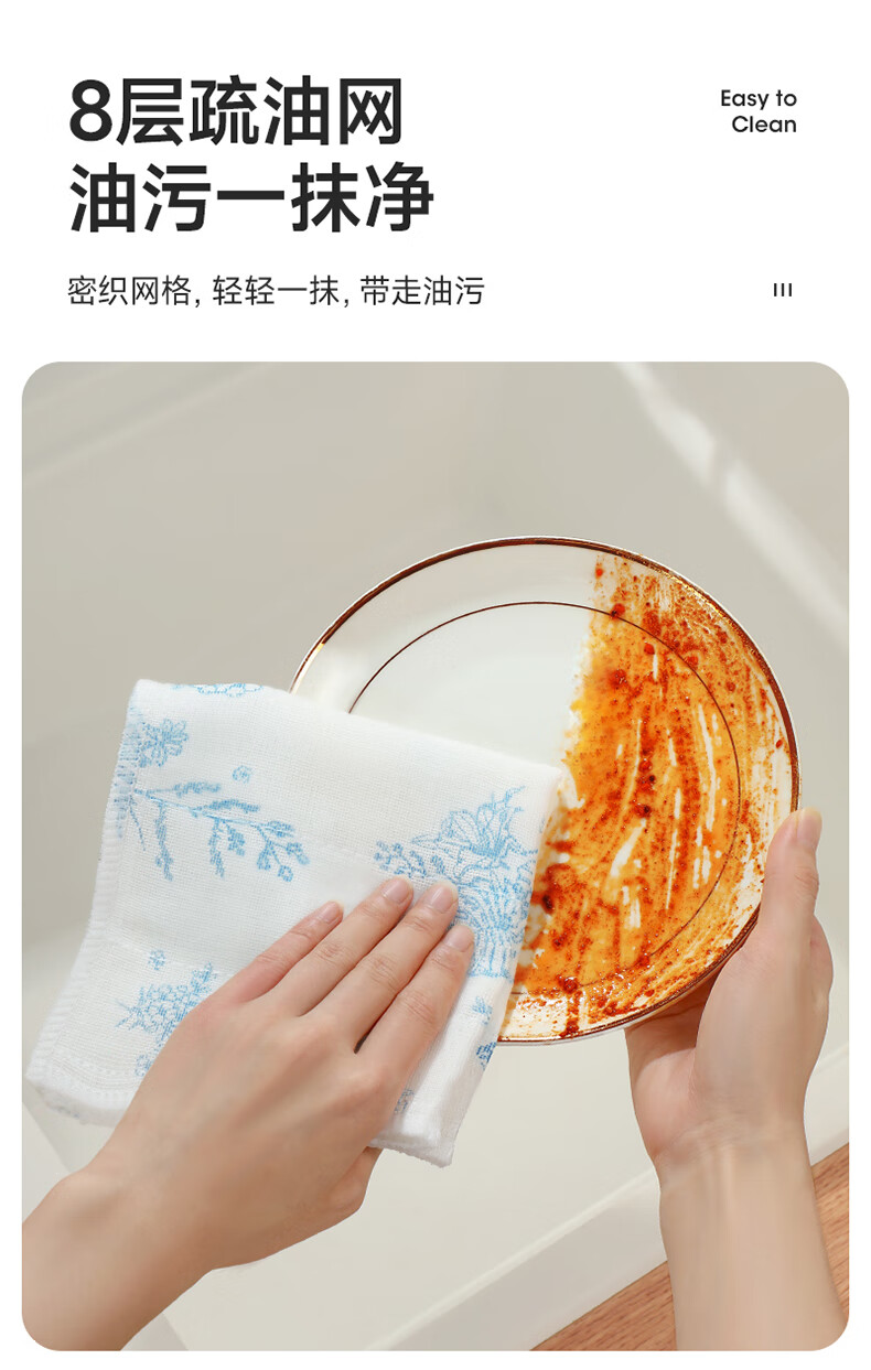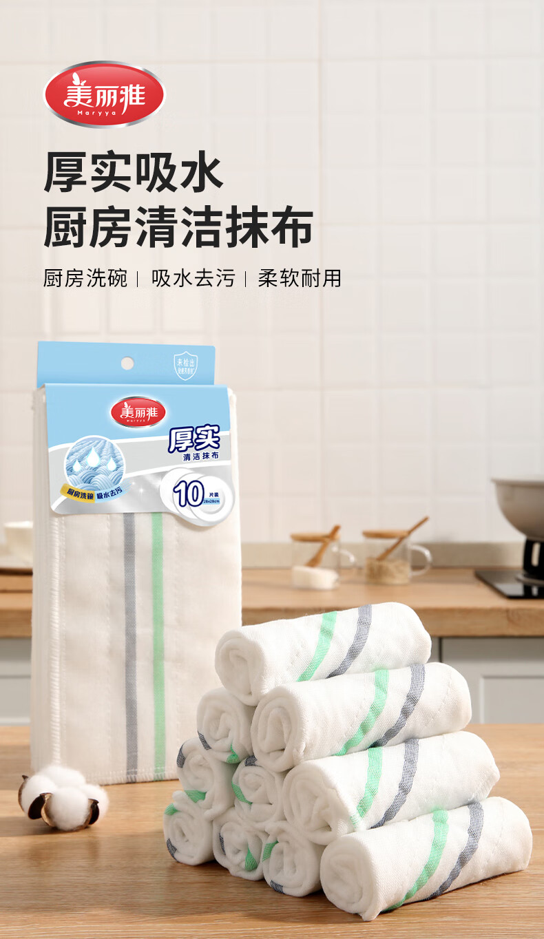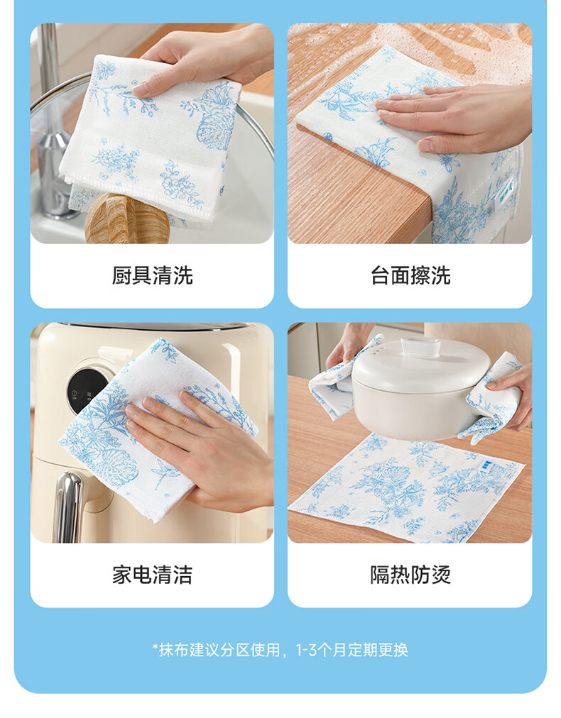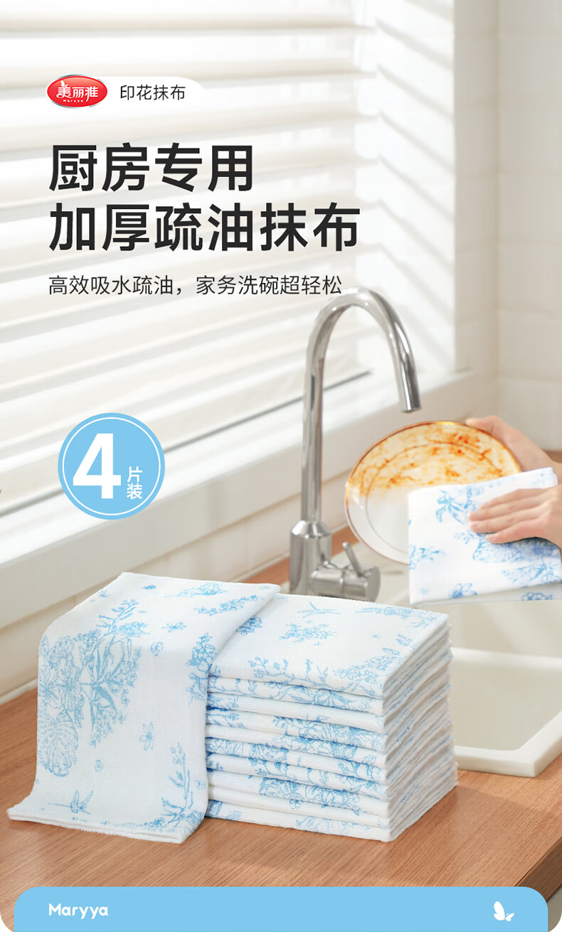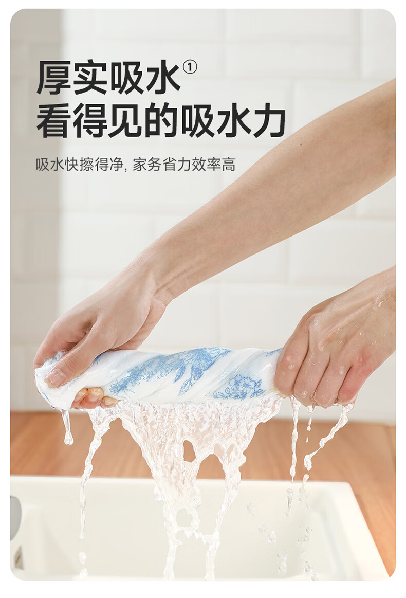 美丽雅印花洗碗抹布厨房多层加厚抹布强力吸水去油家用清洁抹布巾 厚实清洁抹布28*28cm*2【共20片】