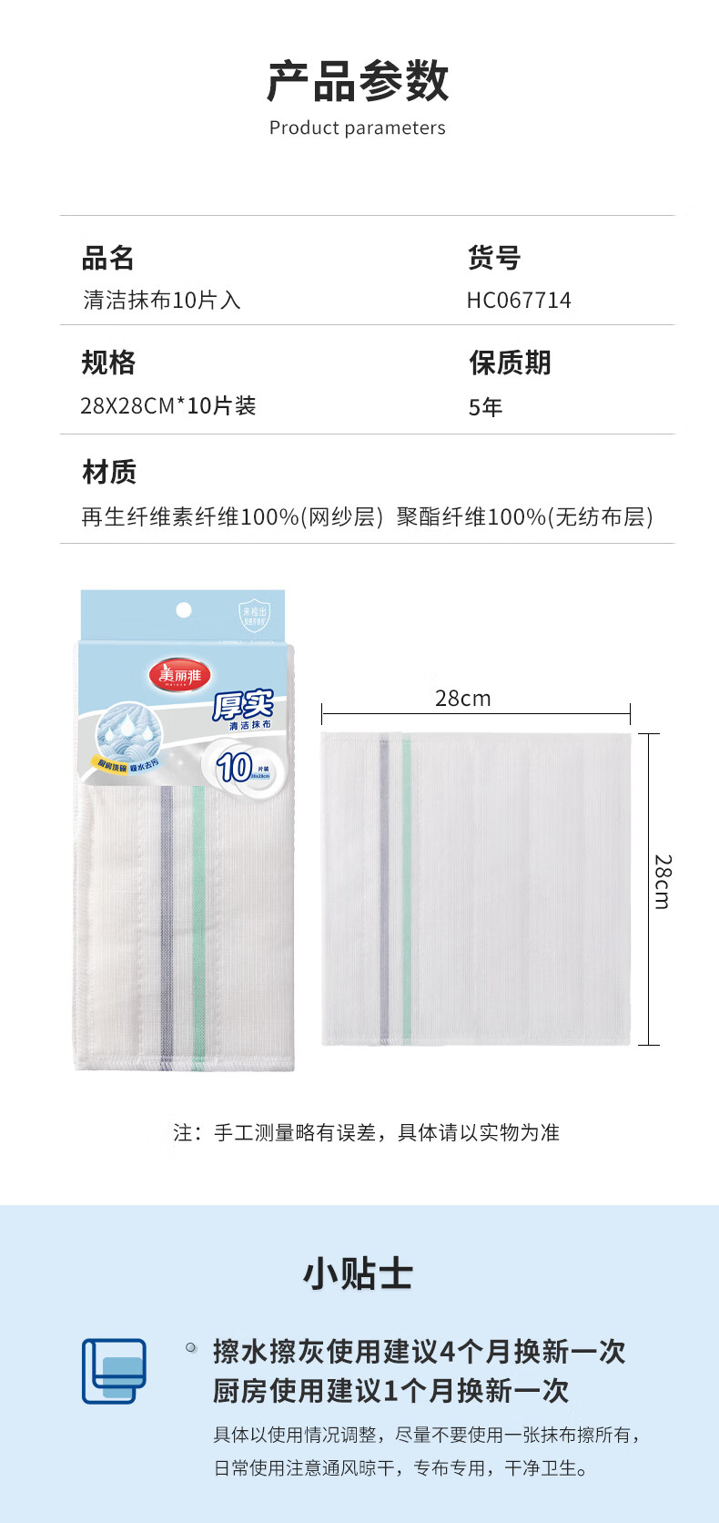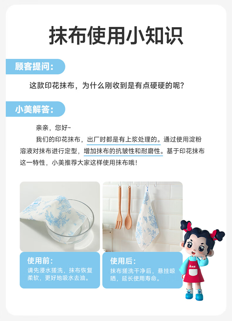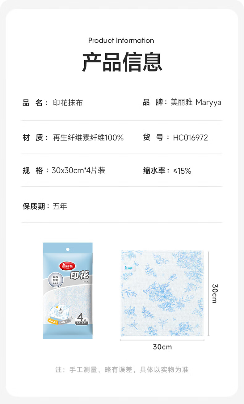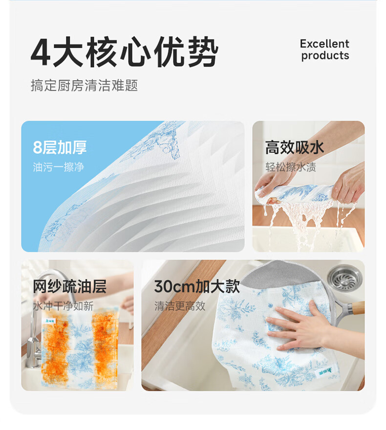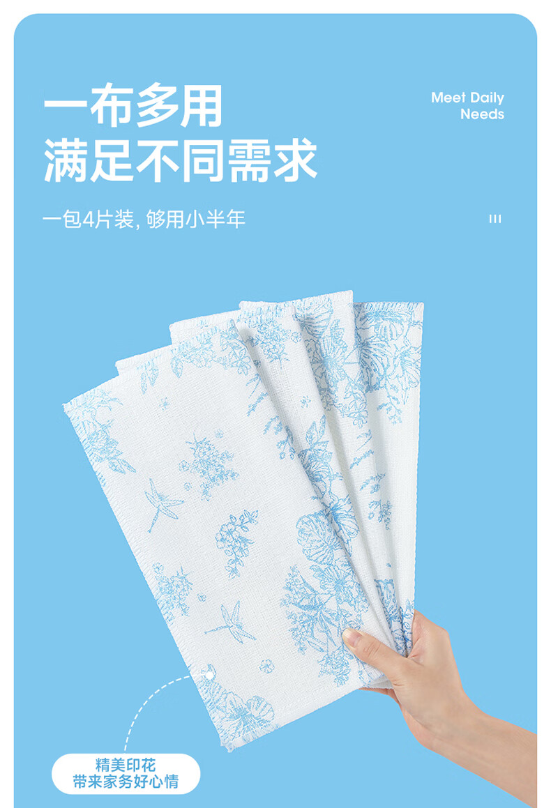 美丽雅印花洗碗抹布厨房多层加厚抹布强力吸水去油家用清洁抹布巾 厚实清洁抹布28*28cm*2【共20片】