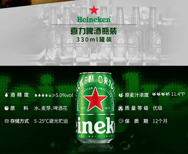 喜力经典系列330ml*24罐装全表酿造听装罐装啤酒出游聚餐国货 经典喜力啤酒 330mL 24罐