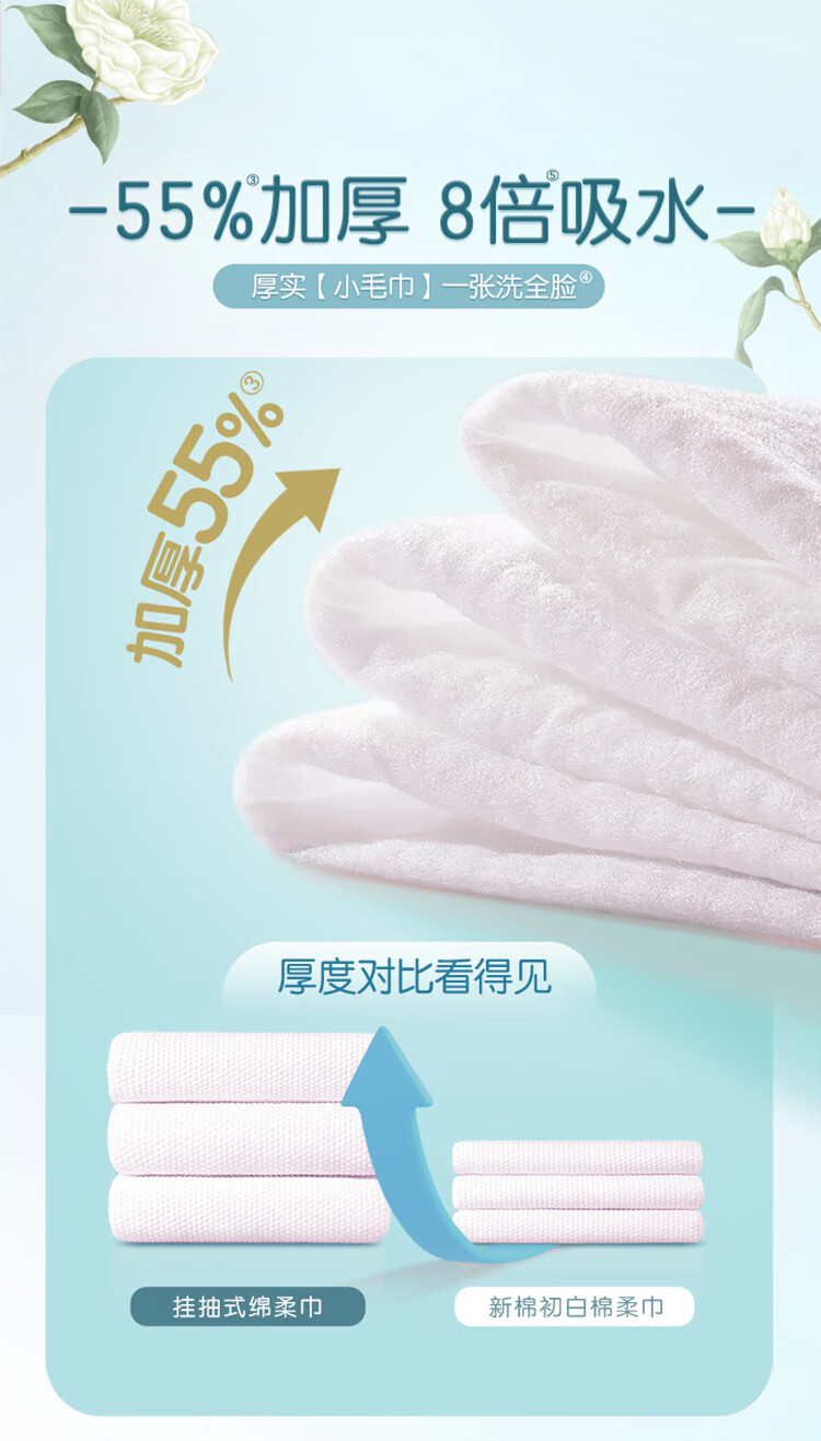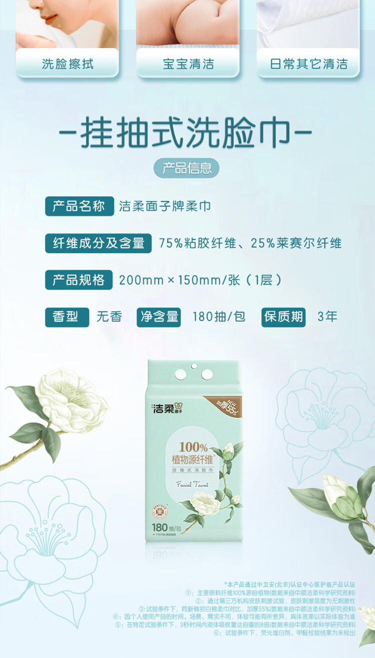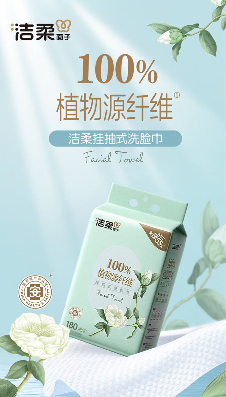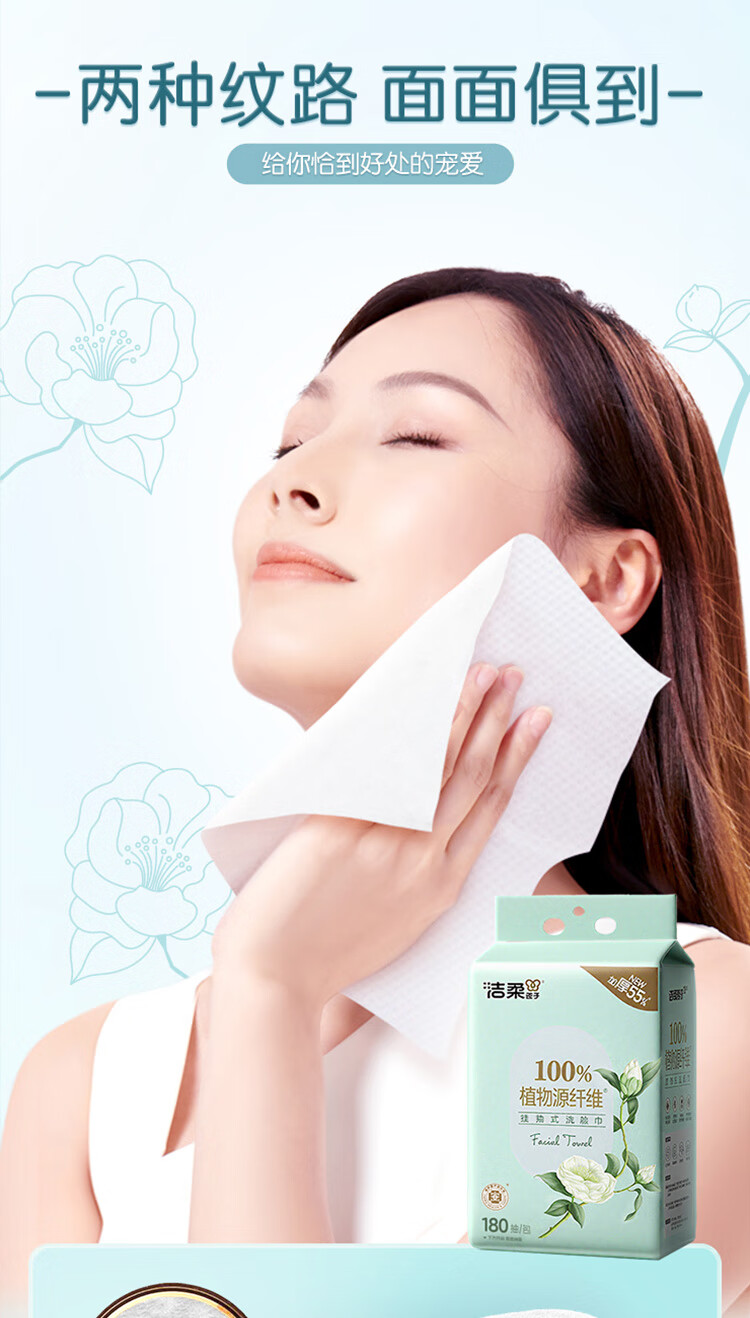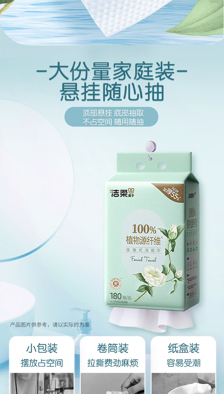洁柔洗脸巾白茶180抽悬挂式一次性洗脸巾洁面巾 加厚吸水母婴可用