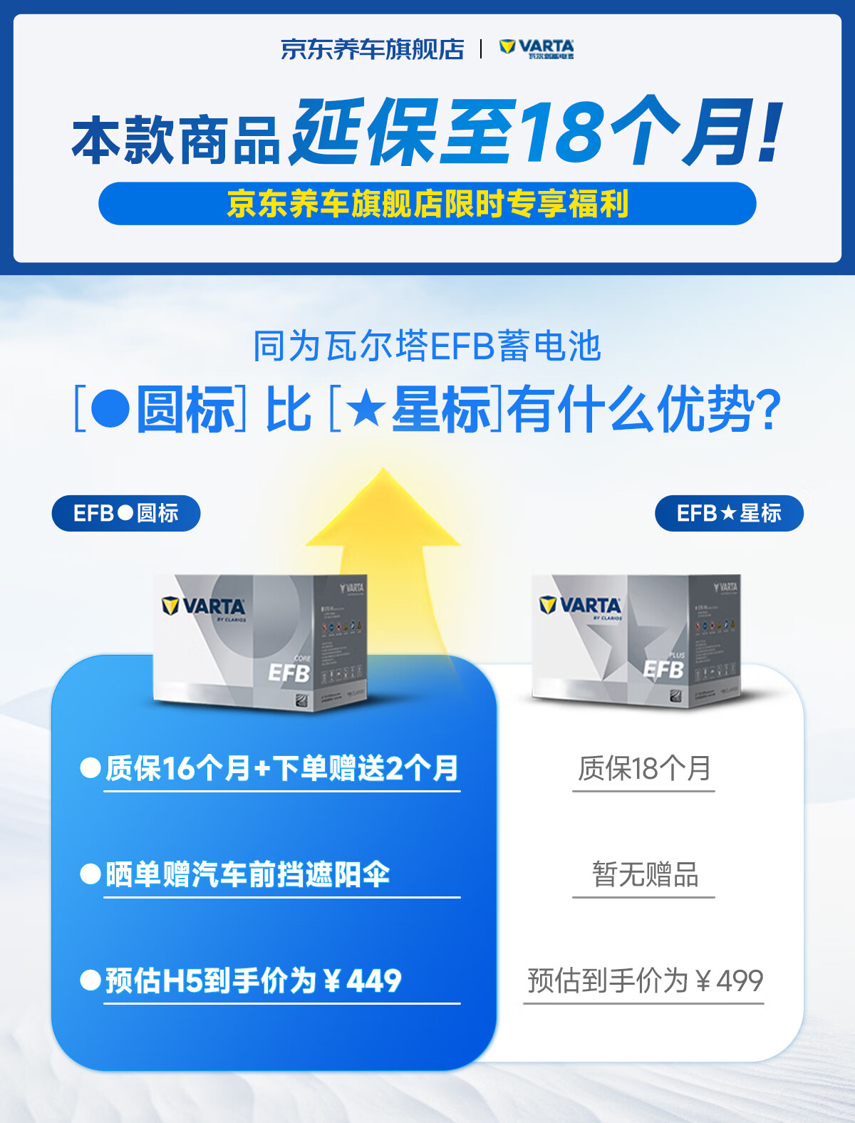 瓦尔塔(VARTA)京东养车汽车电瓶蓄电池启停EFB H5 60Ah圆标以旧换新上门安装