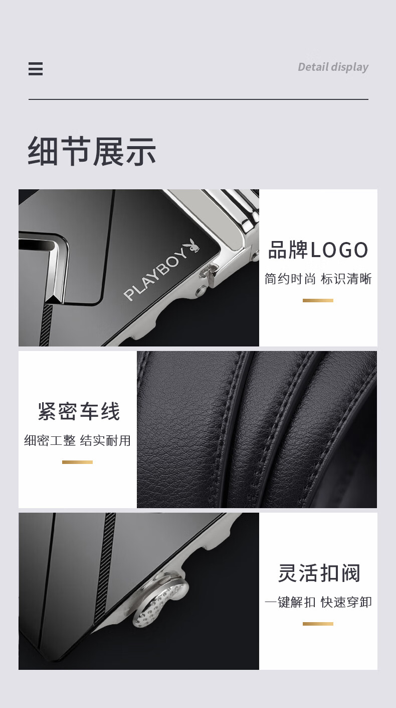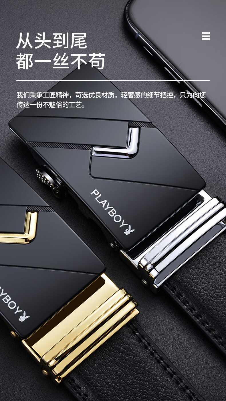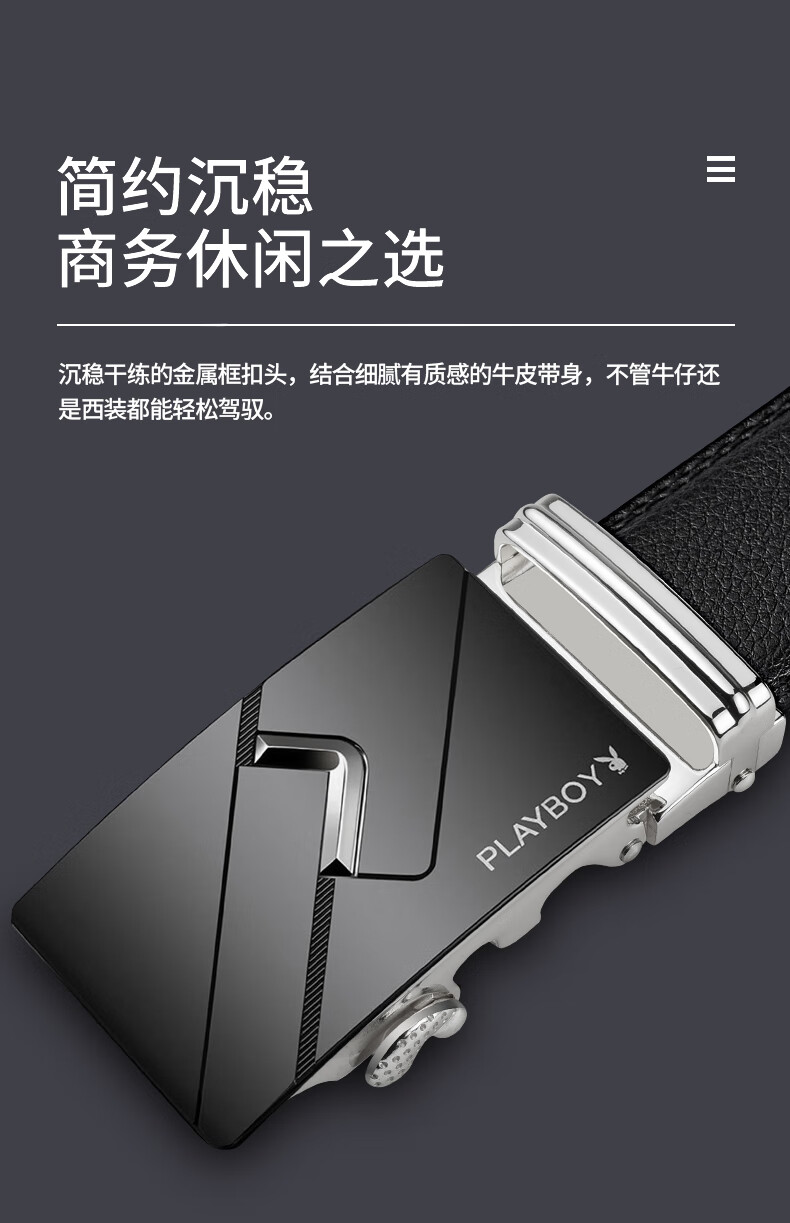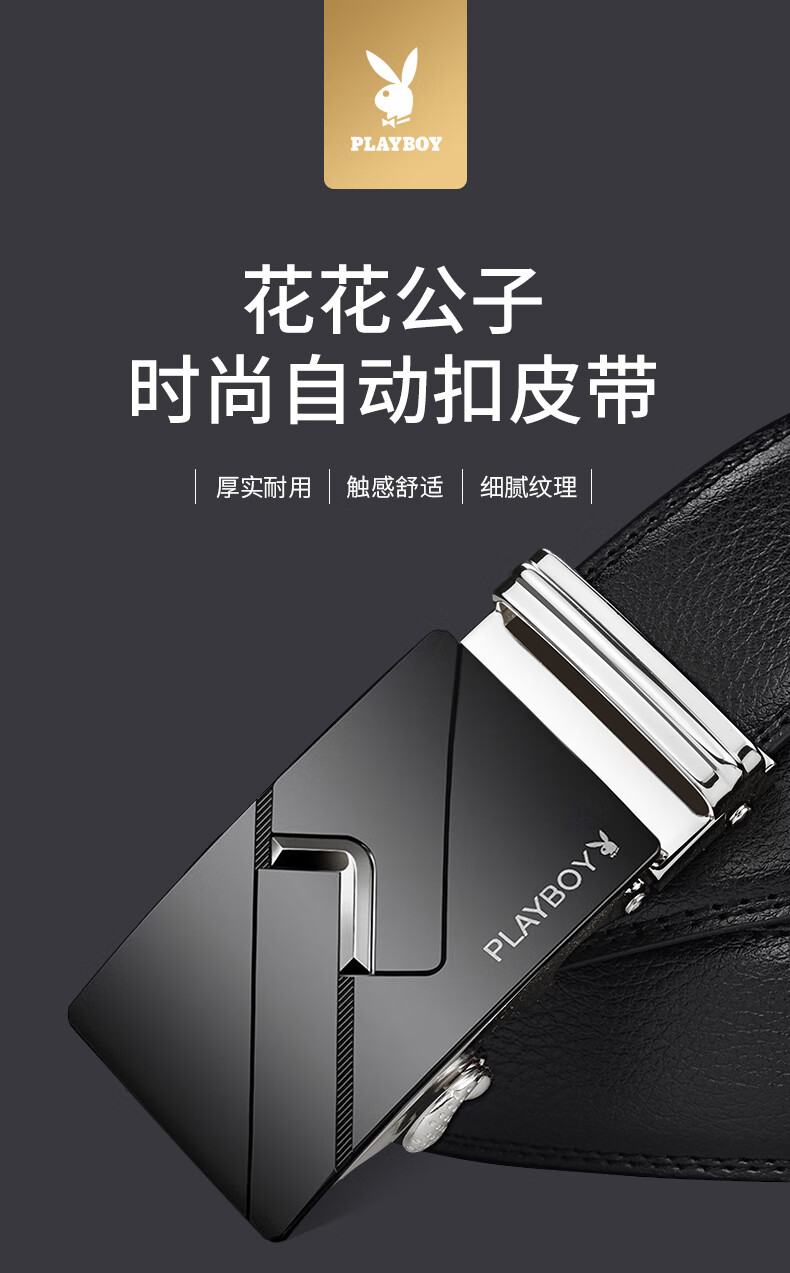 花花公子男士皮带真皮自动扣腰带韩版休闲青年商务纯牛皮裤腰带 7字头银色