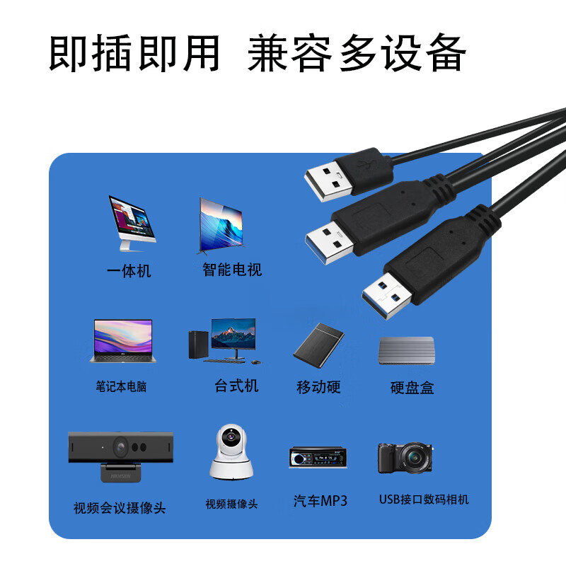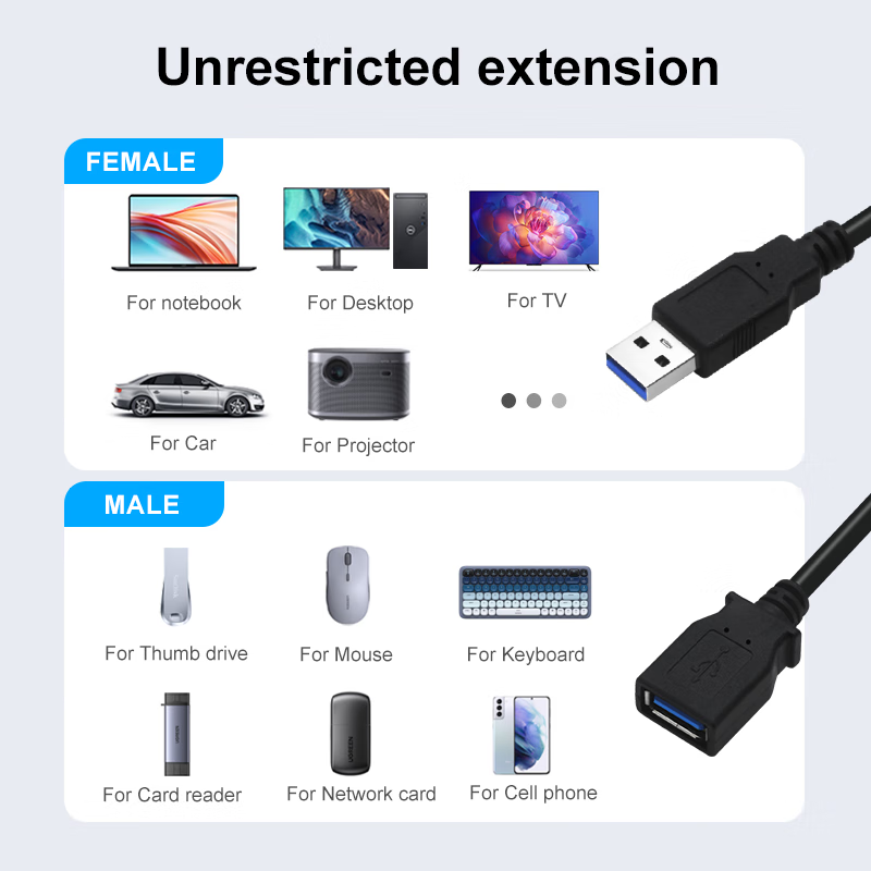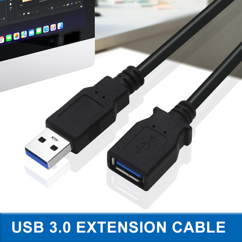优特讯USB3.0公对公连接线USB延长线8米10米15米电脑连接会议摄像头电子白板触控屏移动硬盘盒相机 黑色 USB3.0公对母延长线 5米