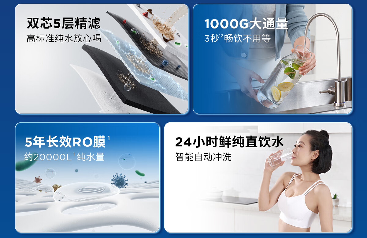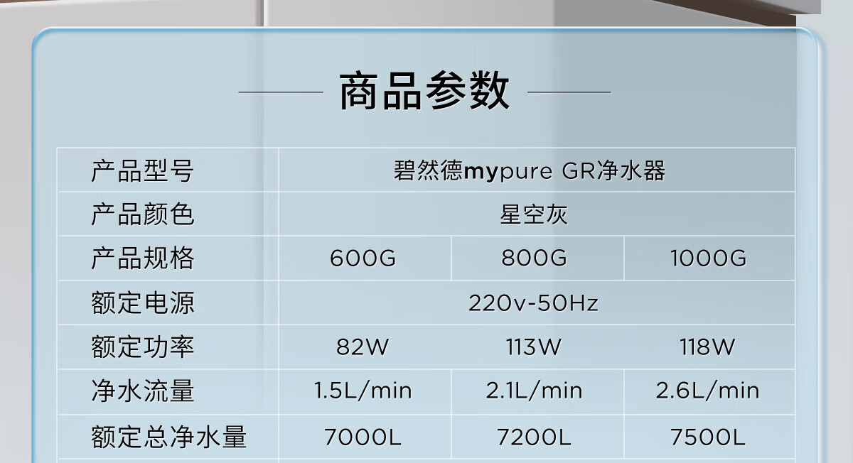 碧然德【孙颖莎推荐】1000G净水器家用 RO反渗透大流量净饮机橱下式直饮机净水机mypure GRSRO mypure GR1000G