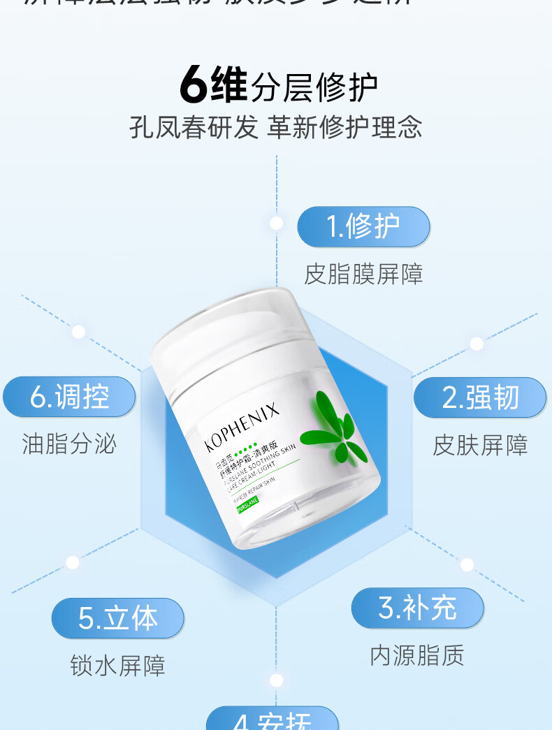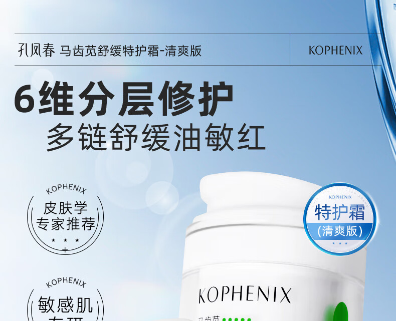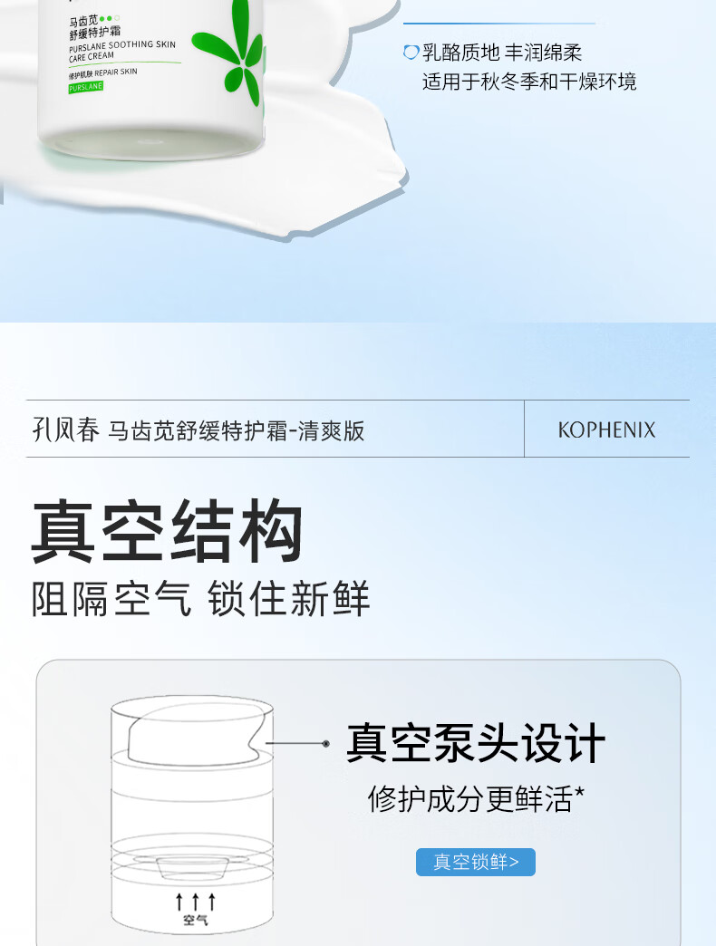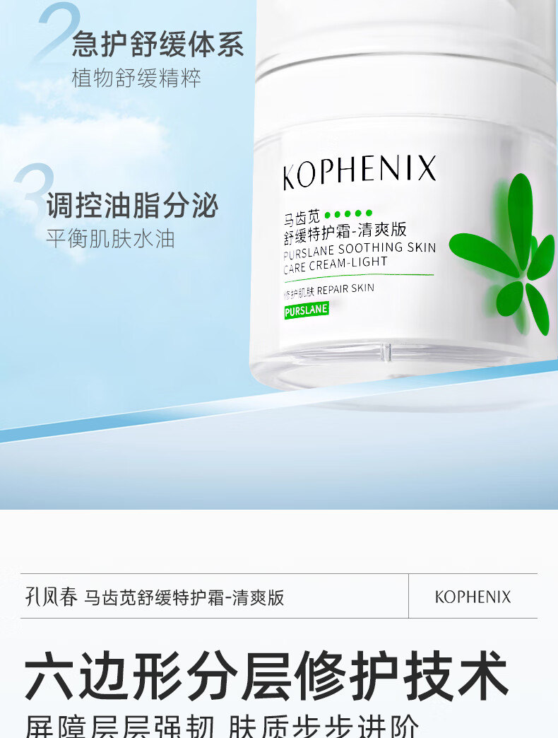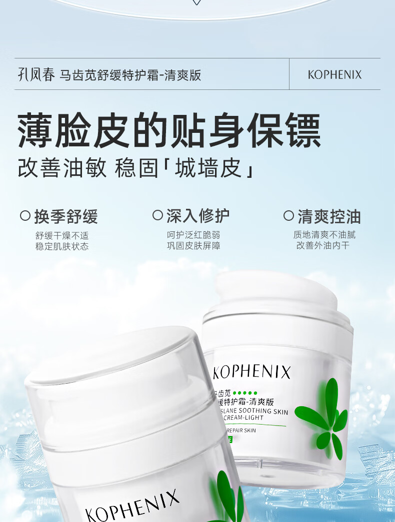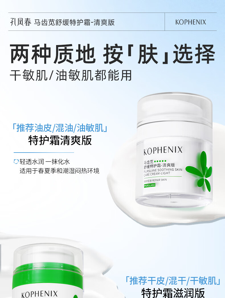 孔凤春【王以纶同款】马齿苋清爽特护霜敏感肌修护补水保湿控油维稳面霜 50g清爽版(到手60g)