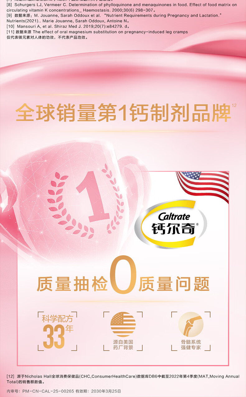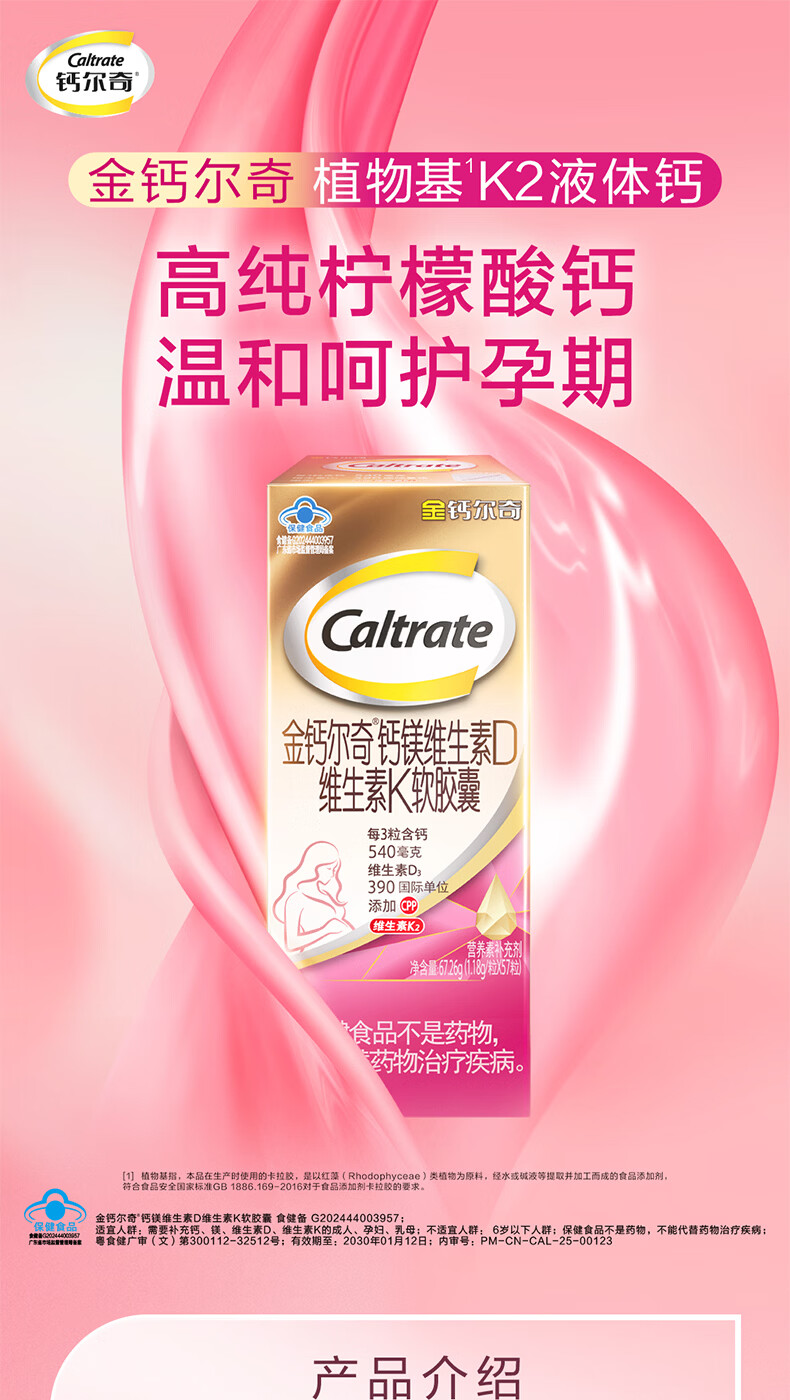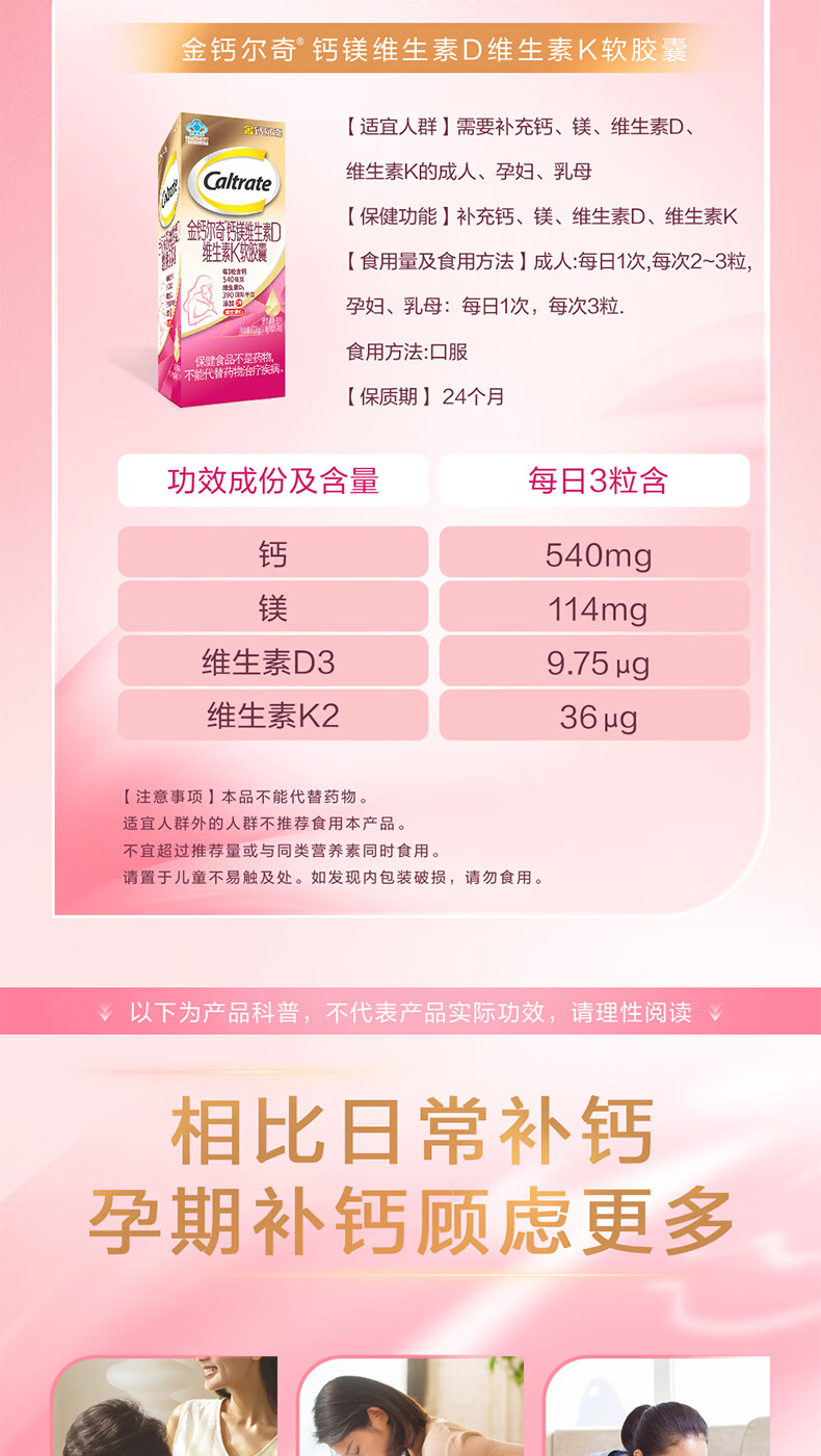 钙尔奇(Caltrate)孕妇钙片 维生素D3柠檬酸钙 备孕 孕早中晚期哺乳期补钙 年货礼品 孕妇钙 60片*2盒 (40天量)