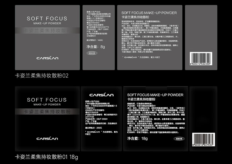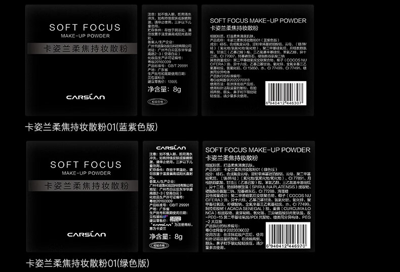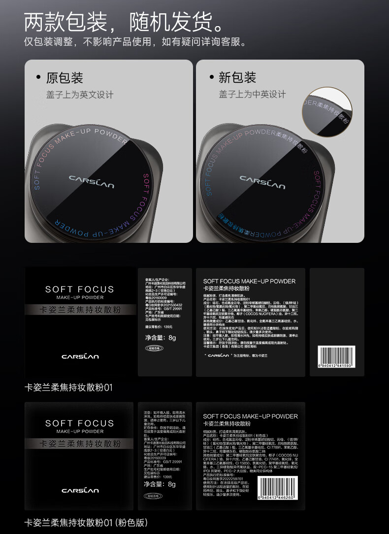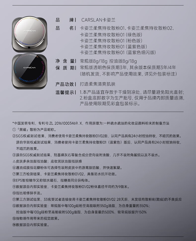 卡姿兰(Carslan)黑磁散粉定妆粉蜜粉饼持久控油易防水易防汗美妆化妆品生日礼物 蓝紫色-提亮减黄(黄皮)