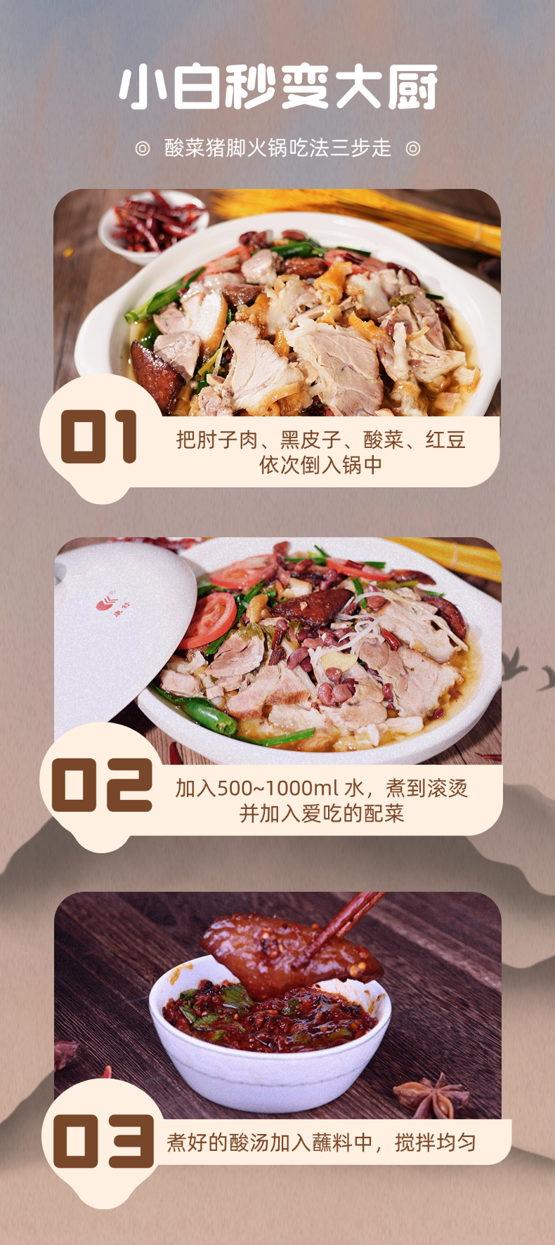 山妹食坊【京东快递】云南特产富源酸汤猪脚火锅食材带蘸水0添加3-4人套餐 酸菜猪脚1180g 300g肘子肉+200g黑皮子+480g酸菜+150g红豆+50g蘸水