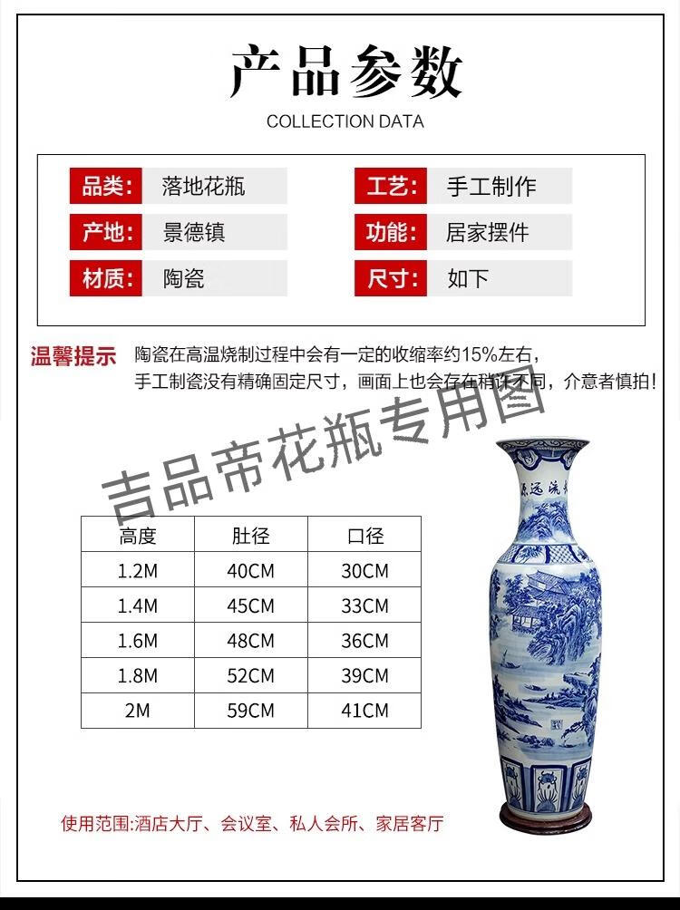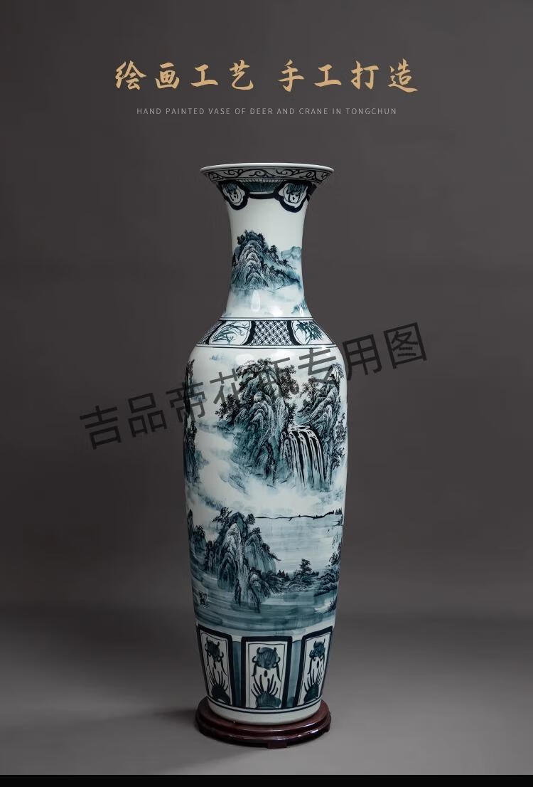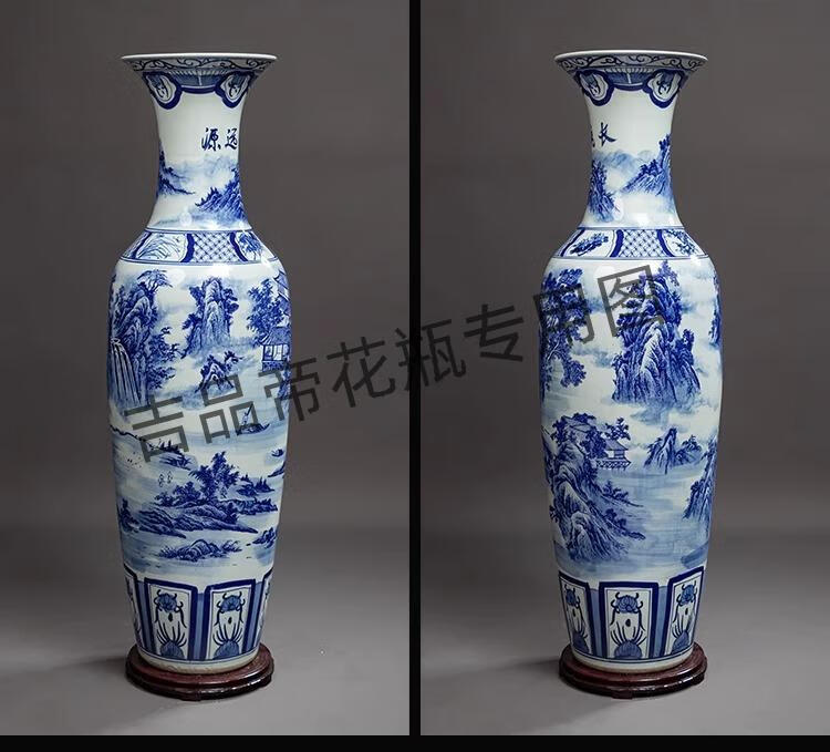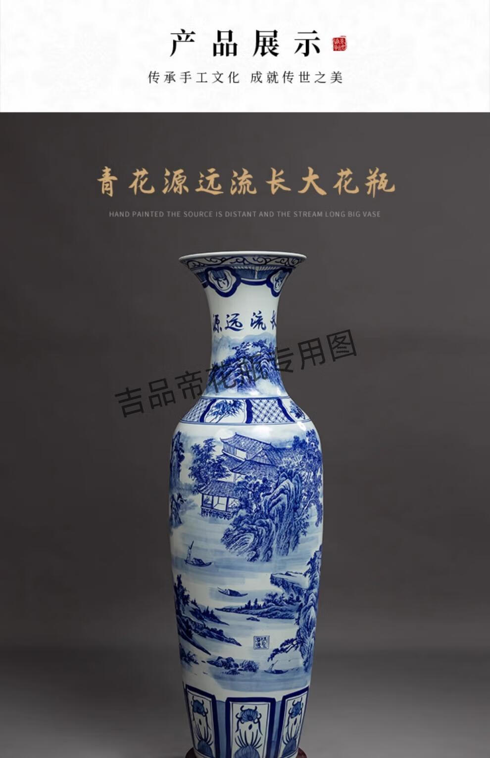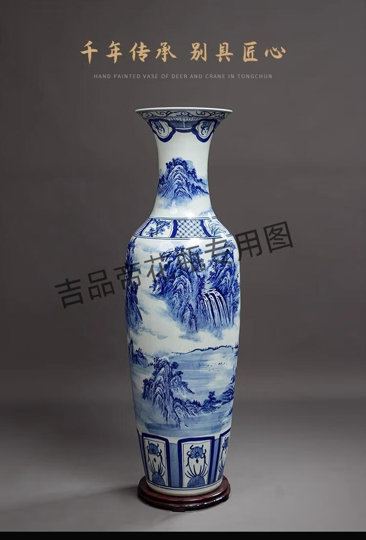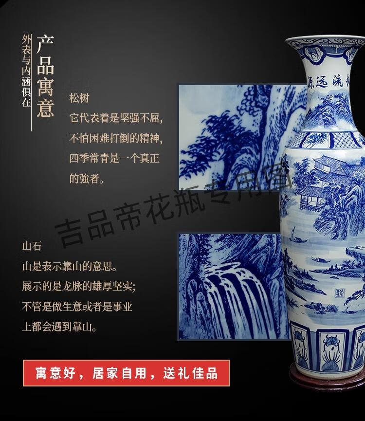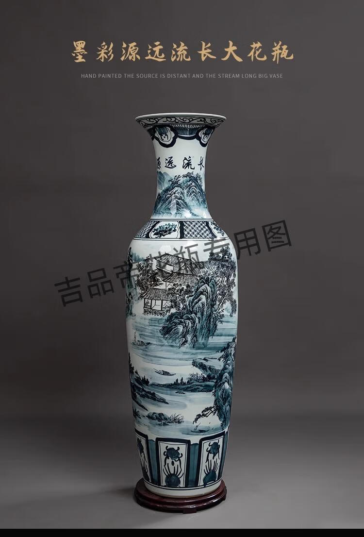 吉品帝景德镇陶瓷落地大花瓶青花瓷客厅电视柜中式装饰乔迁开业摆件大号 高源远流长(墨彩) 单个+送底座 200cm