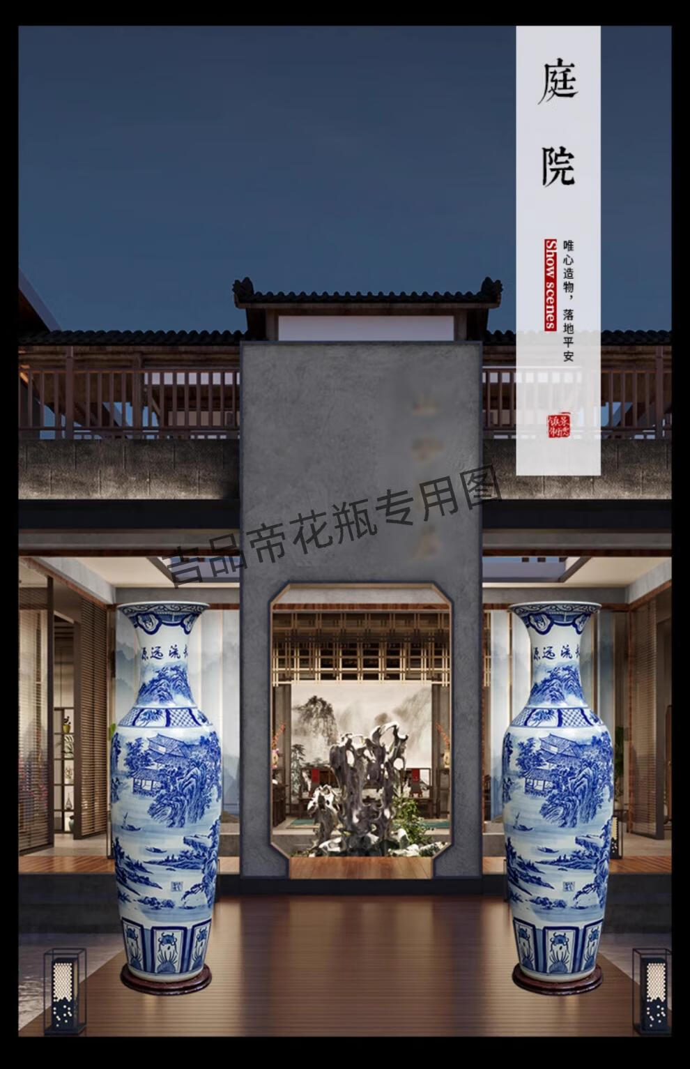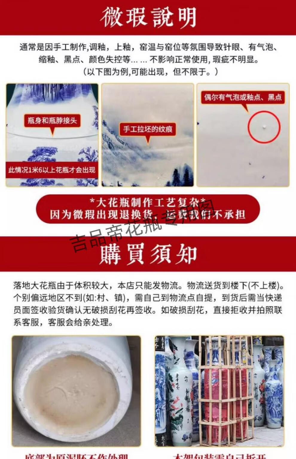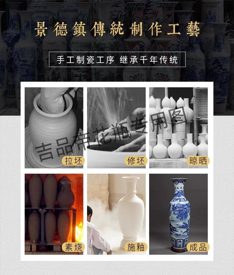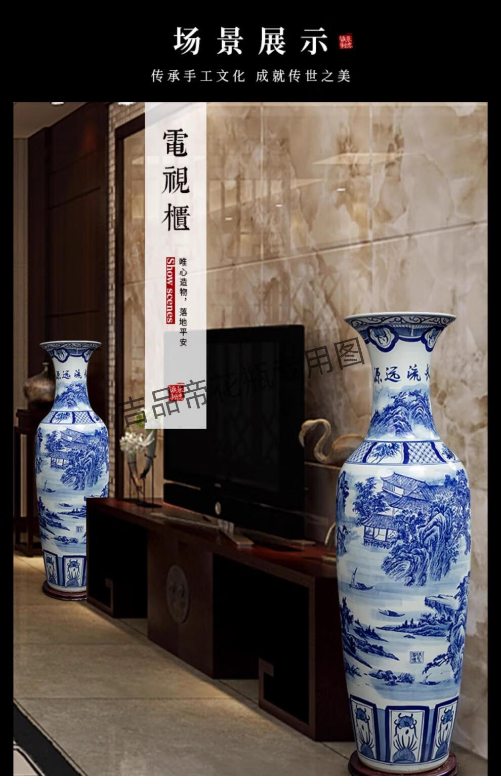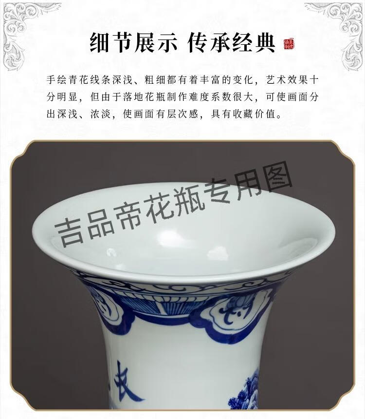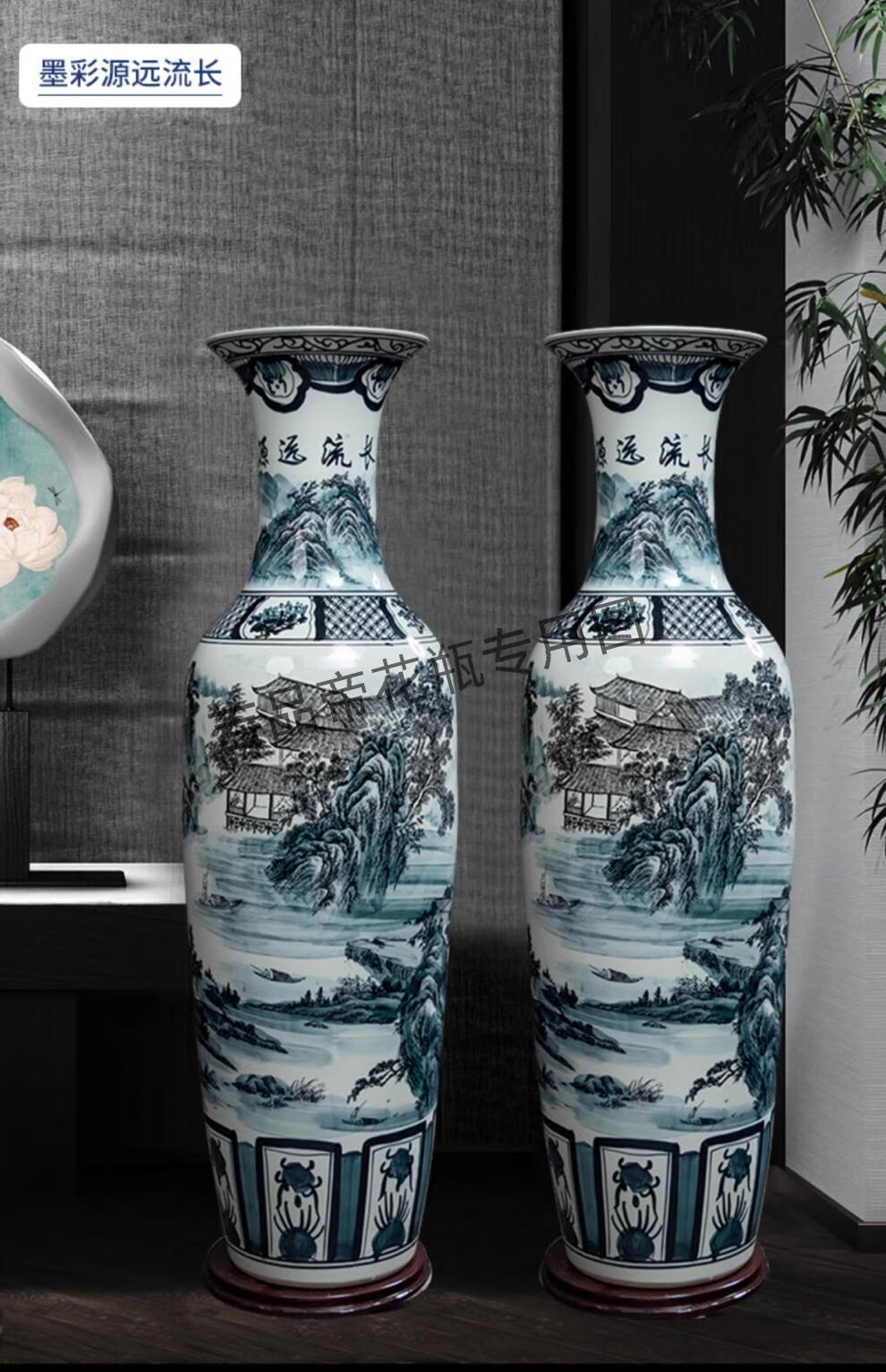 吉品帝景德镇陶瓷落地大花瓶青花瓷客厅电视柜中式装饰乔迁开业摆件大号 高源远流长(墨彩) 单个+送底座 200cm