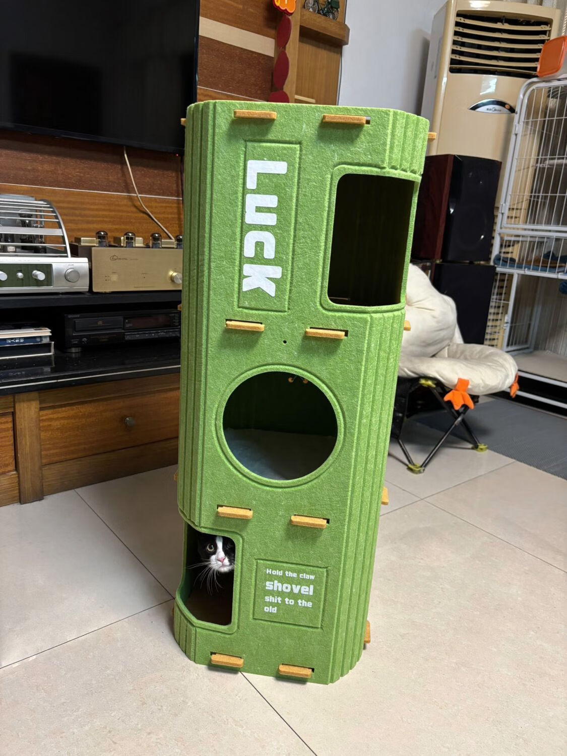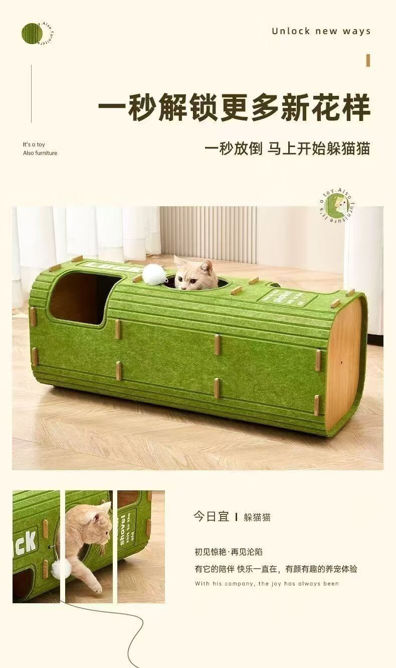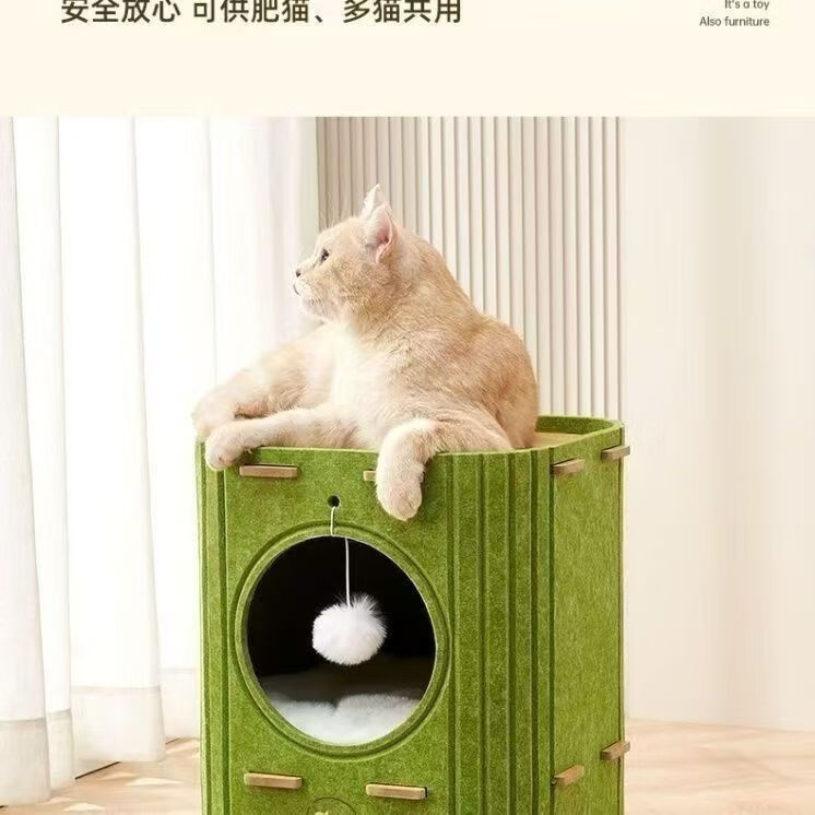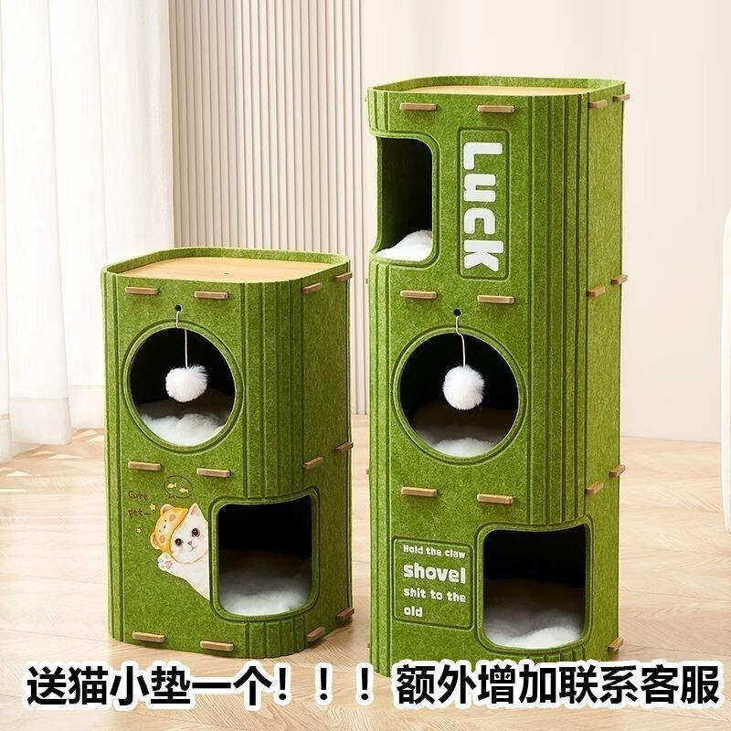 言象【优选】毛毡猫窝多层一体树洞冬天冬季猫咪保暖双层躲避屋多猫家 L 绿色双层树洞猫窝