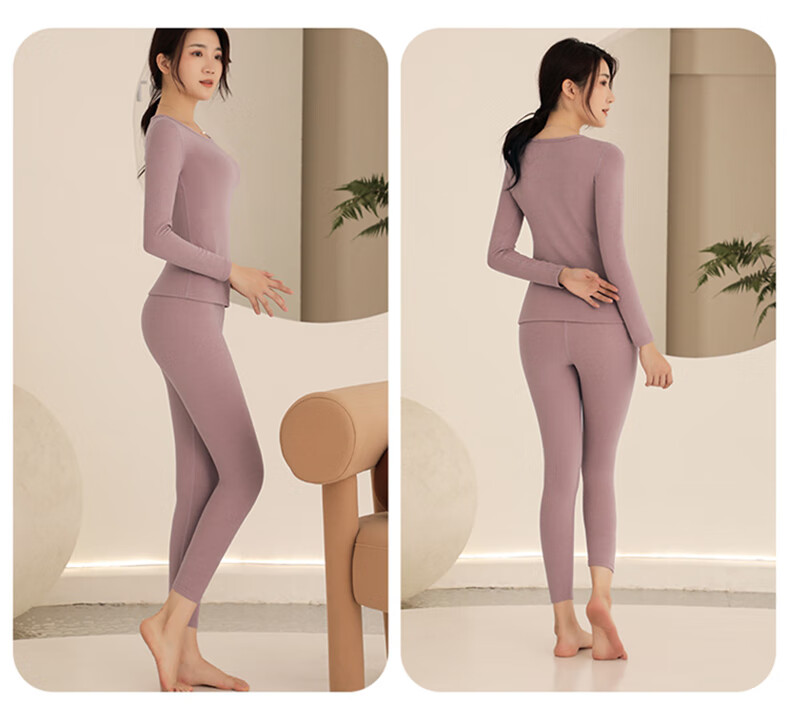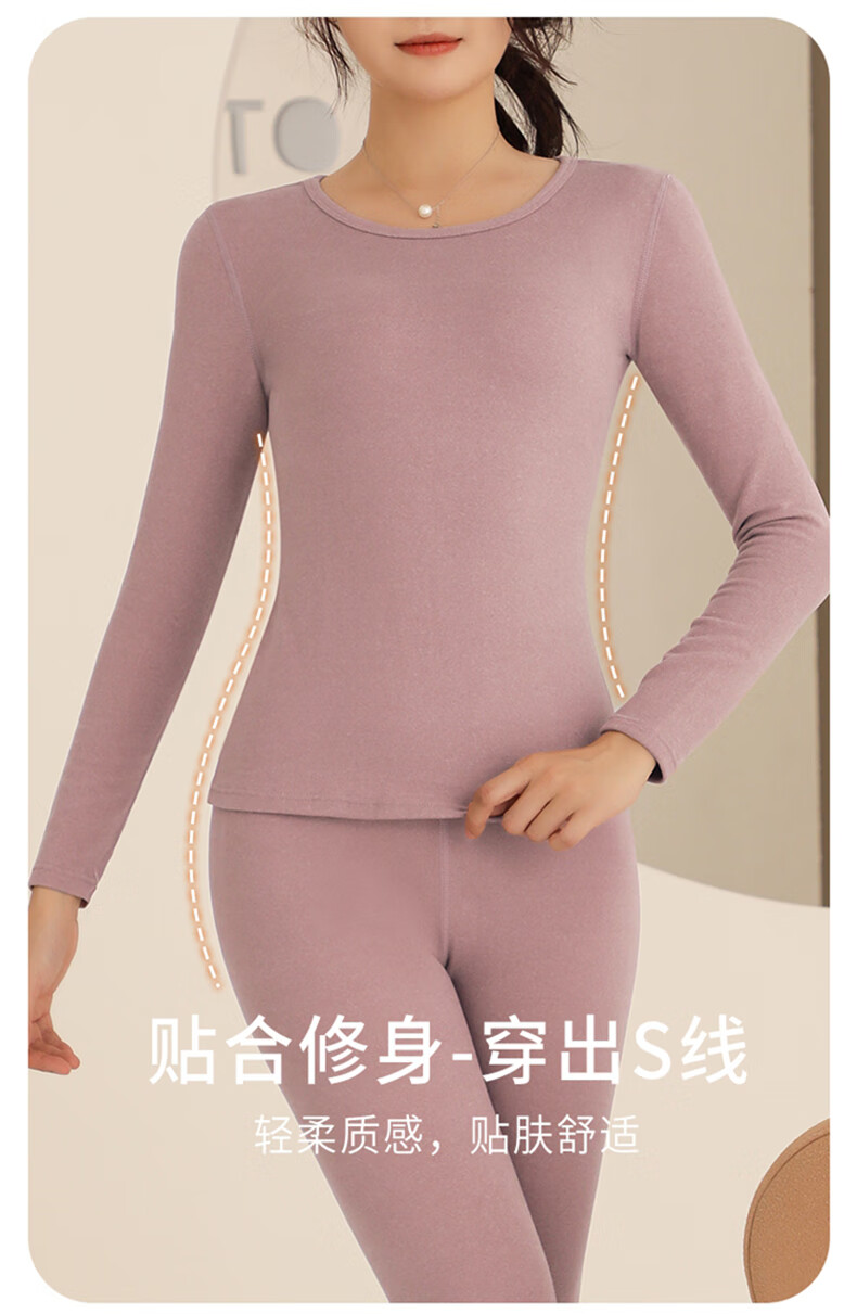 芬腾可安玻尿酸保暖内衣女美体塑形无痕秋衣秋裤套装冬季长袖打底 肤色 L (90-130斤)