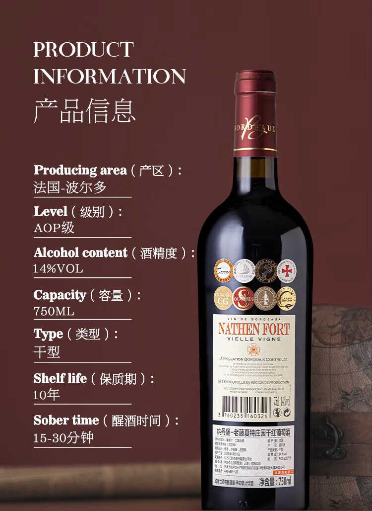 赫图令【国际金奖/2箱】法国原瓶进口红酒整箱波尔多干红葡萄酒送礼盒装 【老藤14度】2箱共12瓶