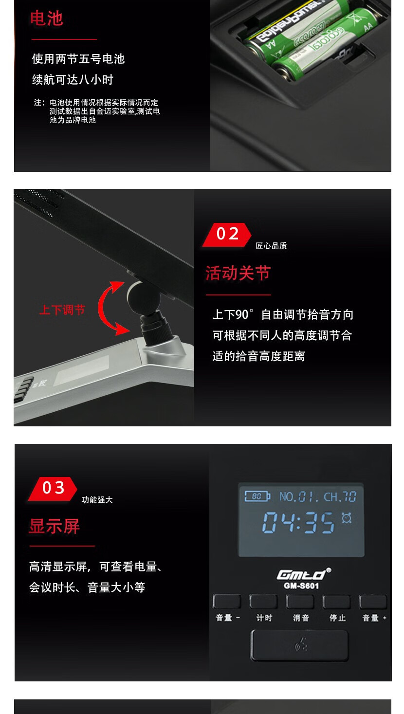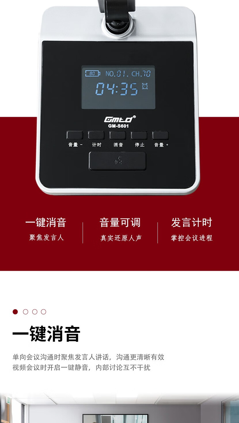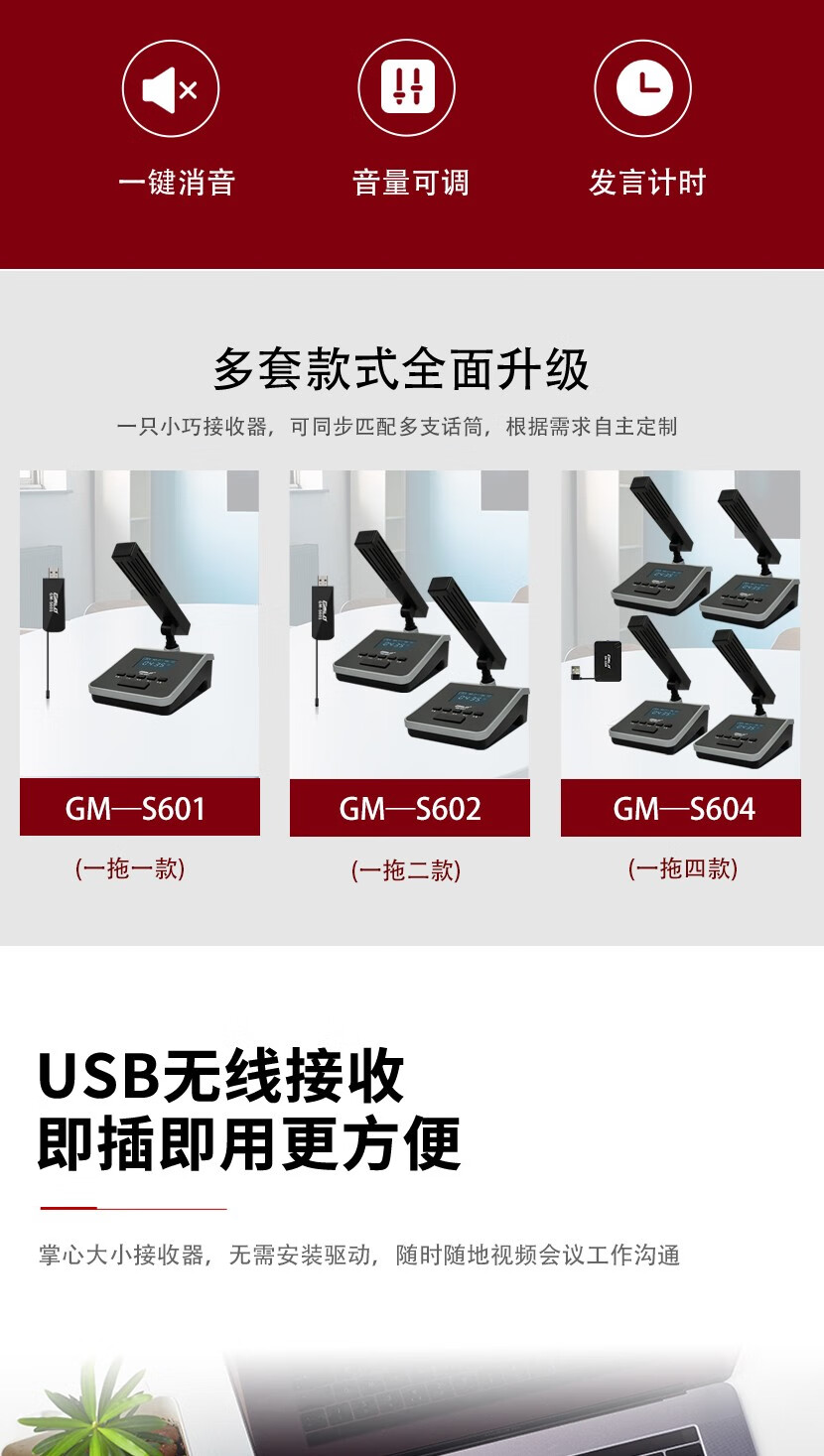 Gmtd 金迈视频会议麦克风无线话筒电脑USB专业远距离收音鹅颈台式方管短杆电容麦网络教学考研面试 GM-S601一拖一