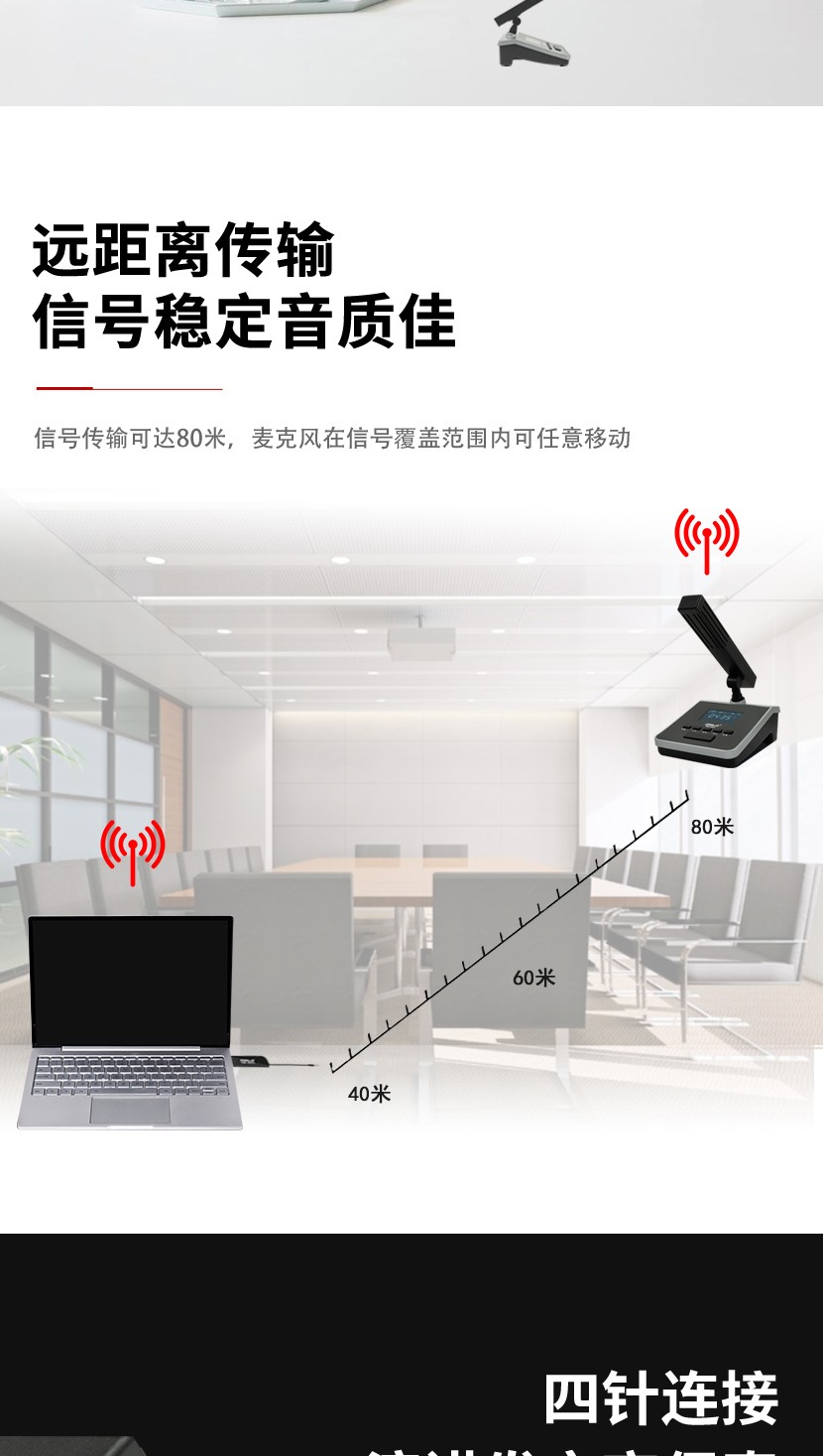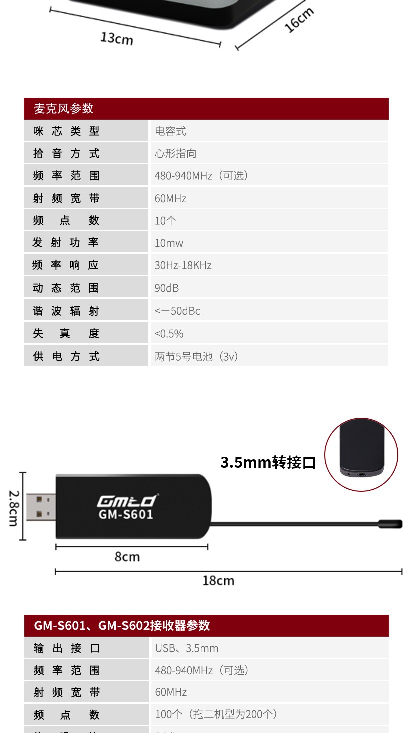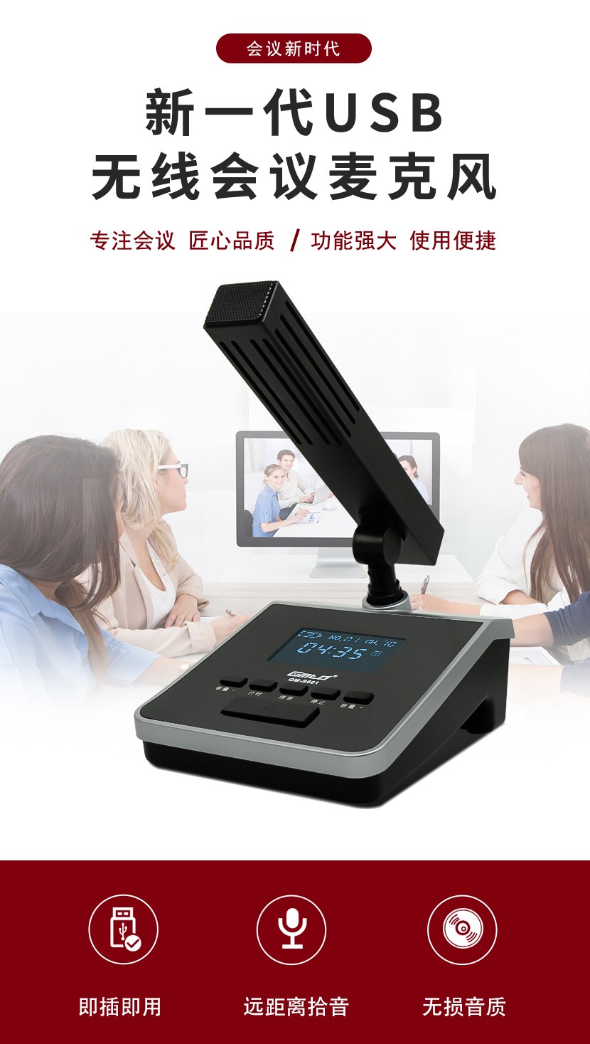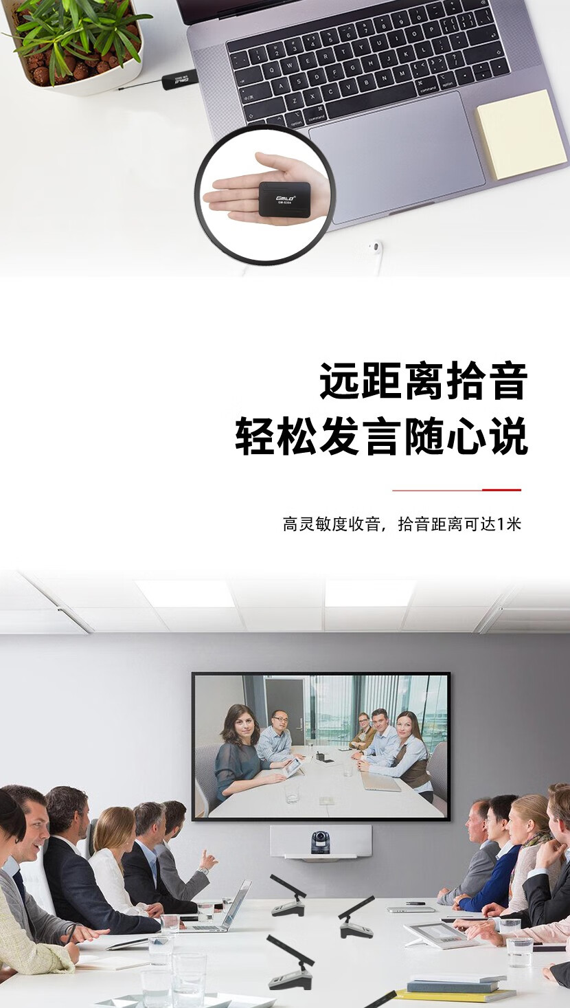 Gmtd 金迈视频会议麦克风无线话筒电脑USB专业远距离收音鹅颈台式方管短杆电容麦网络教学考研面试 GM-S601一拖一