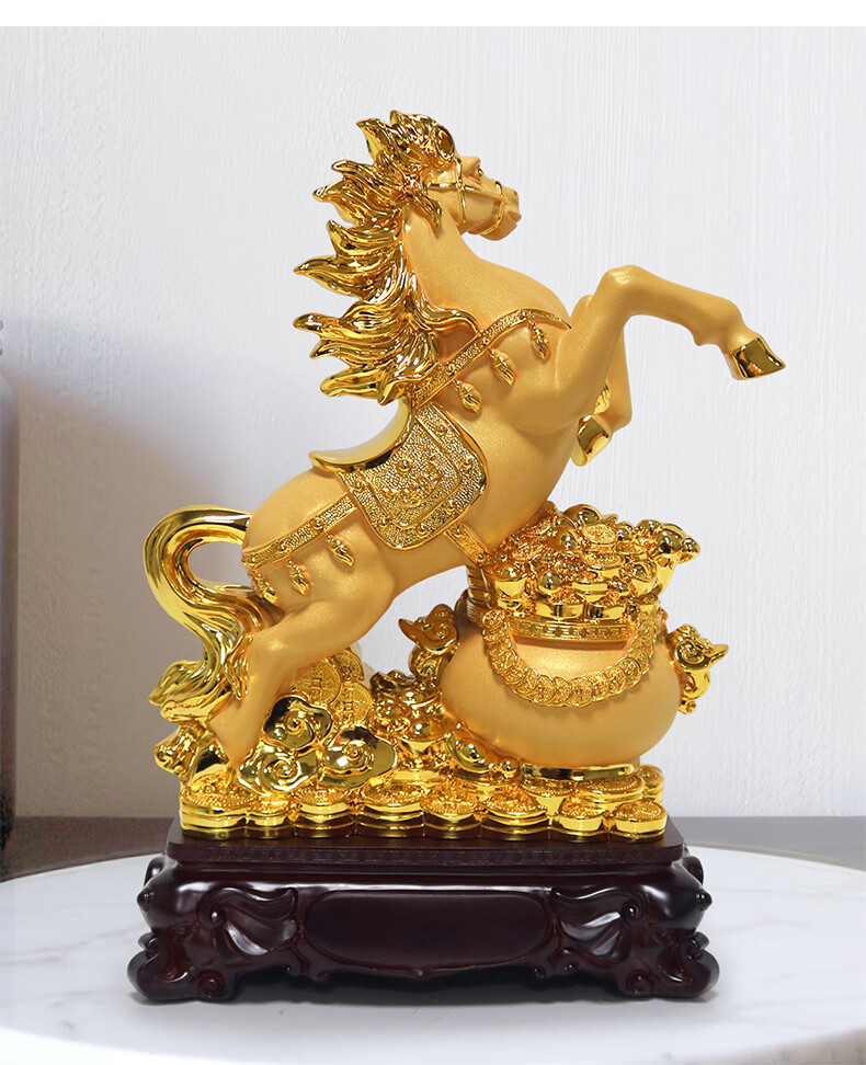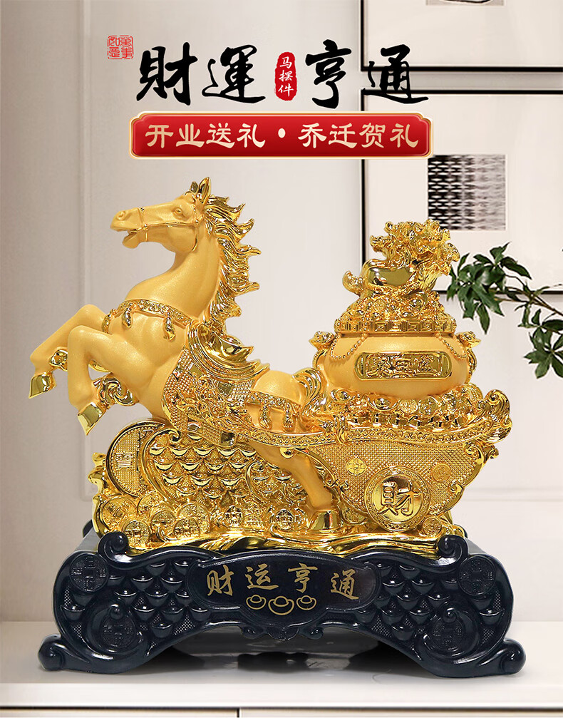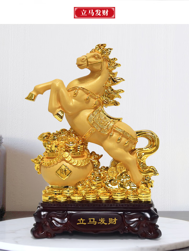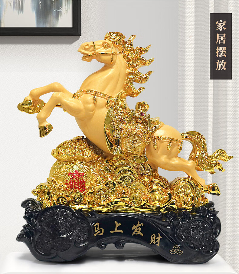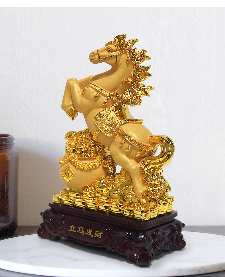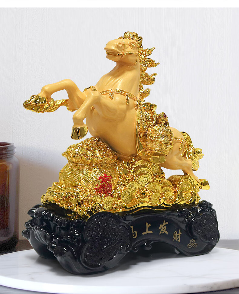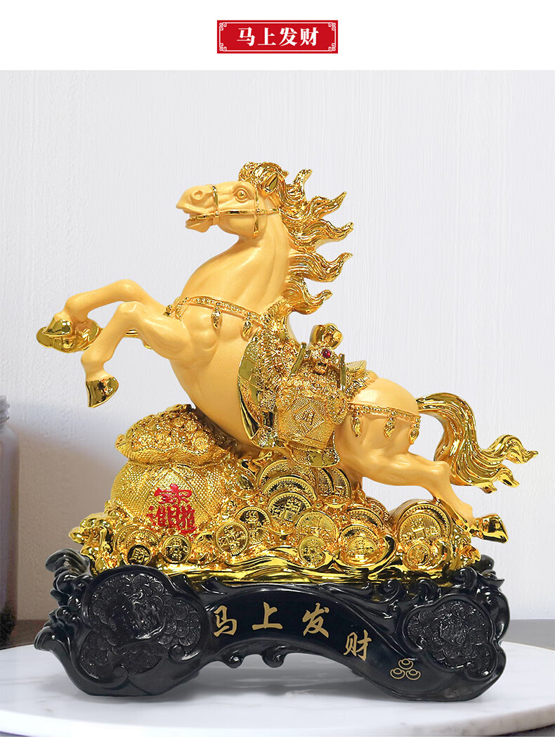 热美家居沙金马上发财马摆件招财客厅酒柜办公室桌面上装饰品店铺开业礼品 沙金财运亨通马摆件高24厘米