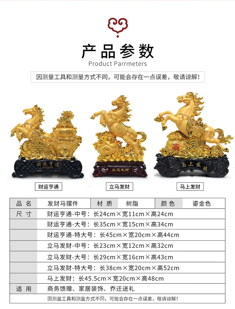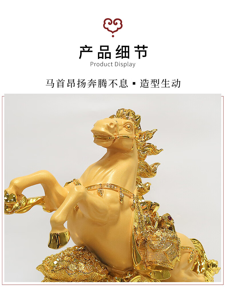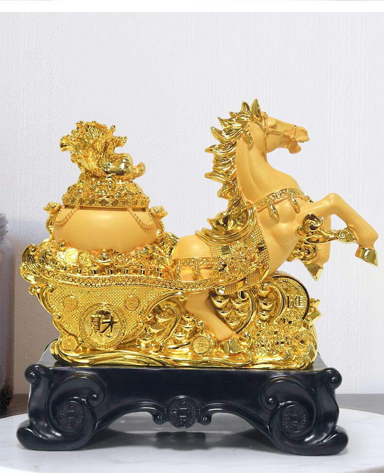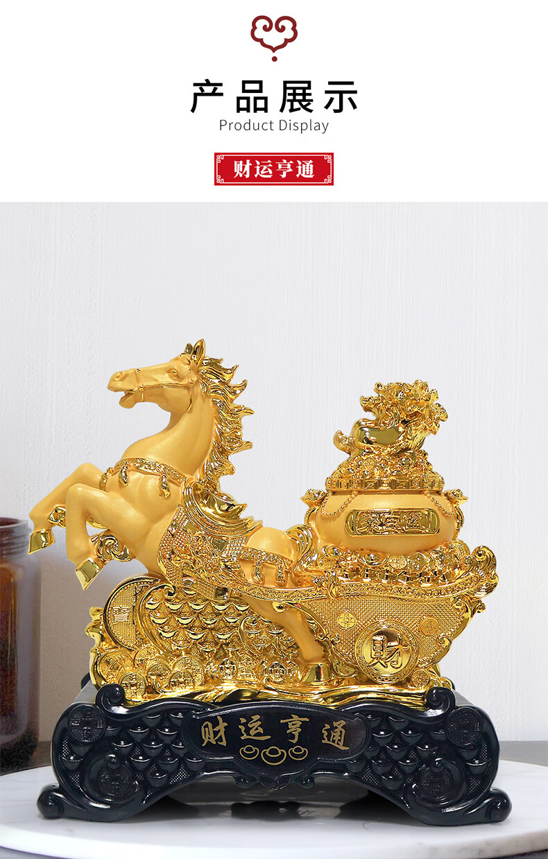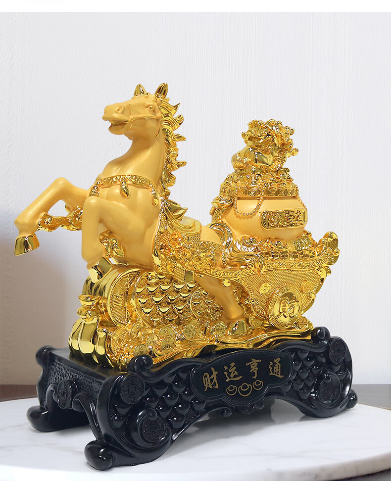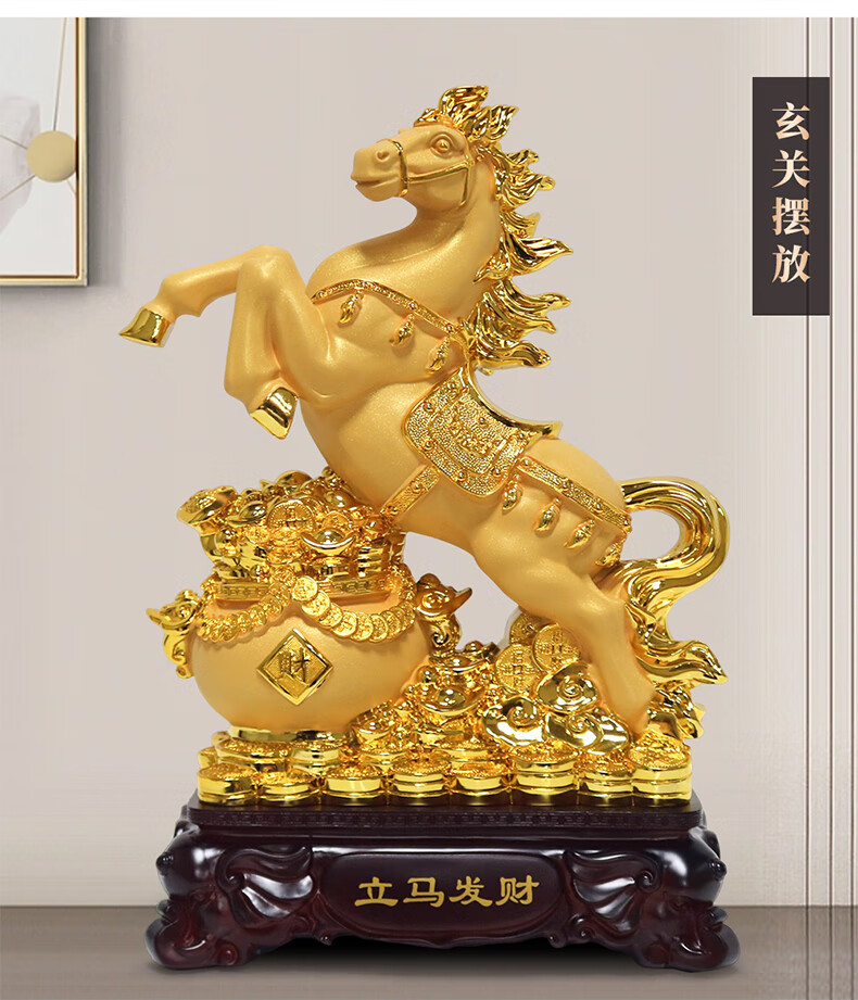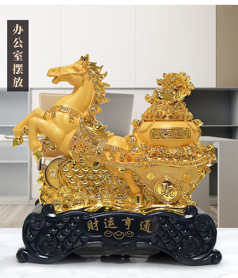 热美家居沙金马上发财马摆件招财客厅酒柜办公室桌面上装饰品店铺开业礼品 沙金财运亨通马摆件高24厘米