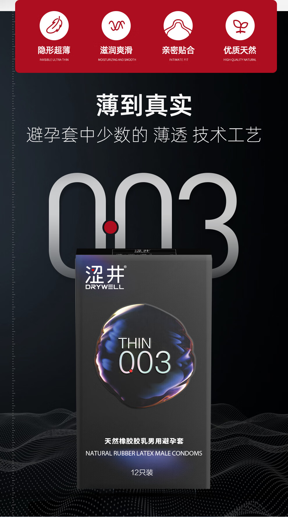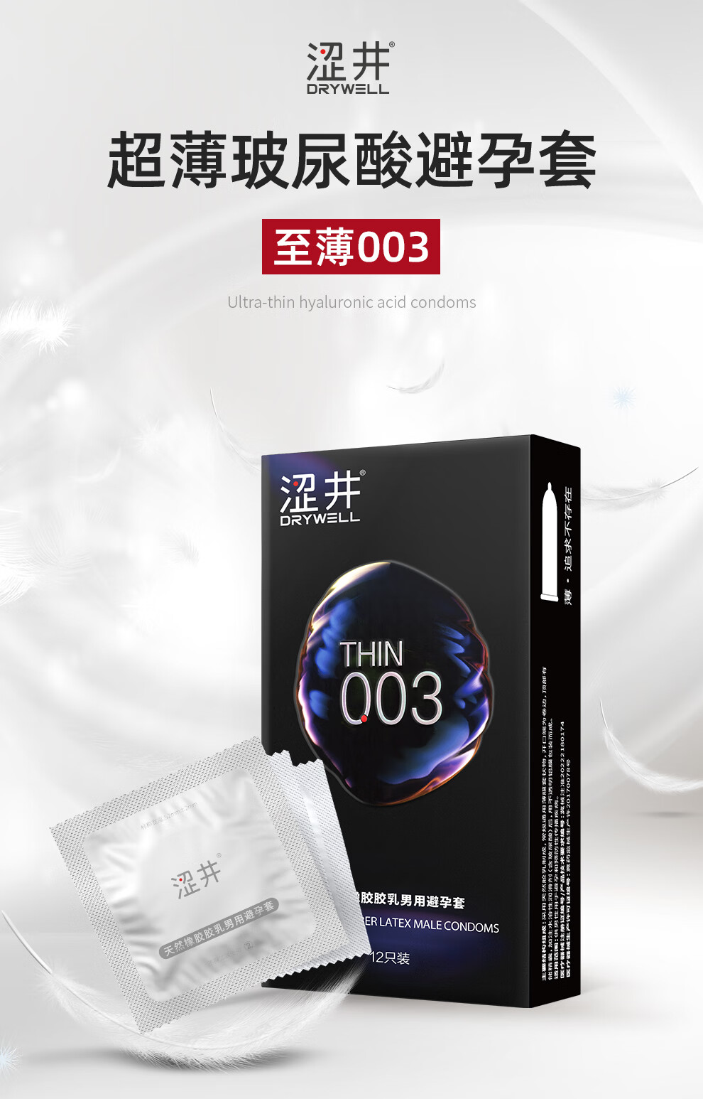 涩井避孕套超薄003 男用润滑型玻尿酸安全套 计生成人情趣性用品 003超薄款 12只装