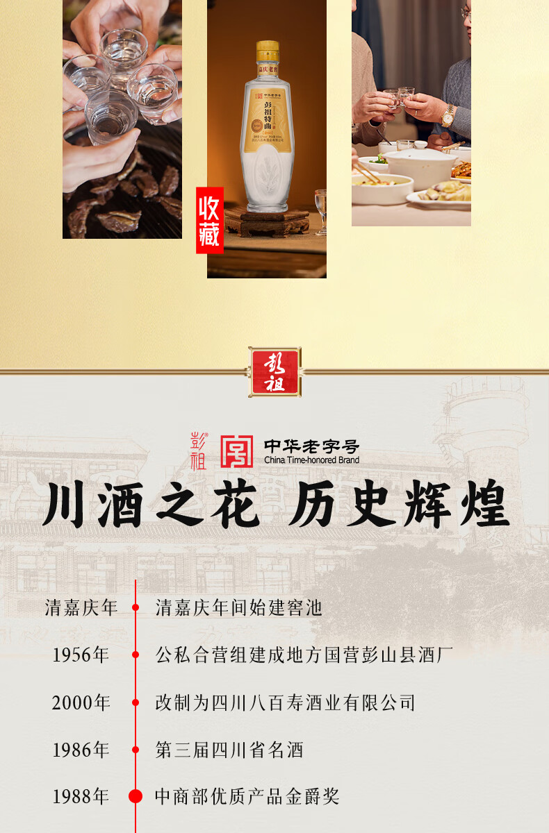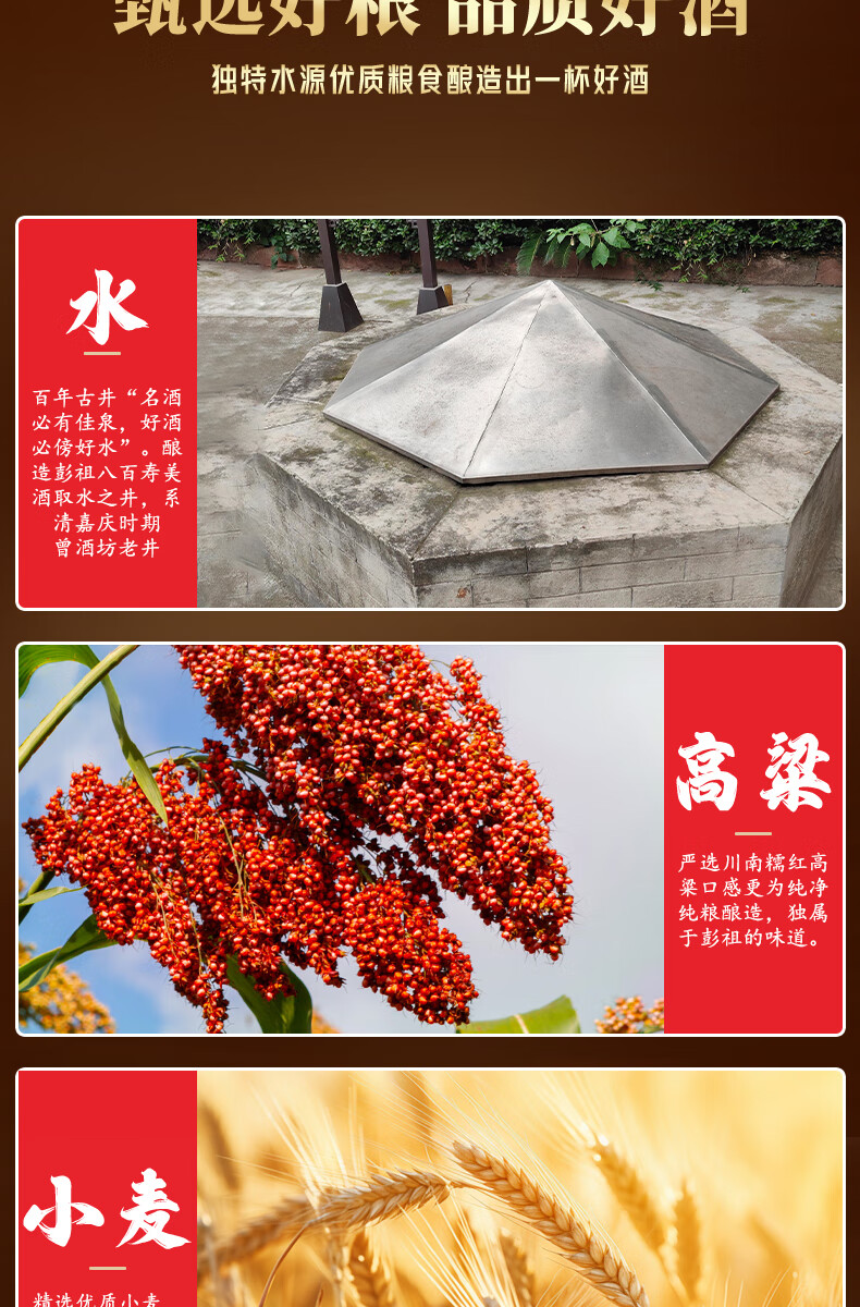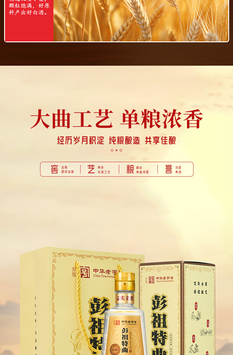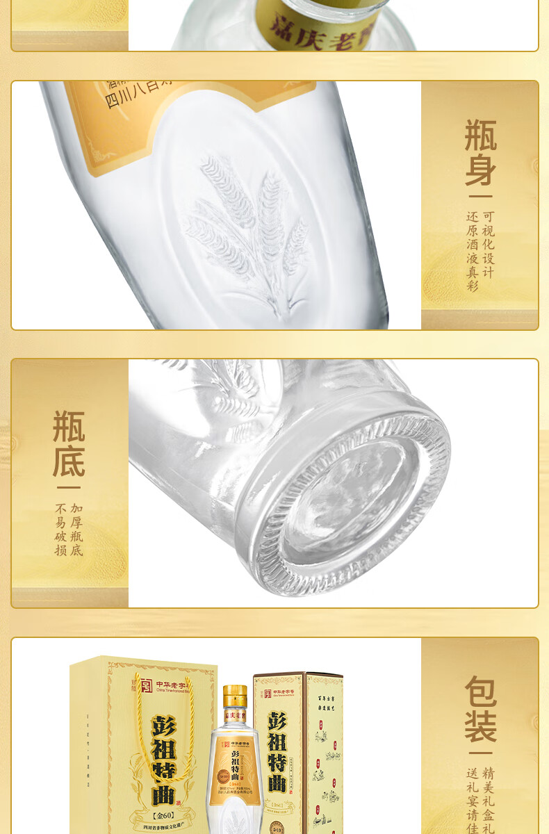 彭祖特曲金60 52度浓香型固态法纯粮优级白酒500ml中华老字号非遗技艺 52%vol 500mL 6瓶 整箱(送手提袋)