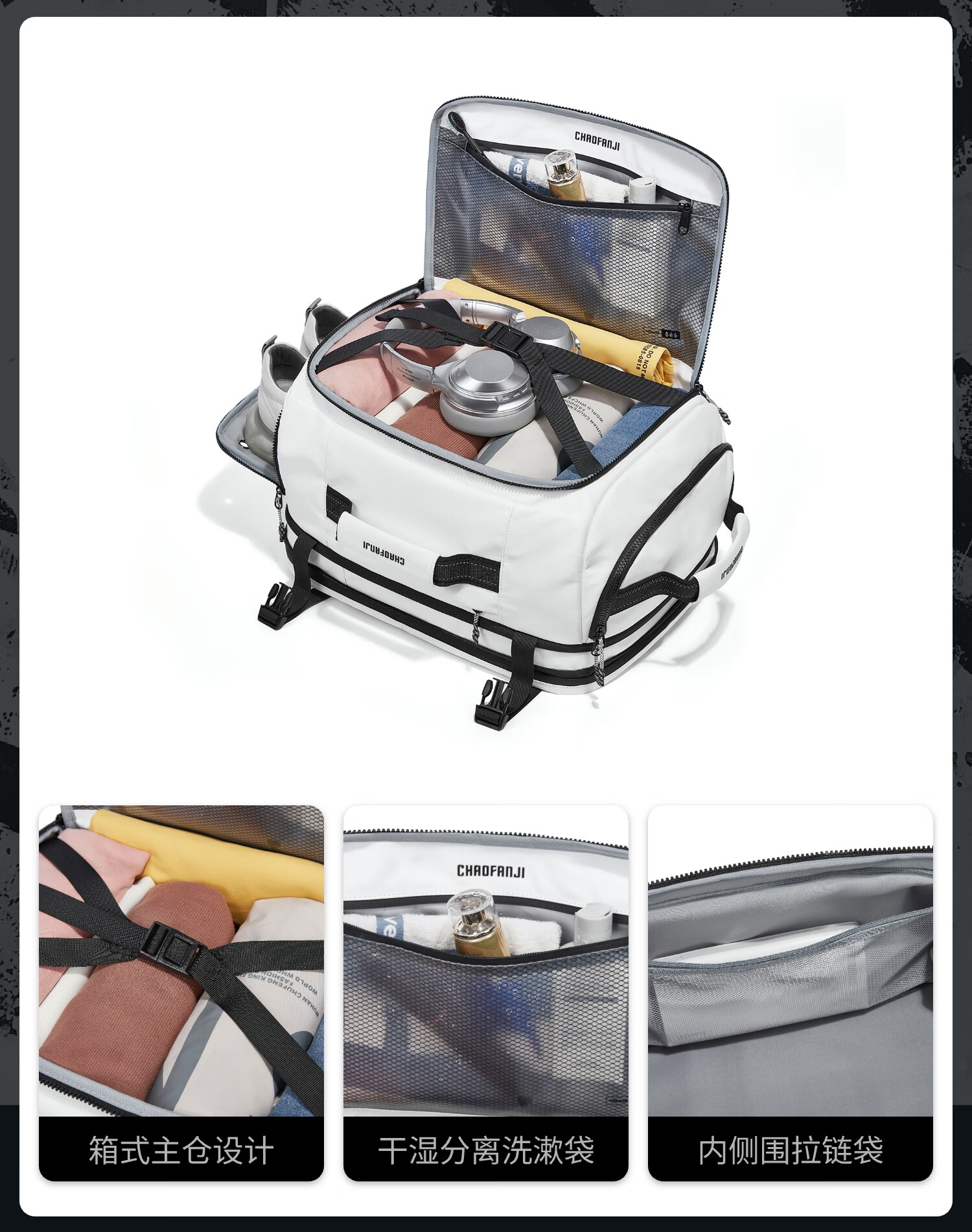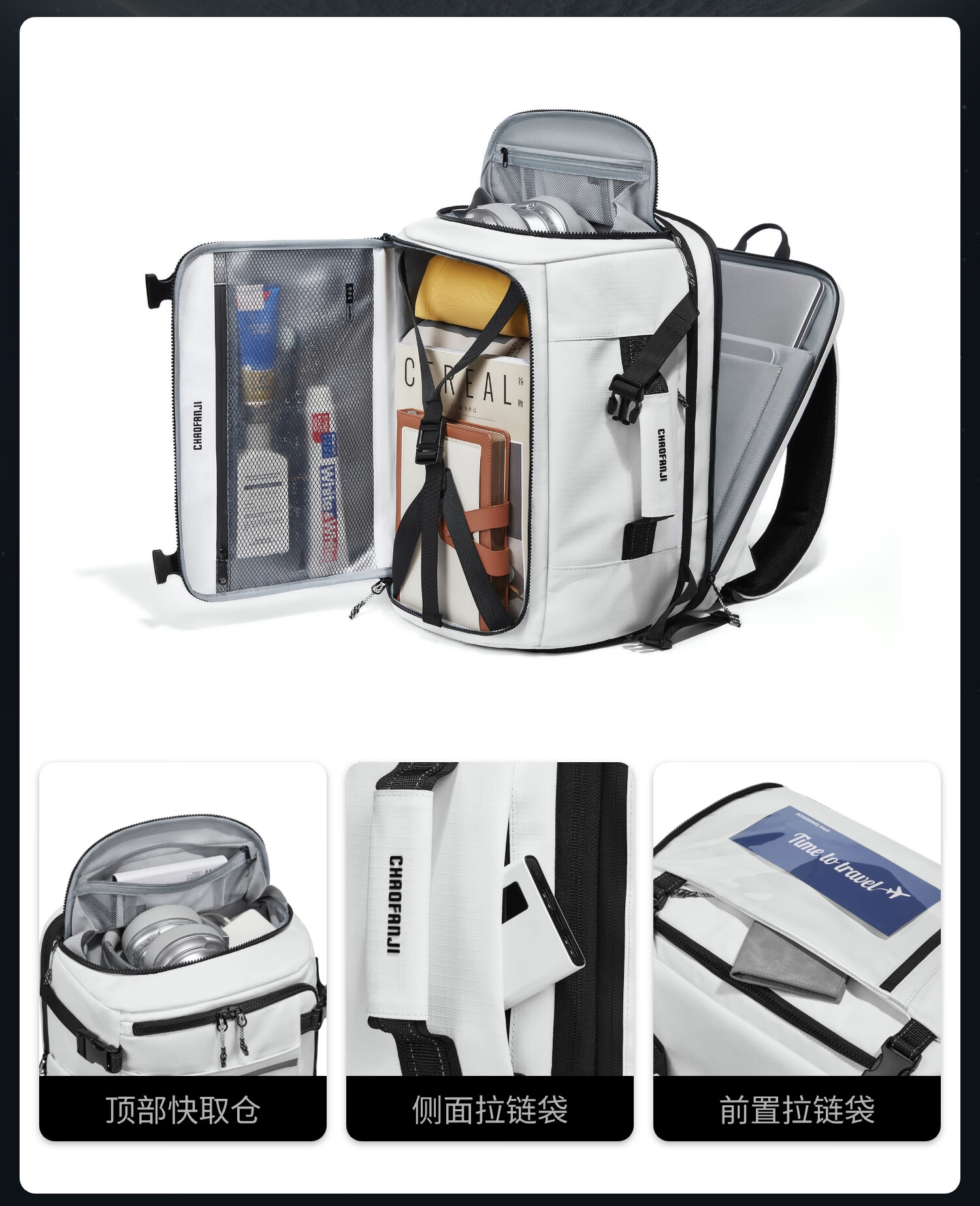 CHAOFANJI大容量真空压缩双肩包旅行骑行机能多功能背包男士双肩包 扩容版-星云紫(含20L内置电动抽气泵压缩真空袋)