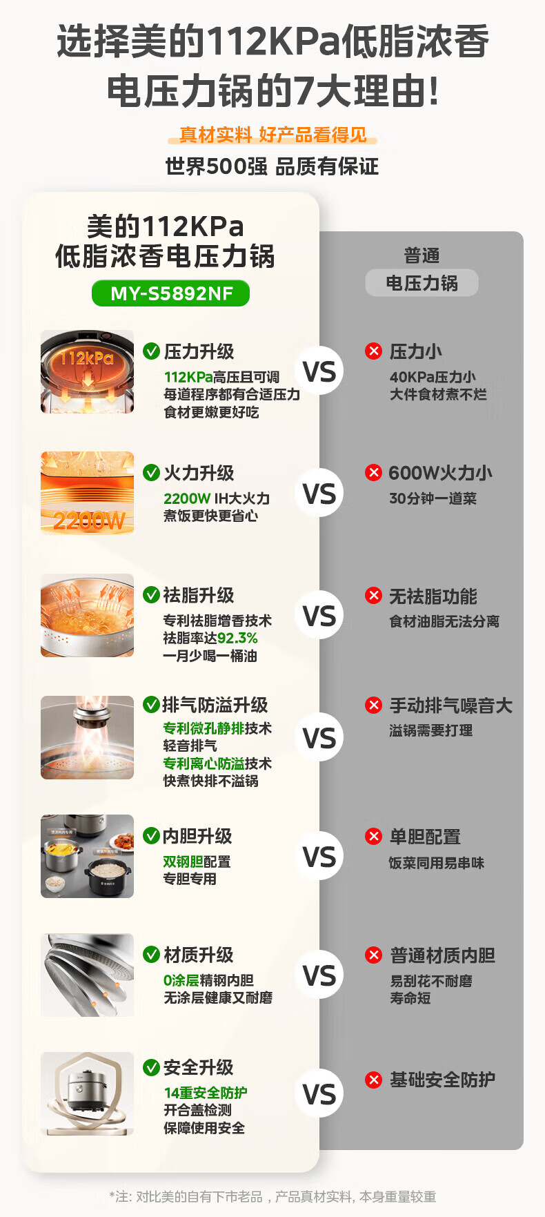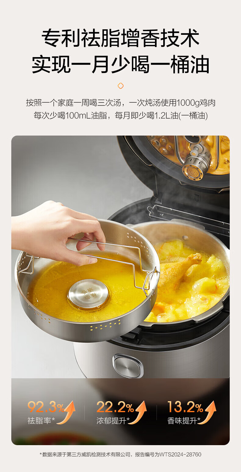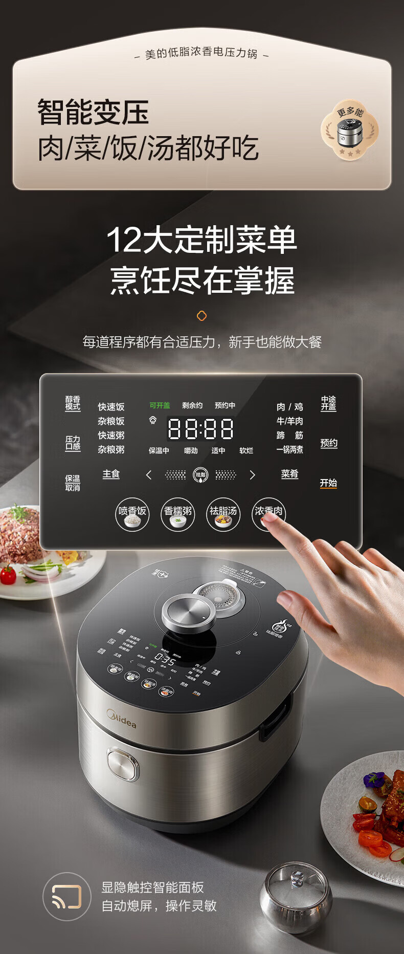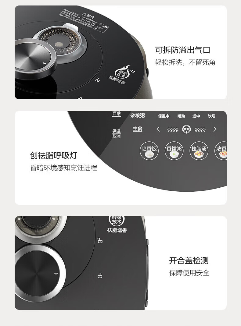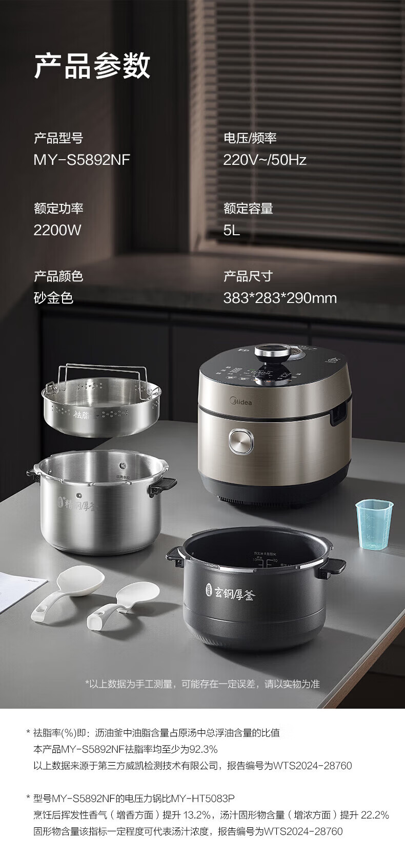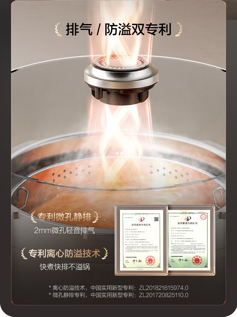 美的(Midea)低脂浓香电压力锅 家用大容量5L低音排气2200W智能预约超高压112KPa可调高压锅双内胆0涂层电饭煲 【0涂层+双内胆+自动排气】 5L
