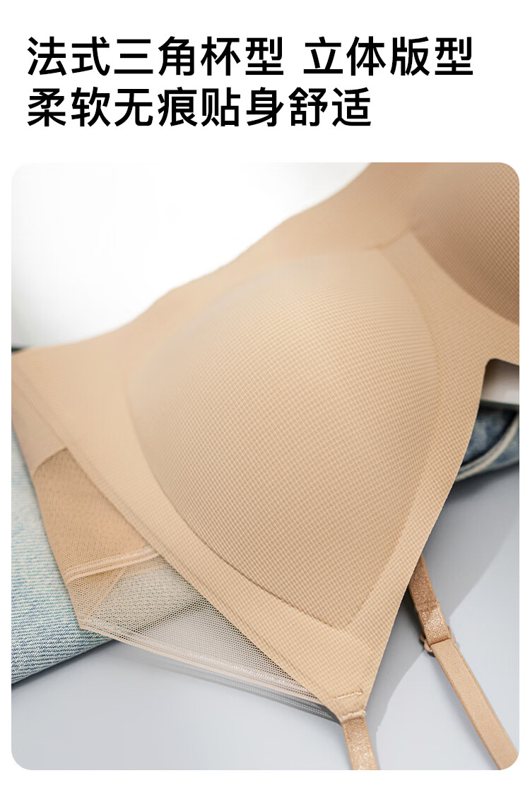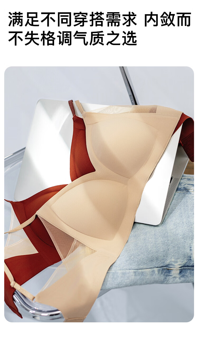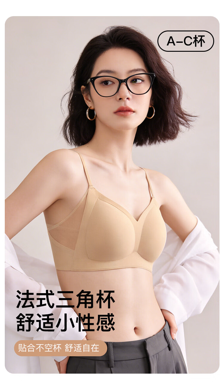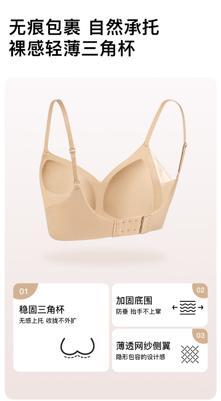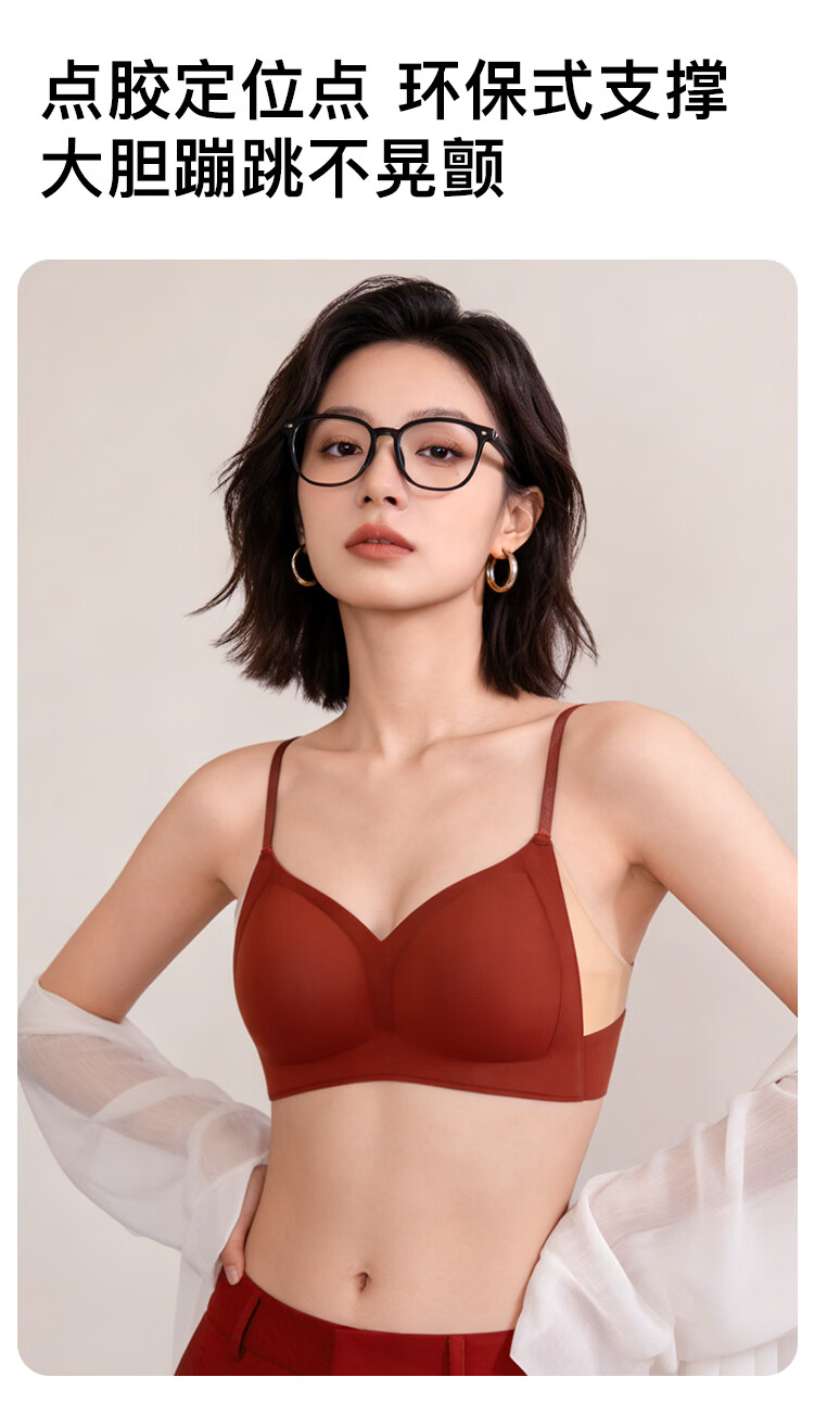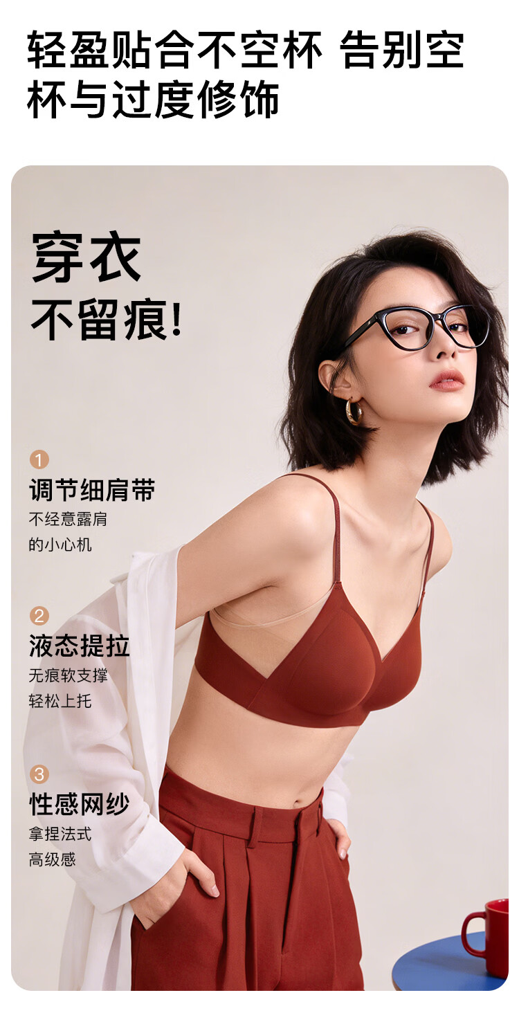 润微纯欲性感法式三角杯小胸聚拢美背内衣女鸿运本命年红色文胸罩 复古红 M (适合70-75ABC)