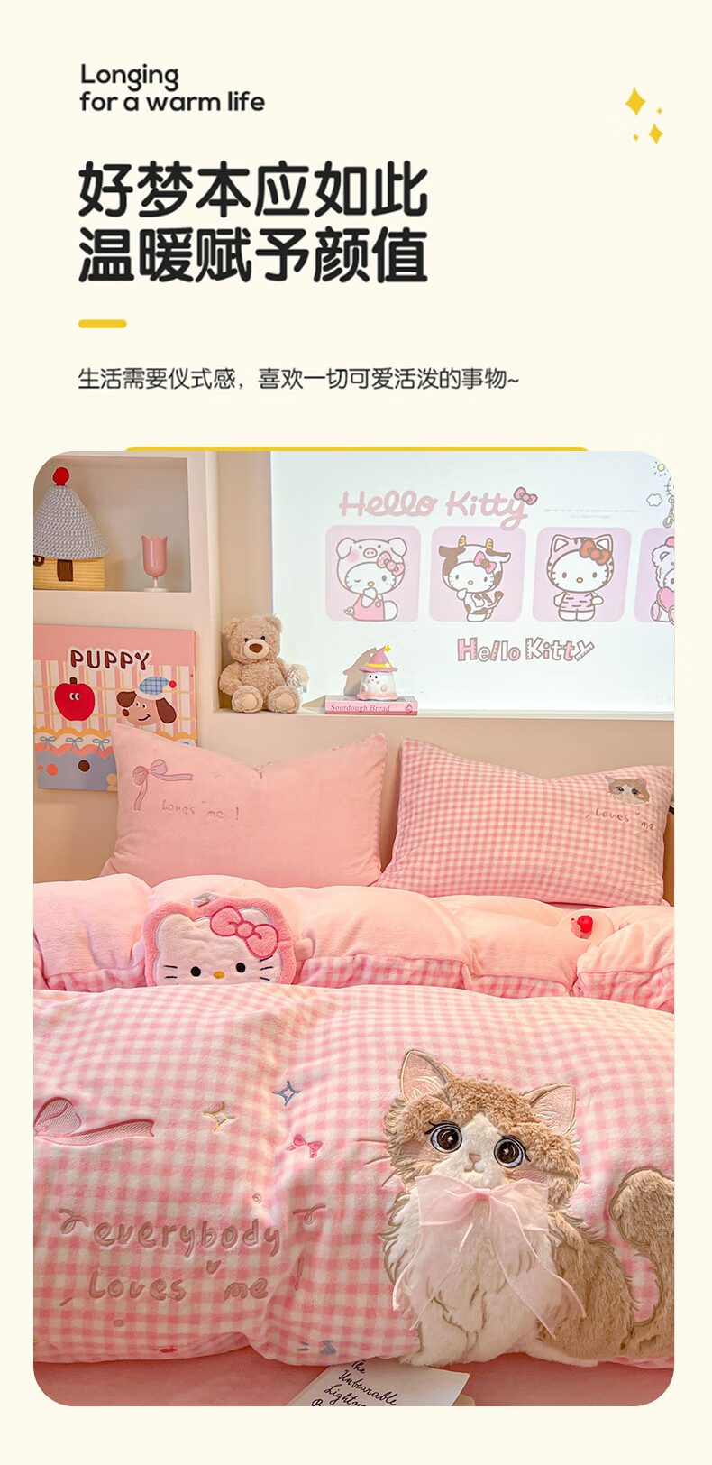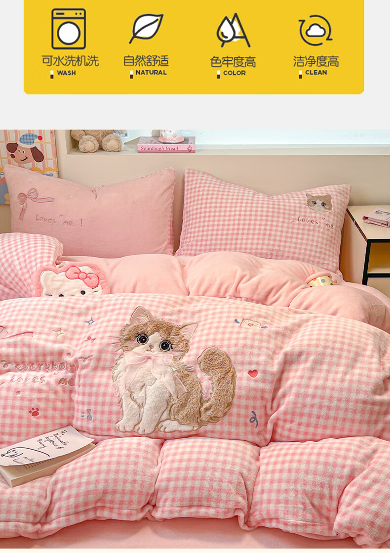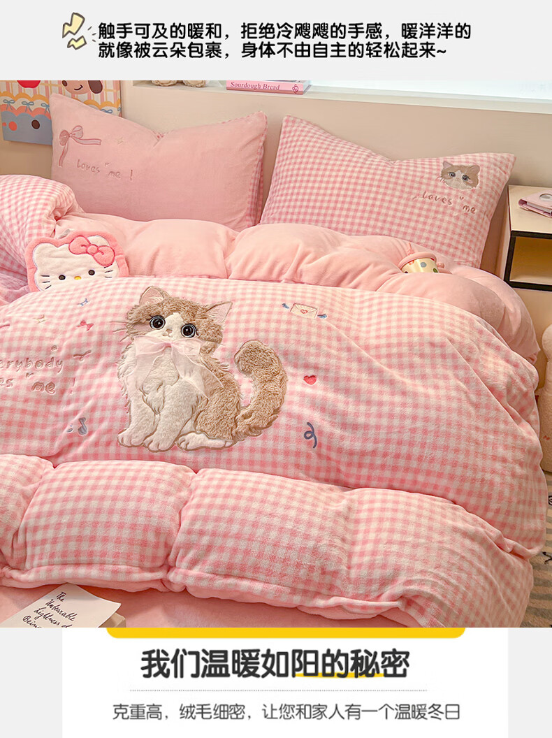 猫人(MiiOW)加厚牛奶绒床上四件套珊瑚绒家用冬季加绒床单被套罩三件套床品 恋恋布偶猫-奶白桃粉 0.9m 床单款 三件套-150*200cm被套